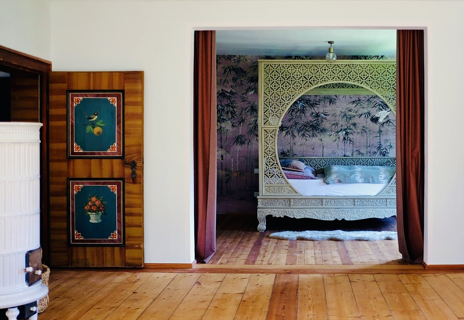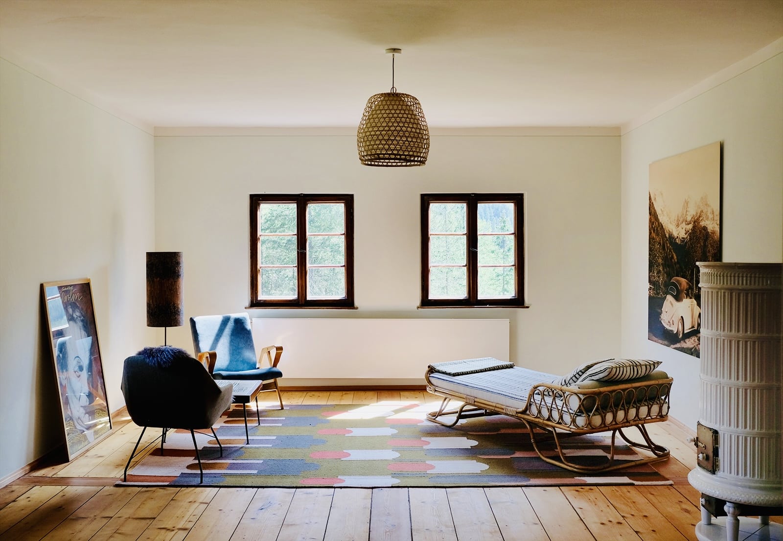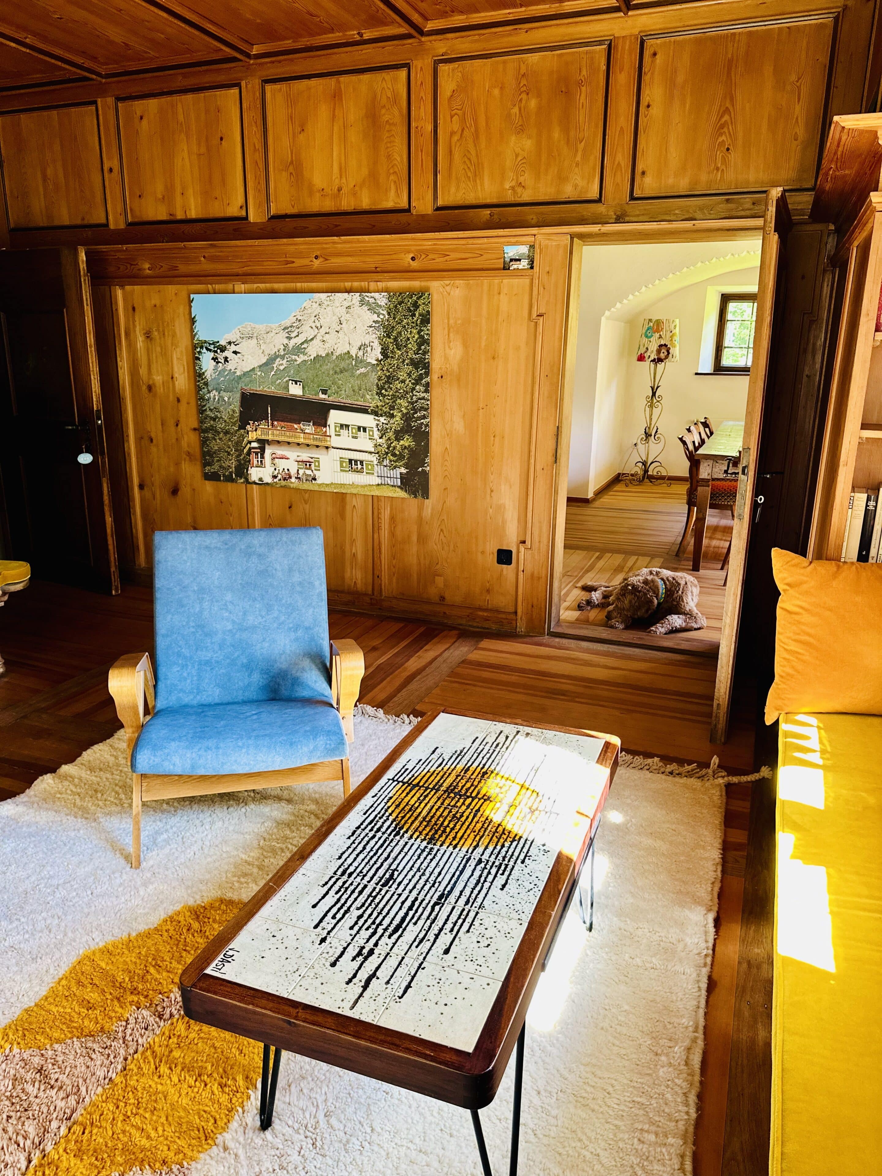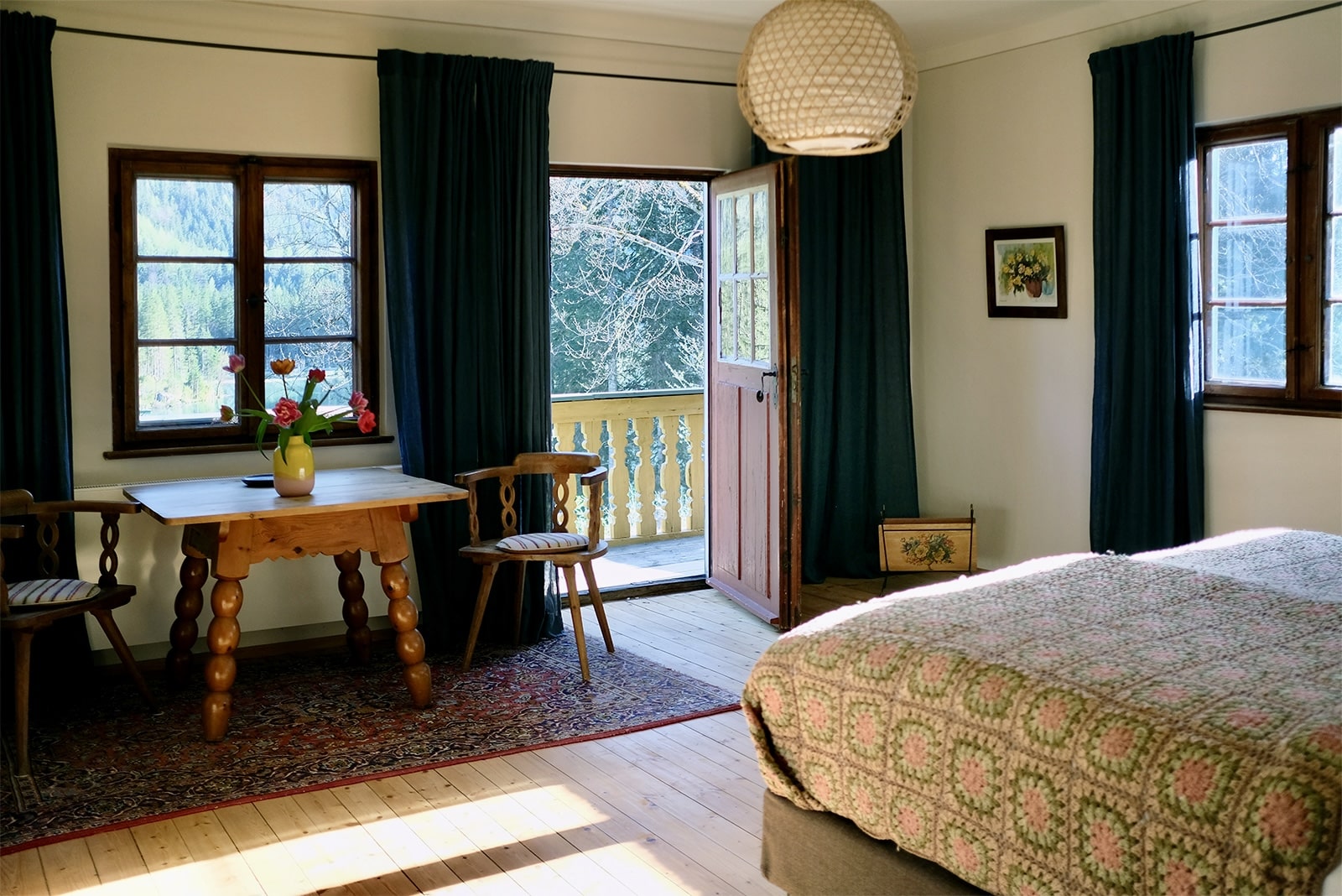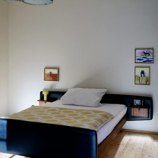 - die drei Schlafzimmer kommen in völlig verschiedenen Looks daher: das „Midcentury“ vereint Fifties-Flair und moderne Kunst. In der „Bauernstube“ erwarten die Gäste traditionelle und antike Bauernmöbel. Und die „Hintersee-Suite“ bietet (neben dem sensationellen Himmelbett) 66 Quadratmeter Platz verteilt auf zwei Räume