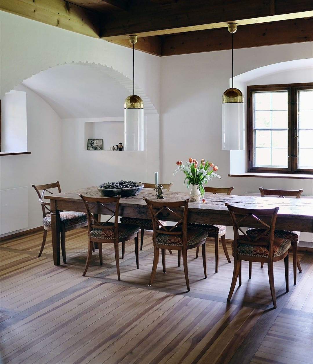 - die gelungene Kombination aus Originaleinbauten, historischer Einrichtung, Midcentury- und Contemporary-Akzenten, Kunst- und Design-Klassikern, die jeden Raum besonders macht