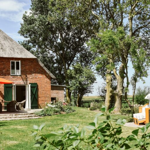 - jede Wohnung hat ihren eigenen Außenbereich, mit Gartenmöbeln, Liegestühlen oder dem wohl gemütlichsten (weil dick gepolsterten) Strandkorb weit und breit