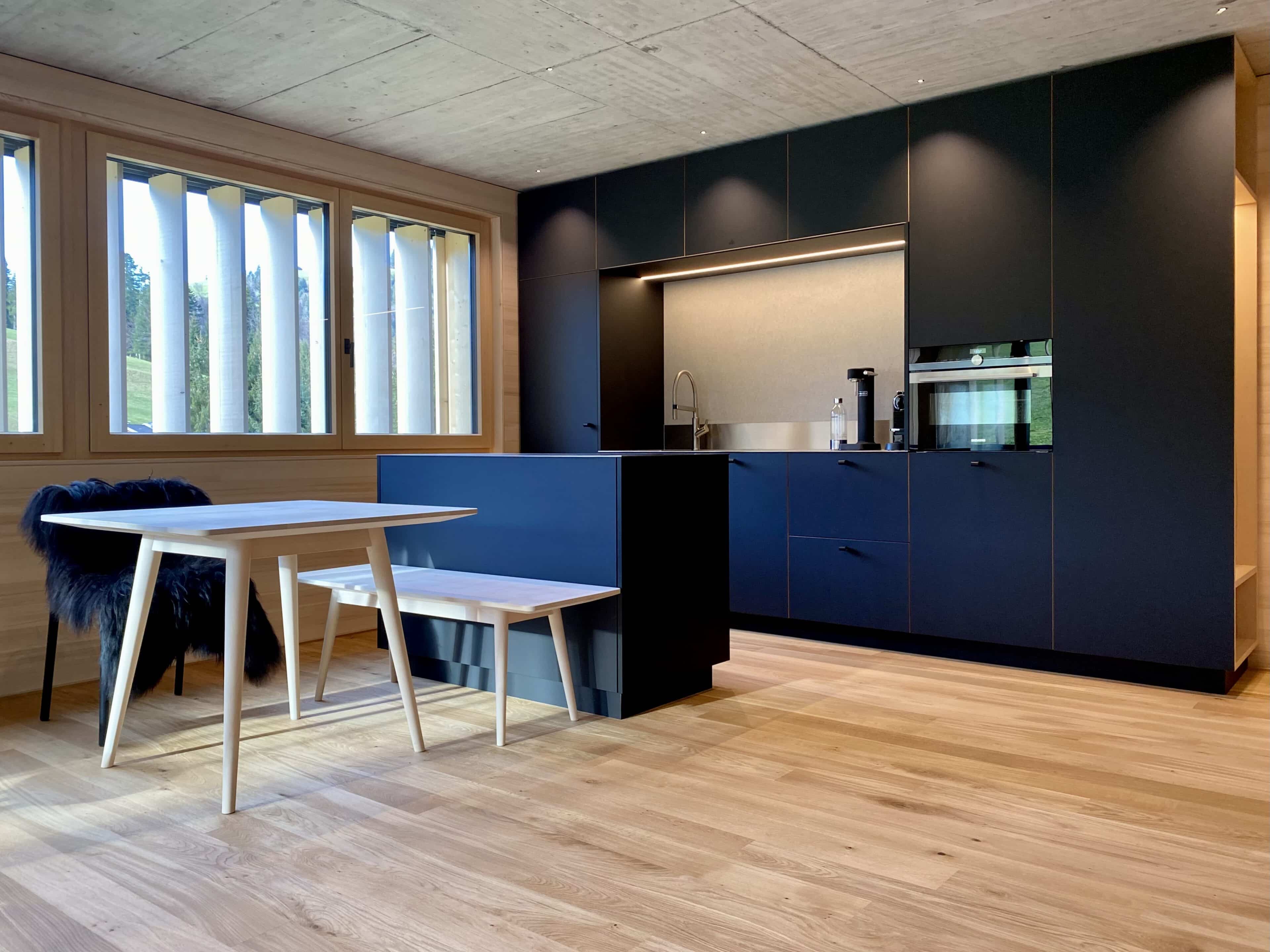 - die handgefertigten schwarzen Küchen – echte Maßarbeit und ein schöner Hingucker