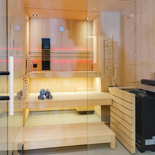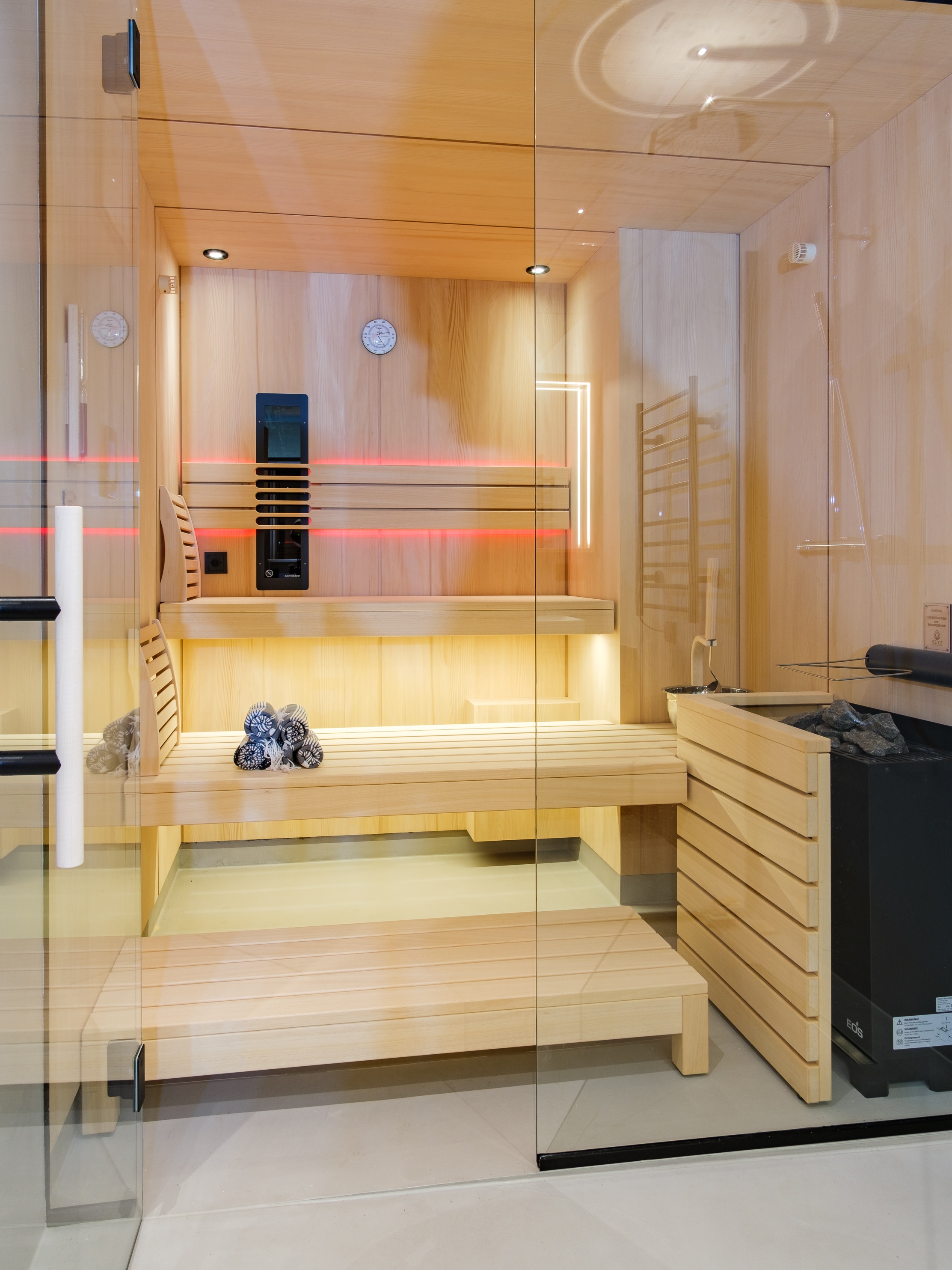 - die größeren Wohnungen verfügen über eine eigene, dem Bad angegliederte Sauna – Entspannung pur, besonders im Winter
