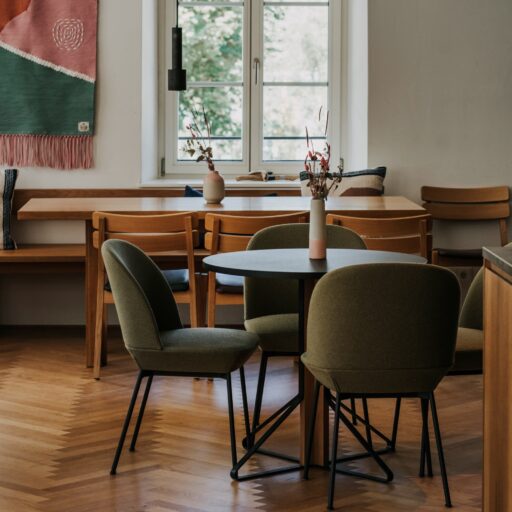 - endlich Zeit für Selfcare: Studio B, das Yogastudio im Erdgeschoss, empfängt mit massivem Eichenboden, warmem Licht und schönen Leinenvorhängen – genau das richtige Ambiente für Meditation und Achtsamkeit; wenn keine Kurse stattfinden, darf man den Raum auch gerne für eigene Sessions nutzen