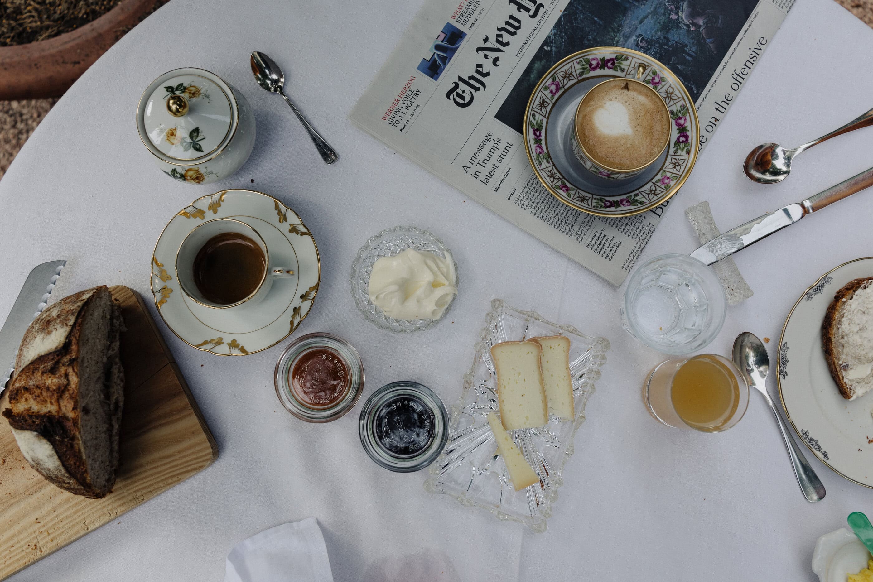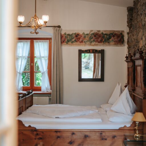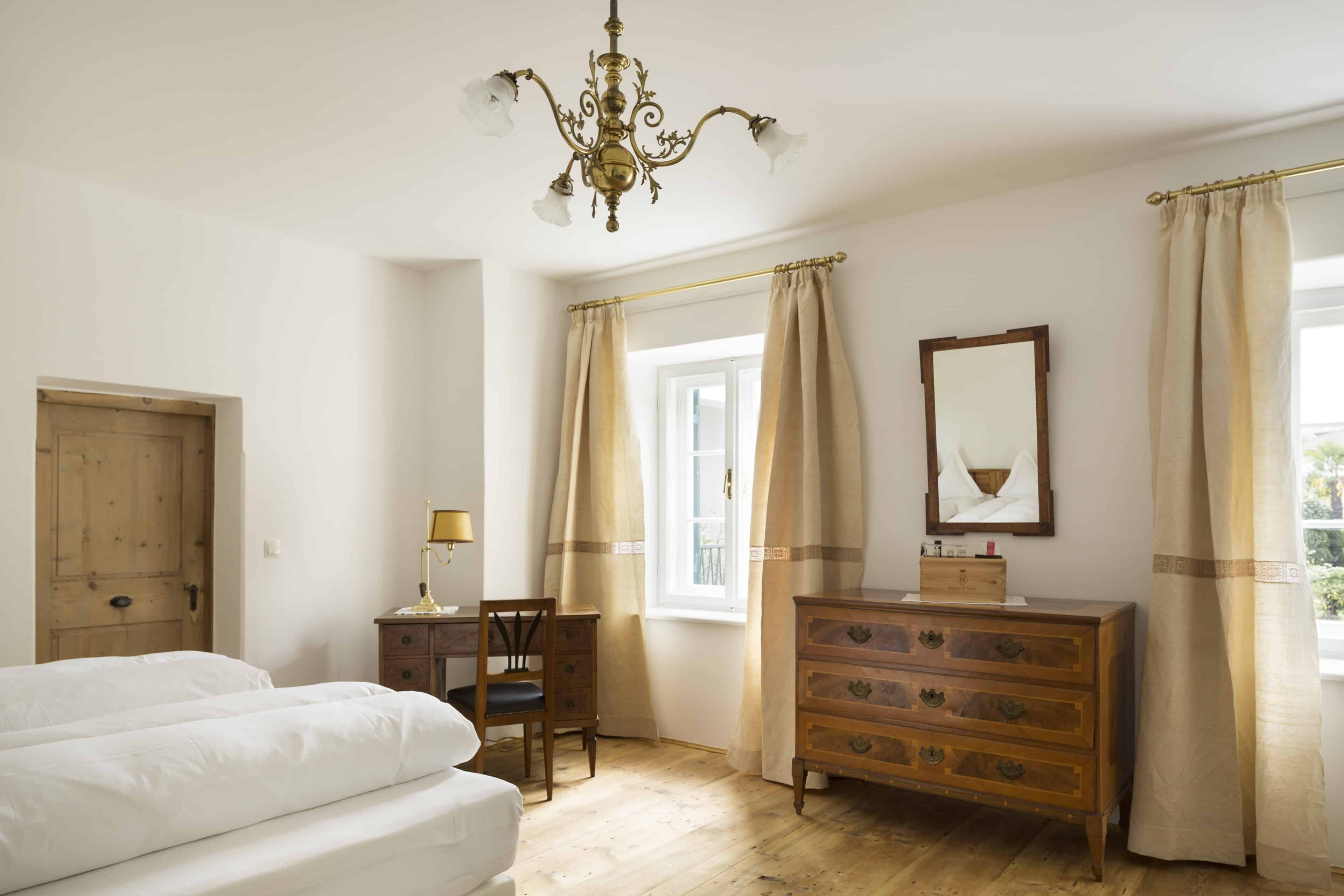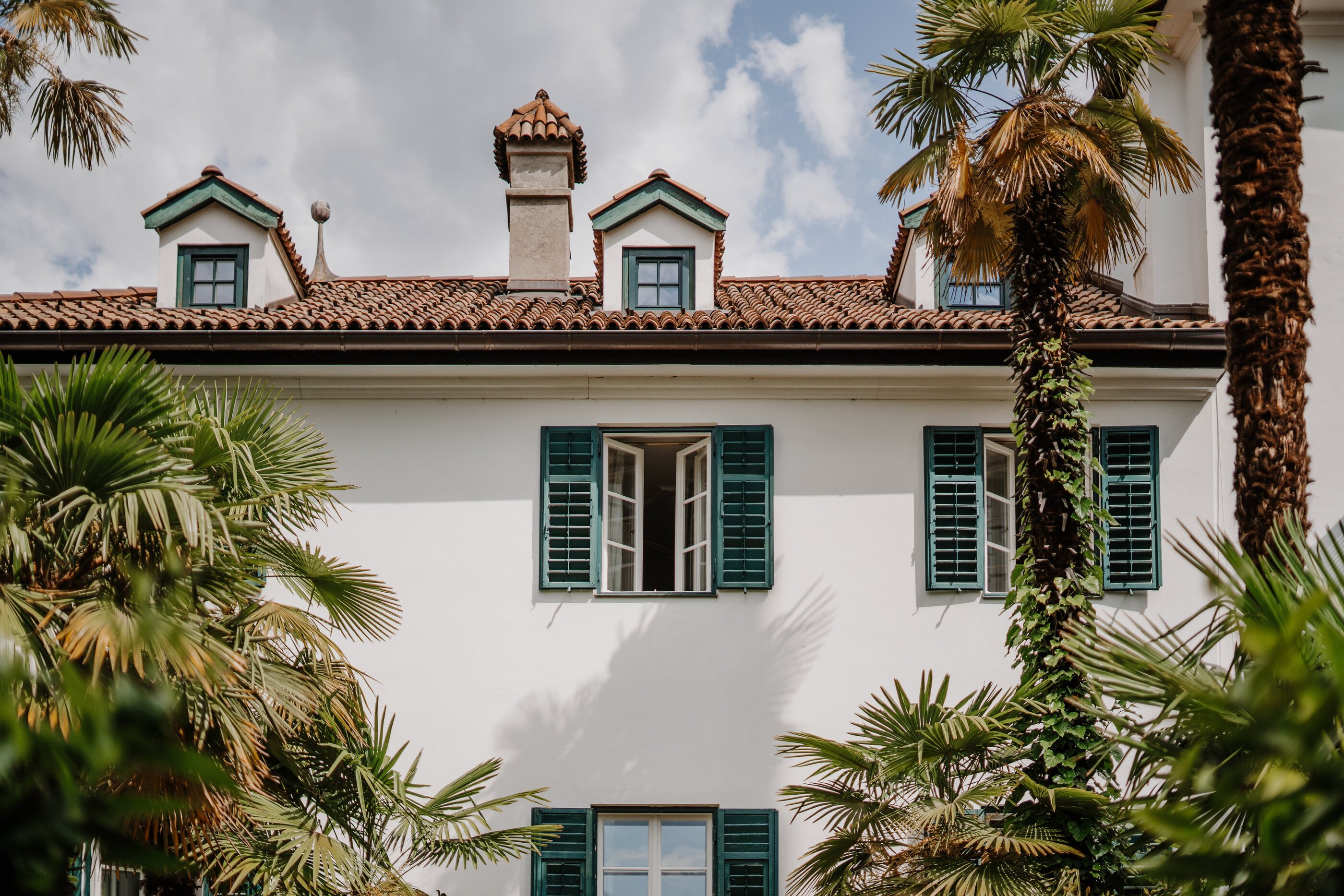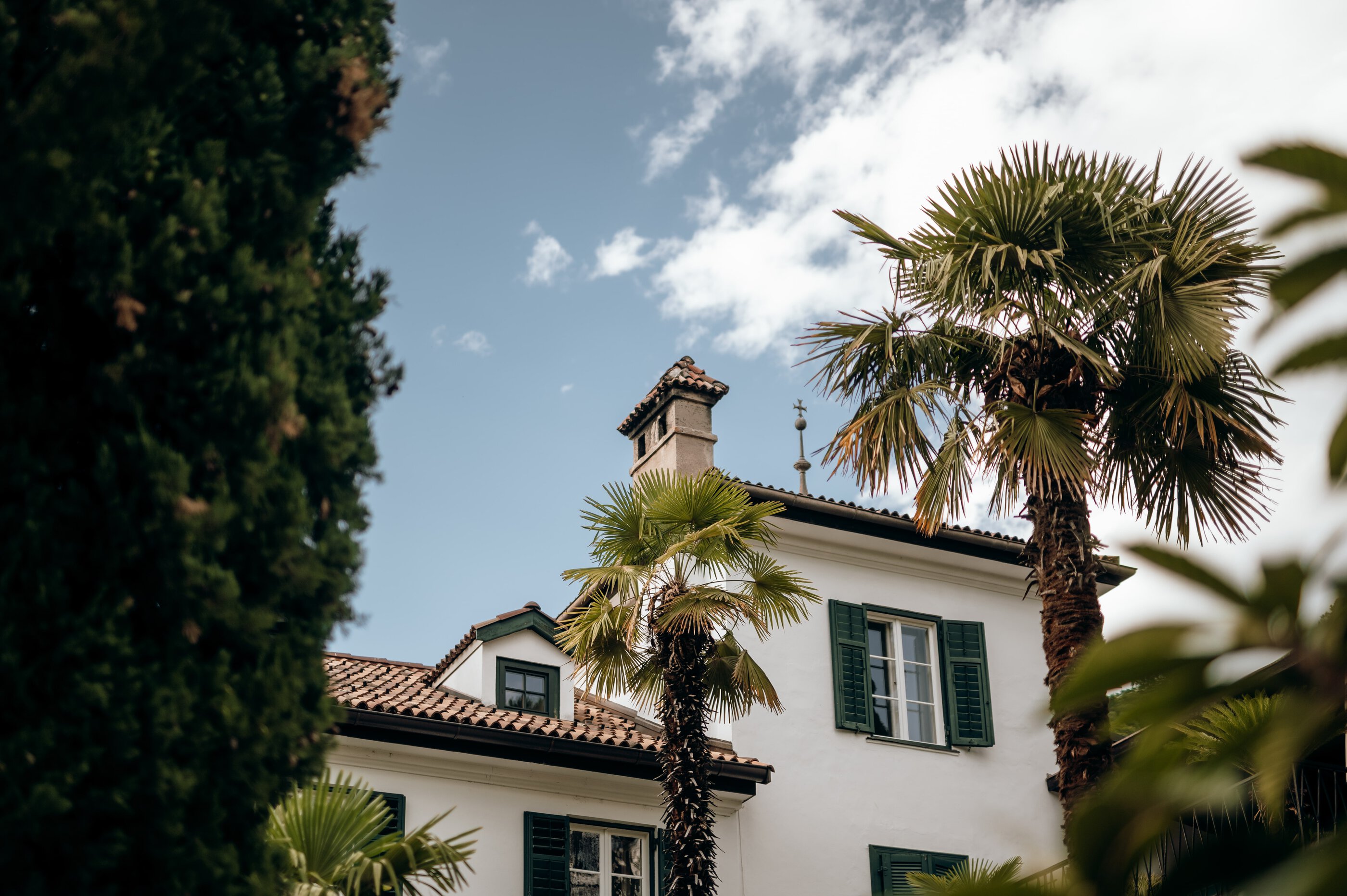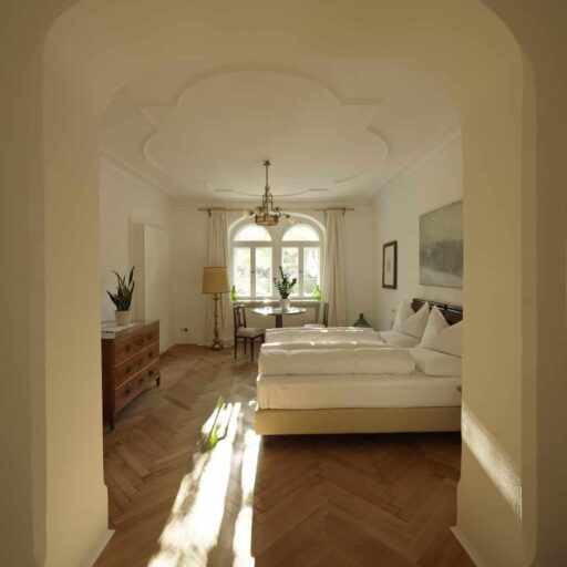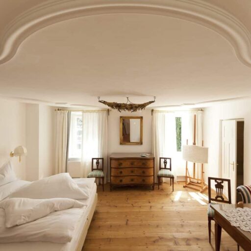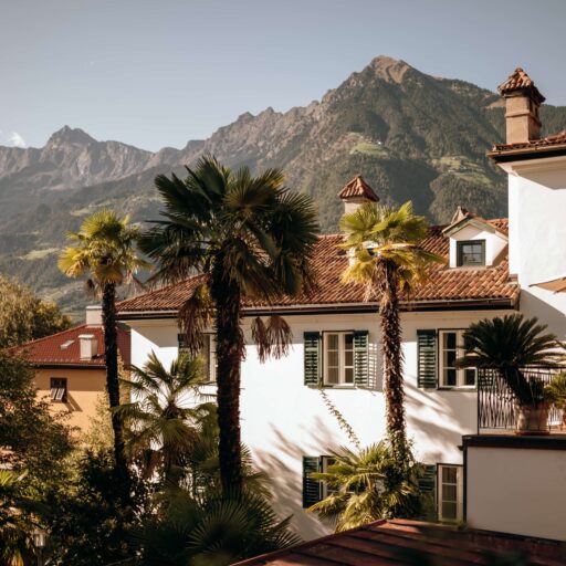 Schöner als mit einem Bild von diesem Altmeraner Gästehaus könnte man den Charme Südtirols eigentlich nicht auf den Punkt bringen. Vor dem historischen Gebäude mit seinen dunkelgrünen Fensterläden biegen sich Palmen sanft mit dem Wind, dazwischen wachsen Zitronenbäume und Zypressen – und im Hintergrund sind die Berggipfel am wolkenlosen Himmel zu sehen. Willkommen bei Familie Kirchlechner! Auf einem der ältesten Anwesen Merans, das heute in sechster Generation geführt wird, hat sie zehn Zimmer für ihre Gäste hergerichtet, mit Antiquitäten aus dem Familienbesitz – Biedermeier, Art Deco und Jugendstil. Die Atmosphäre ist in allen Räumen unterschiedlich, von klein und kuschelig bis herrschaftlich-elegant. Was aber alle gemeinsam haben: das zurückgenommene Design und die hellen Farbtöne. In Sachen Ausblick kann man nur gewinnen: Man schaut entweder auf den mediterranen Garten, die Berglandschaft der Texelgruppe oder den hauseigenen Weinberg. Und obwohl die Ruhe hier meist nur von Palmenrauschen und Vogelgezwitscher durchbrochen wird, liegt das „Suite & Breakfast“ in Spaziergang-Distanz zum Zentrum von Meran. Nicht immer fällt es jedoch leicht, sich hier loszureißen. Denn schon das Frühstück ist nicht nur ein Erlebnis für sich, sondern gibt auch den Takt vor. Hier wird jeden Morgen ein Drei-Gänge-Menü serviert, und zwar täglich etwas Neues: mal ein Omelett oder ein Bircher Müsli mit frischen Beeren, immer aber selbst gebackenes Sauerteig-Brot und hausgemachte Konfitüren. Angesichts dieses genüsslich entschleunigten Starts könnte man feststellen, dass einem zum Glück im Grunde gar nichts fehlt. Außer vielleicht eine Sonnenliege im Schatten eines Zitronenbaums – und die steht (natürlich!) schon bereit. Alles andere? Kann warten!