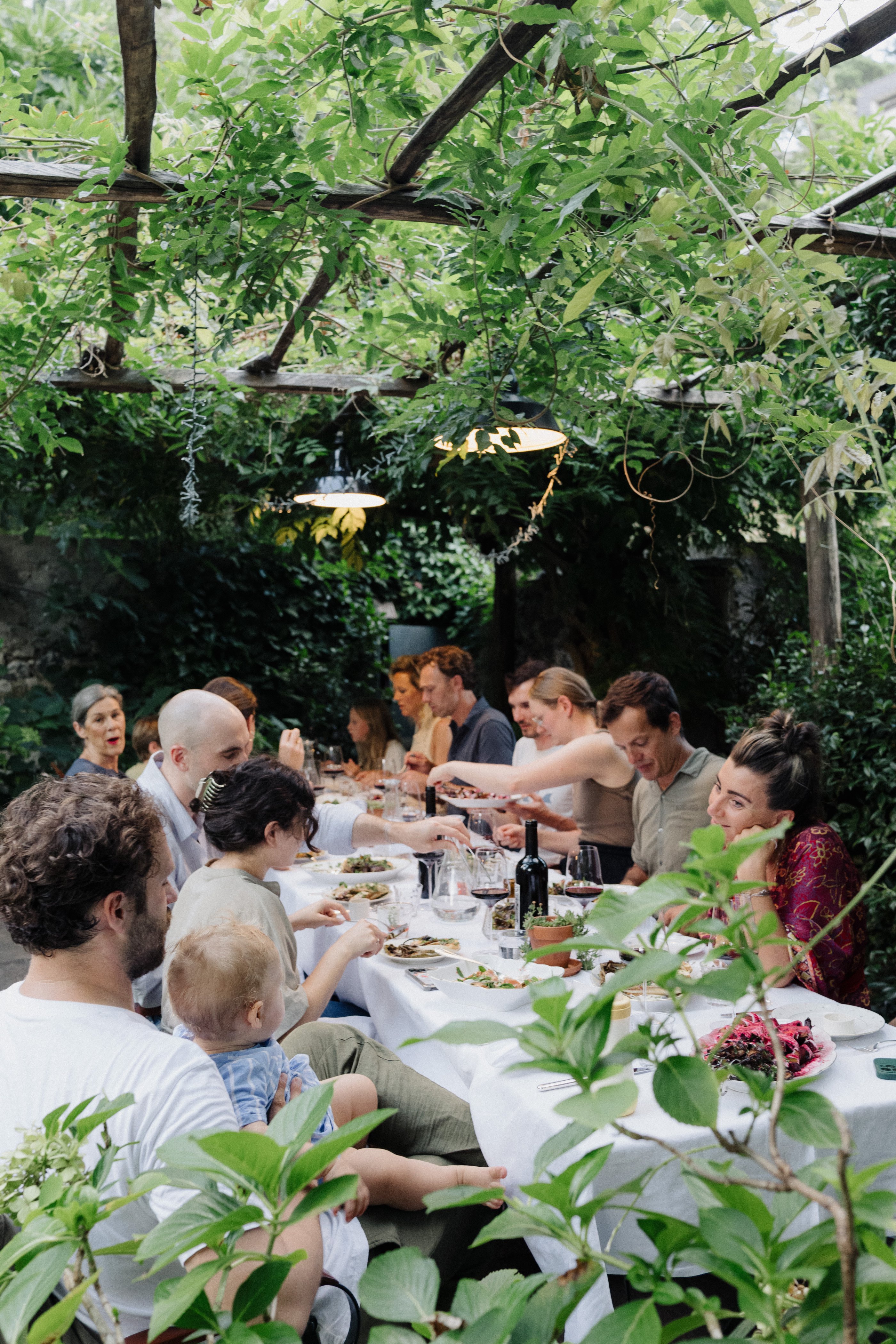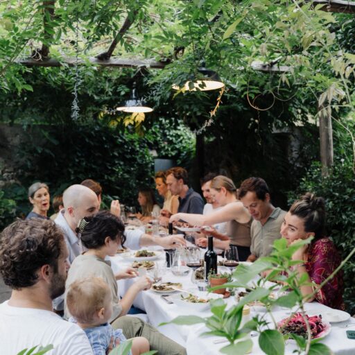 - mindestens einmal im Monat findet ein gemeinsamer Dinner-Abend an einem großen Tisch unter der Pergola im Garten statt. Die Gäste des Hauses tafeln zusammen, teilen die Gerichte und so manchen Schwenk aus dem Leben