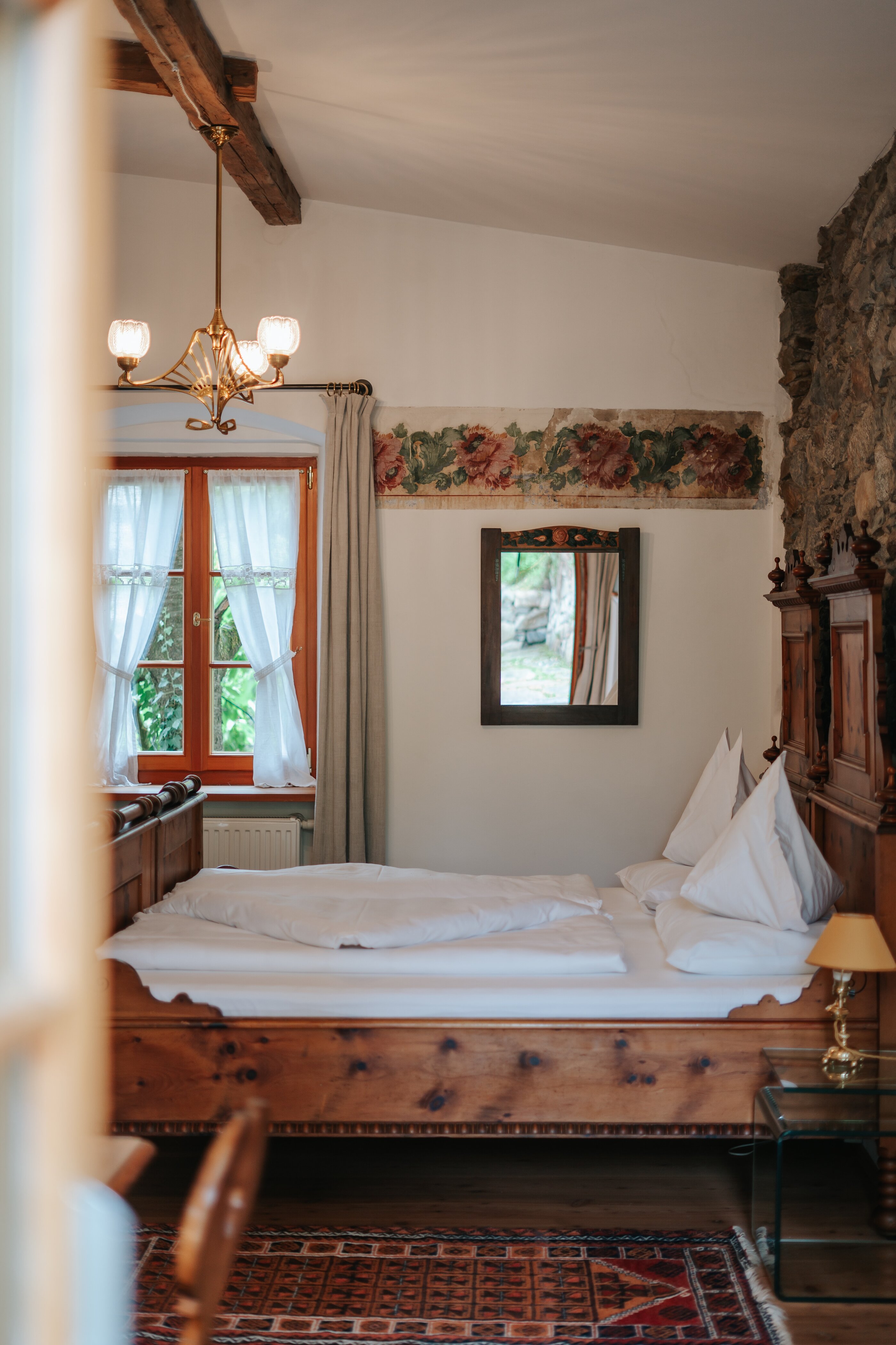- wie liebevoll hier saniert und dekoriert wurde. Die Nägel, um den alten Dielenböden wieder zu neuem Glanz zu verhelfen, wurden handgeschmiedet; die Vorhänge aus alten Leinenstoffen genäht und teilweise mit alter Spitze versehen