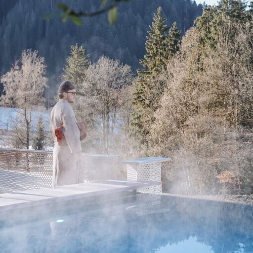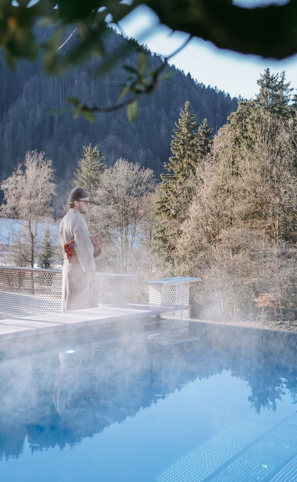 - wenn man nach der Zirbenholz-Sauna in den Outdoor-Badewannen entspannt und auf den See und die Berge schaut, während man einen Tiroler-Kräuter-Tee schlürft