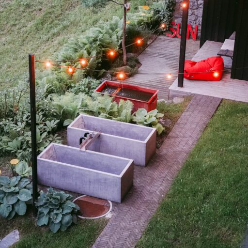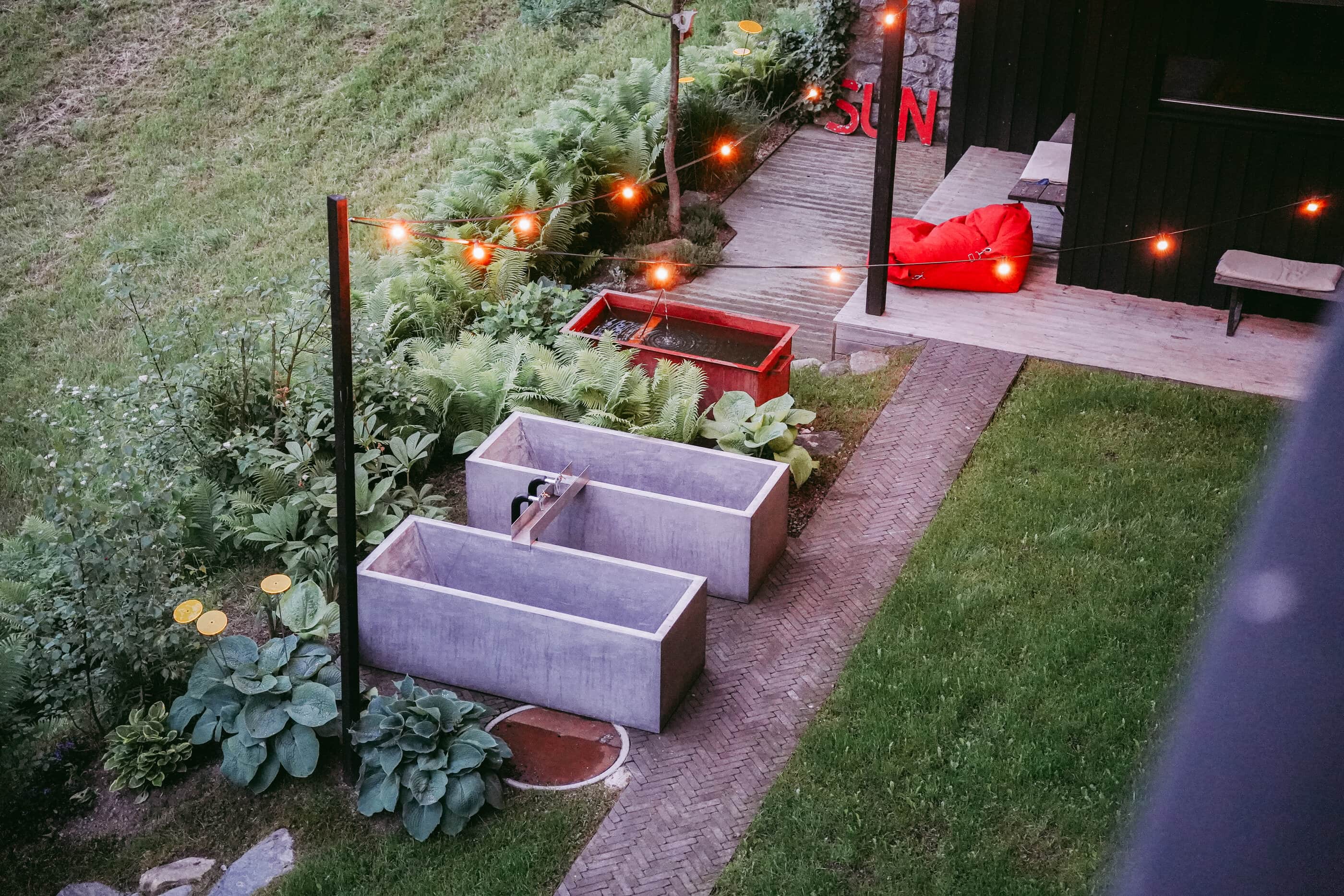 - auch vor dem Haus lässt es sich lässig sitzen – für den zweiten Kaffee, den ersten Gin Tonic oder um den Abend ausklingen zu lassen