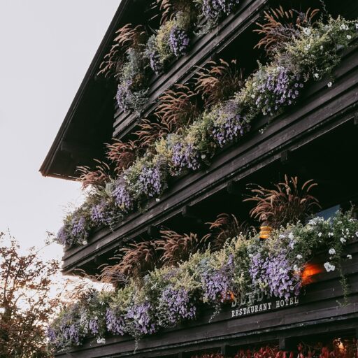 - das klassische Gasthaus mit blühendem lila Blumenschmuck wirkt von außen eher old school ist aber total hip