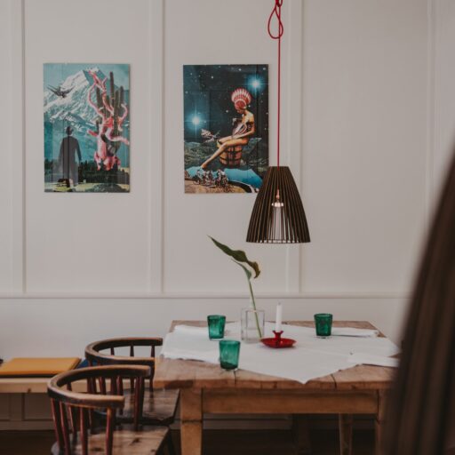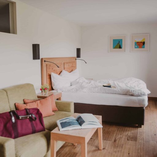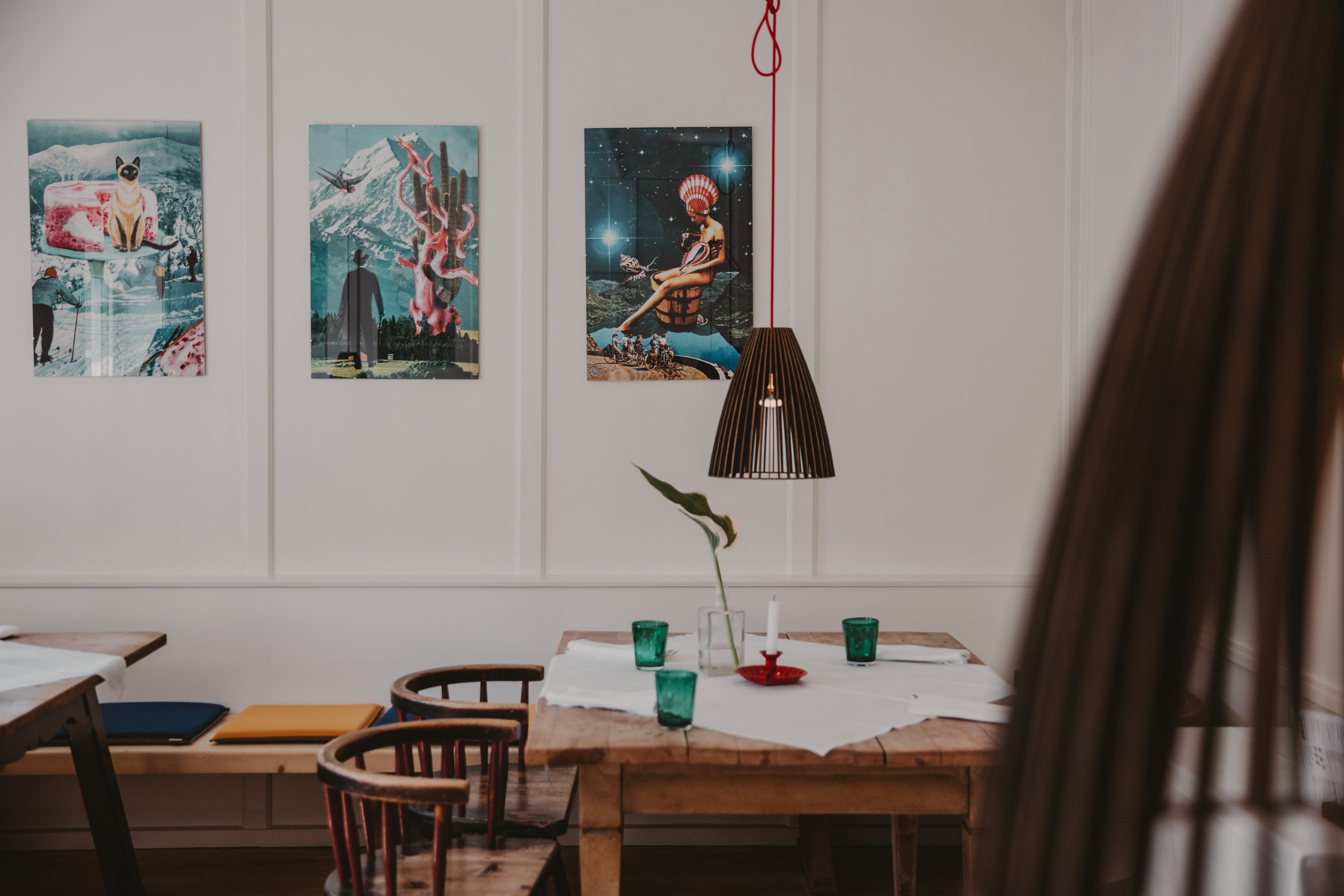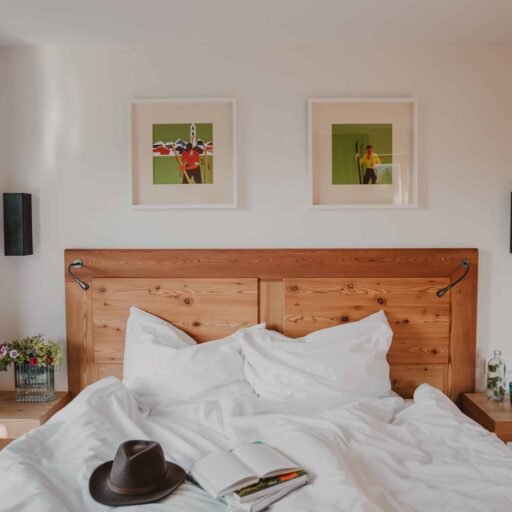 - für Schöngeister gibt es so einiges zu sehen: Die Zimmer sind ausgestattet mit teils handgefertigten Lärchenholzmöbeln, edlen Designklassikern und zeitgenössischen Kunstobjekten – fast wie im Museum, nur cooler