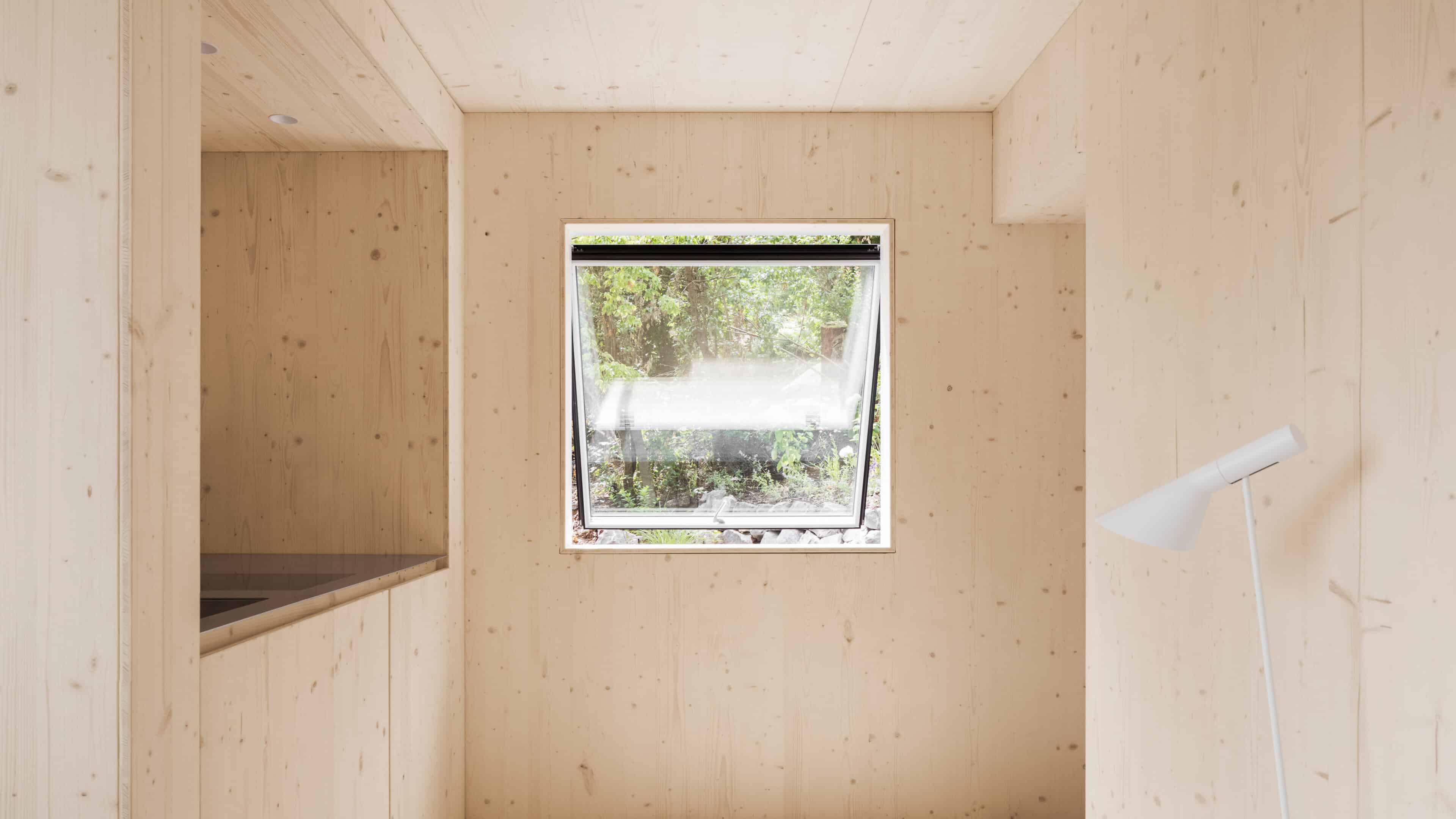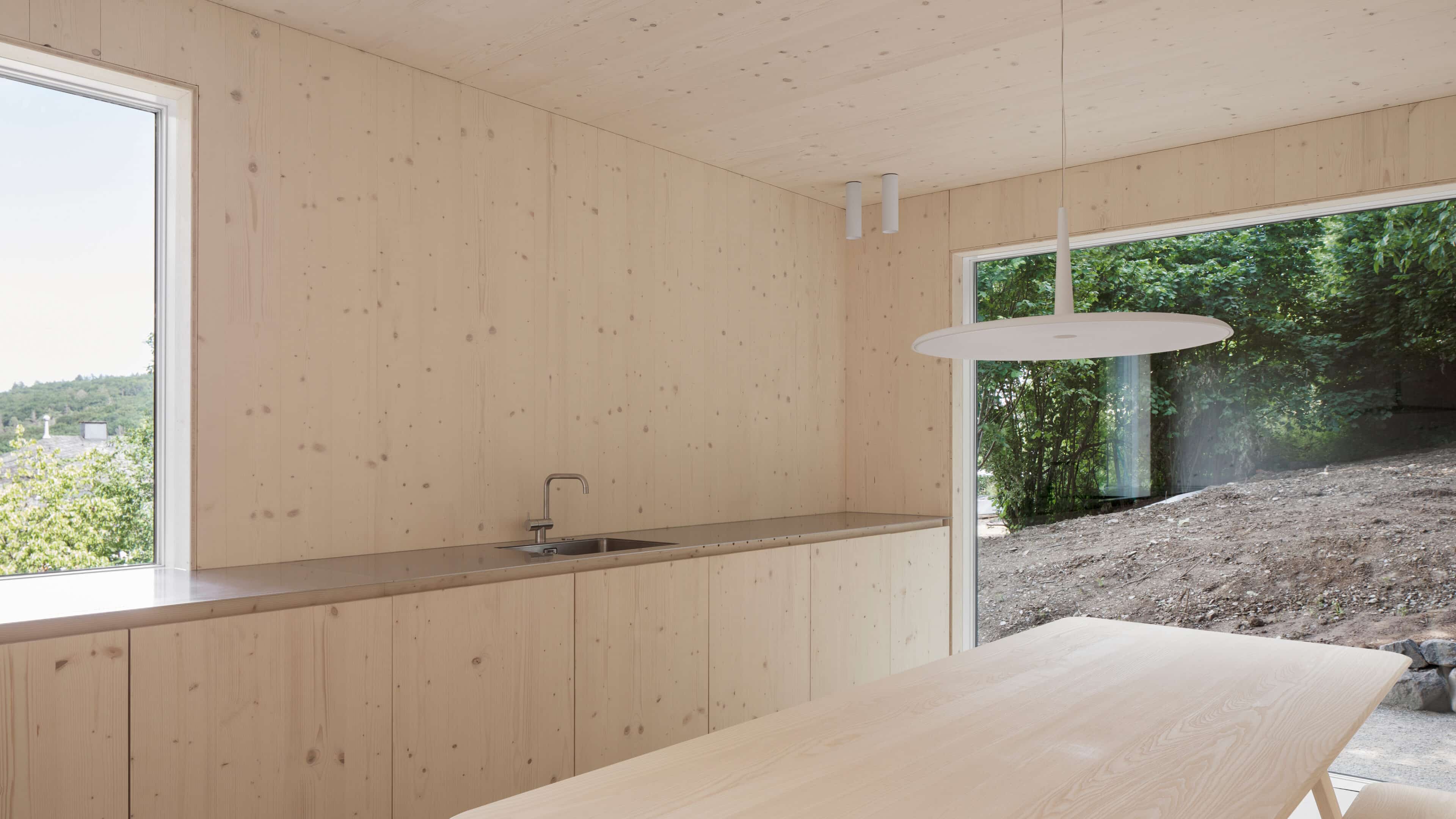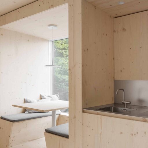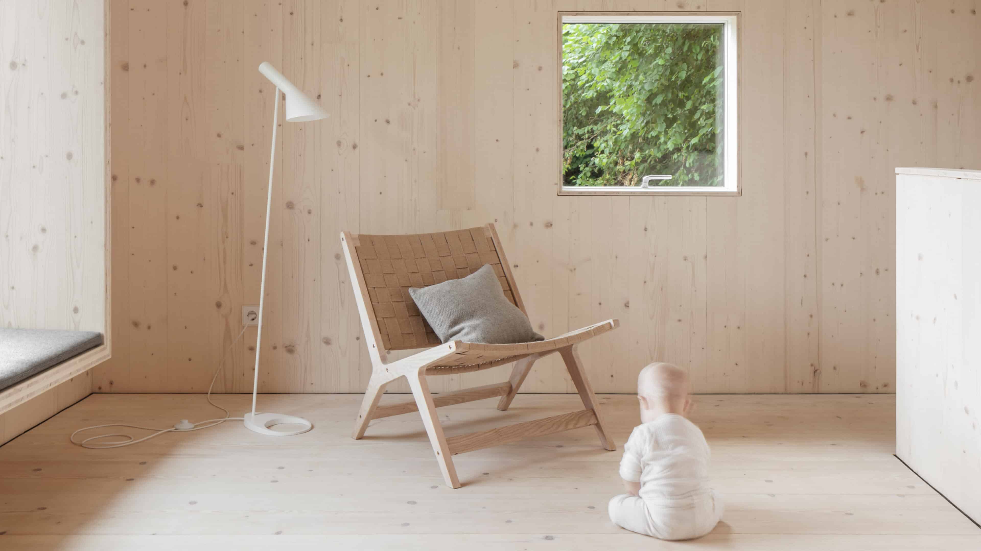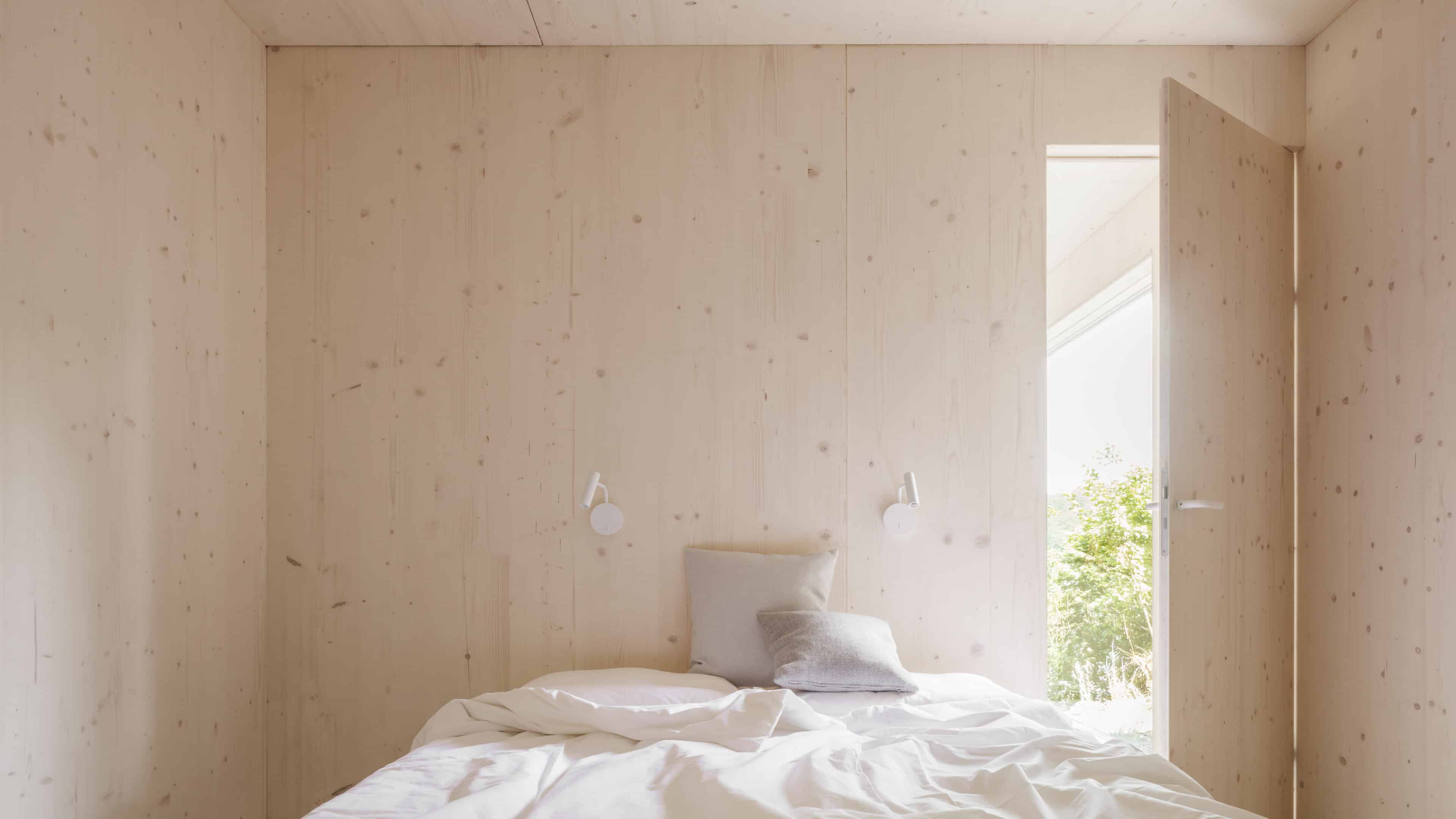 • als nachwachsender Rohstoff mit guter Ökobilanz wurde bewusst auf Holz gesetzt: Wände, Fassade, Dämmung, Decken, Dächer und Möbel – alles ist aus Holz