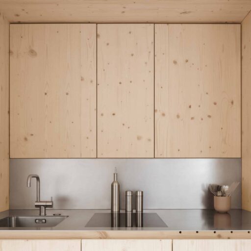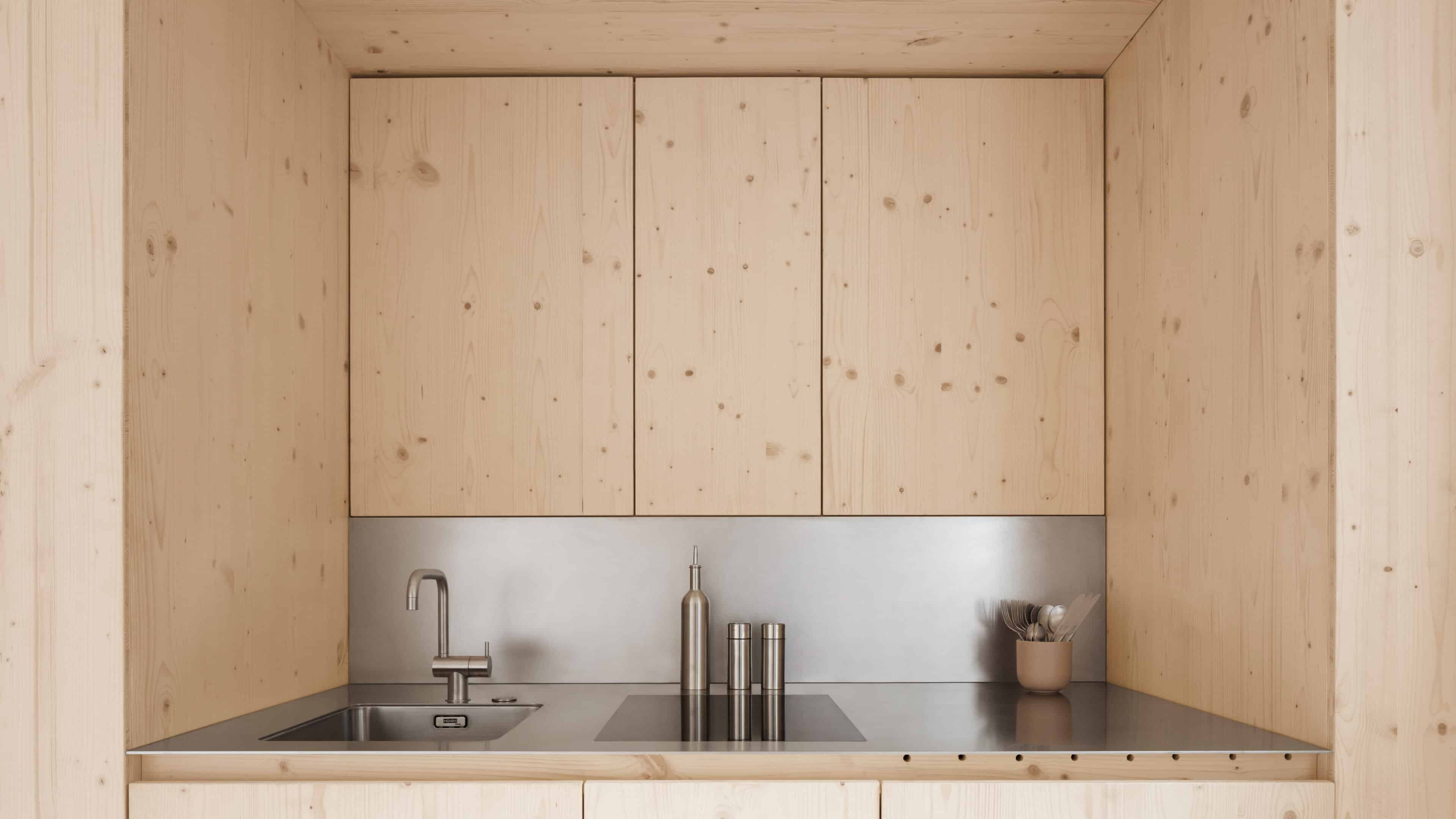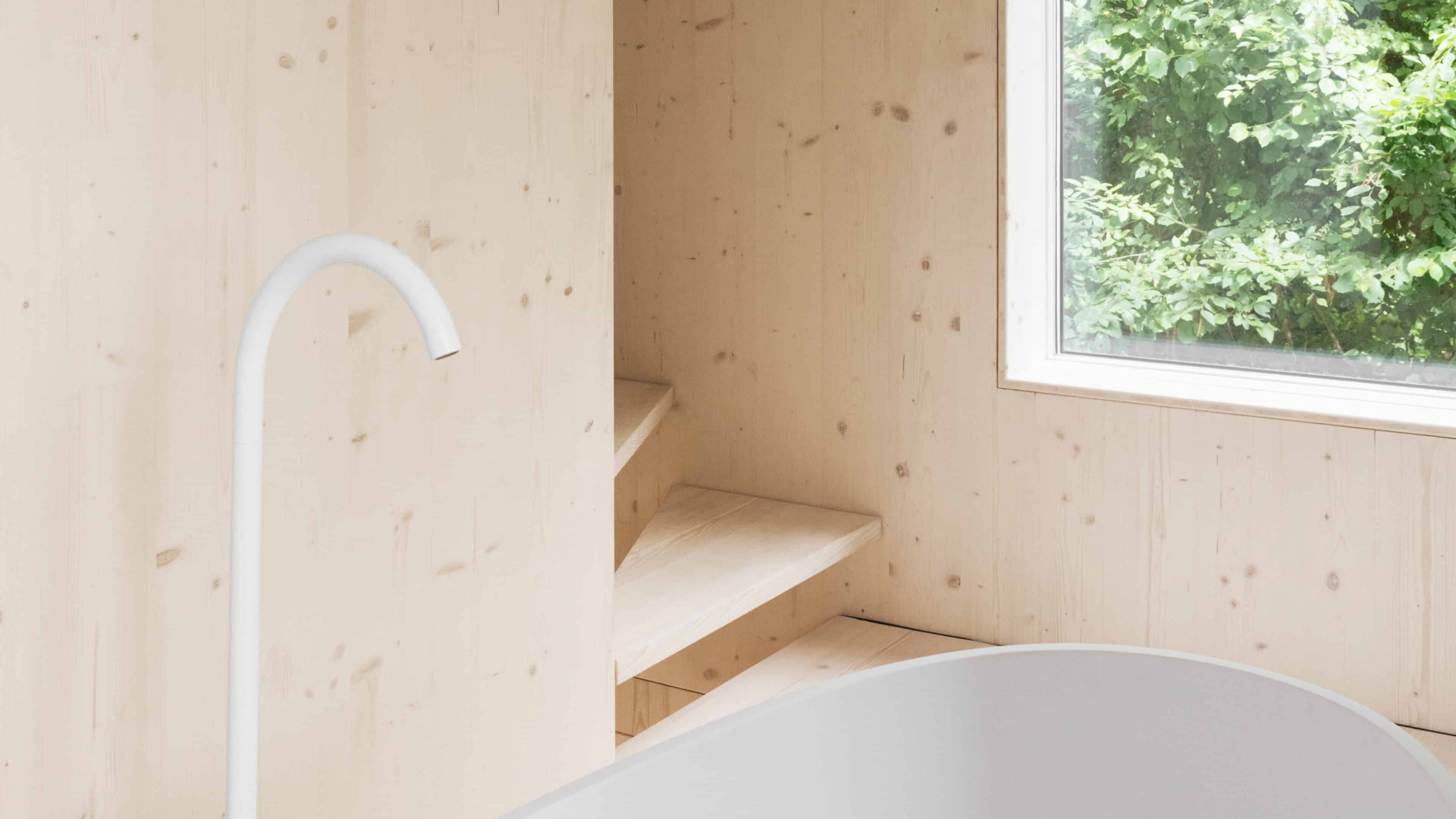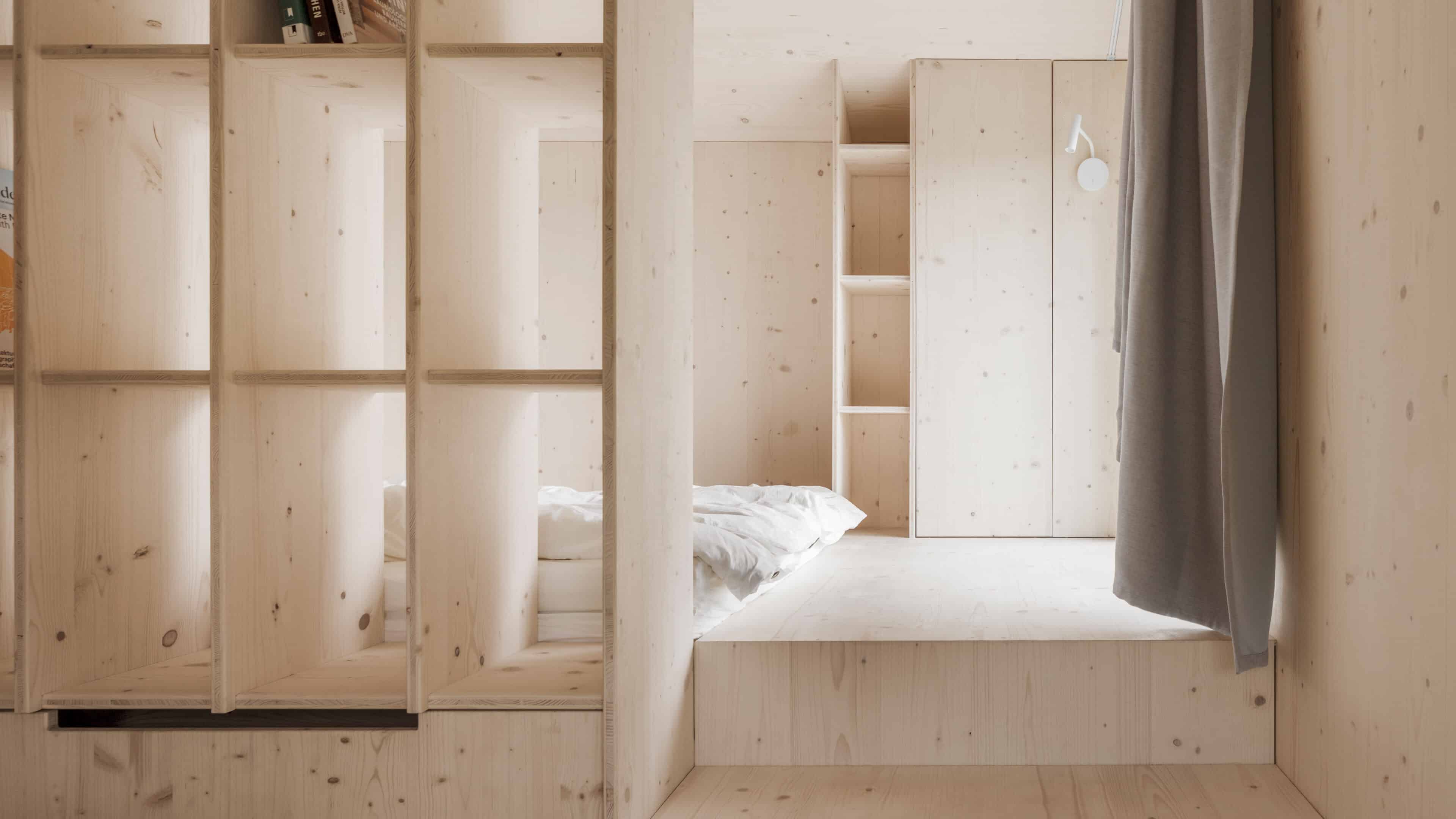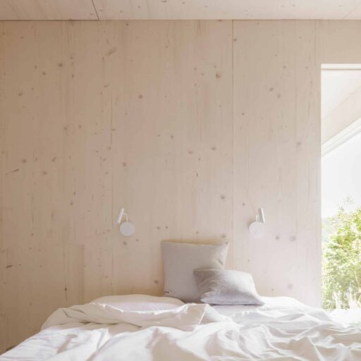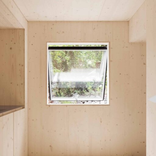 • als nachwachsender Rohstoff mit guter Ökobilanz wurde bewusst auf Holz gesetzt: Wände, Fassade, Dämmung, Decken, Dächer und Möbel – alles ist aus Holz
