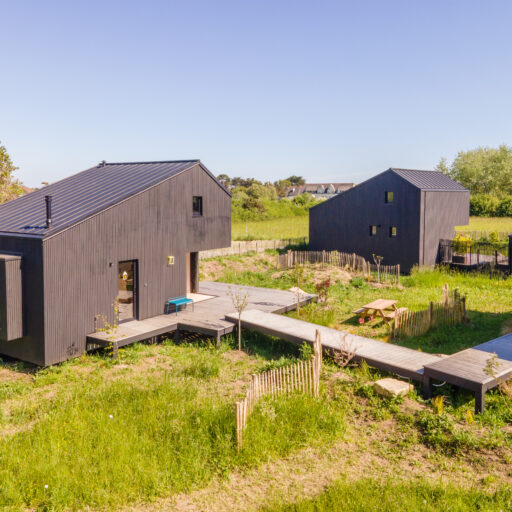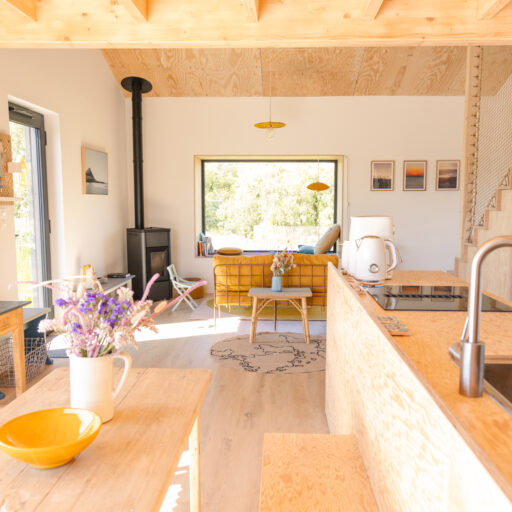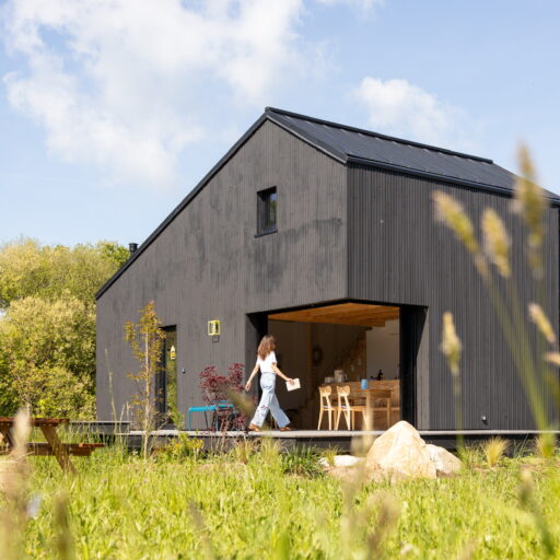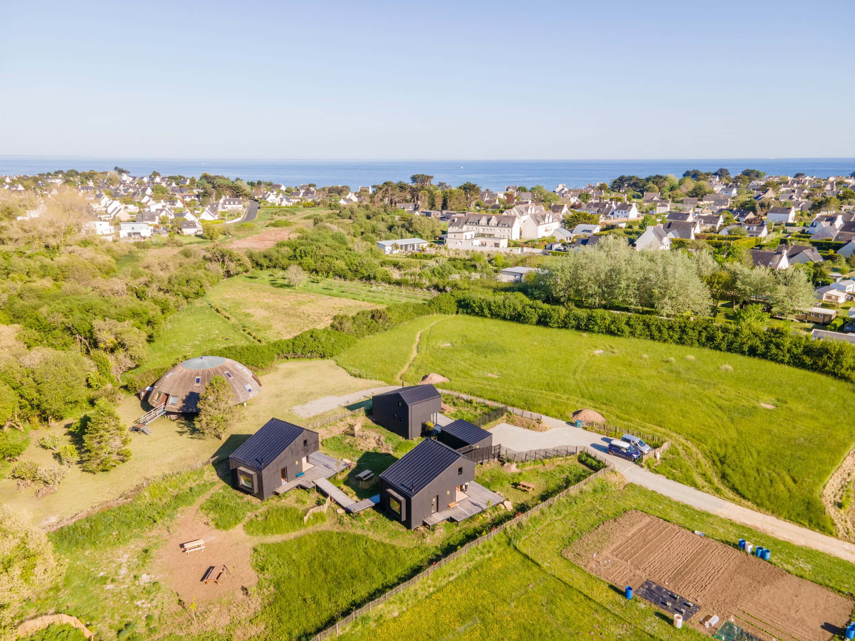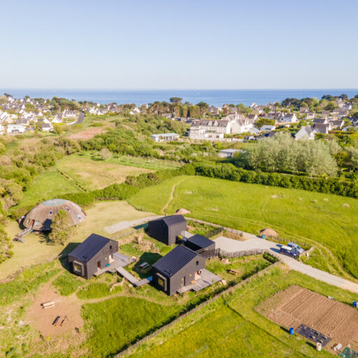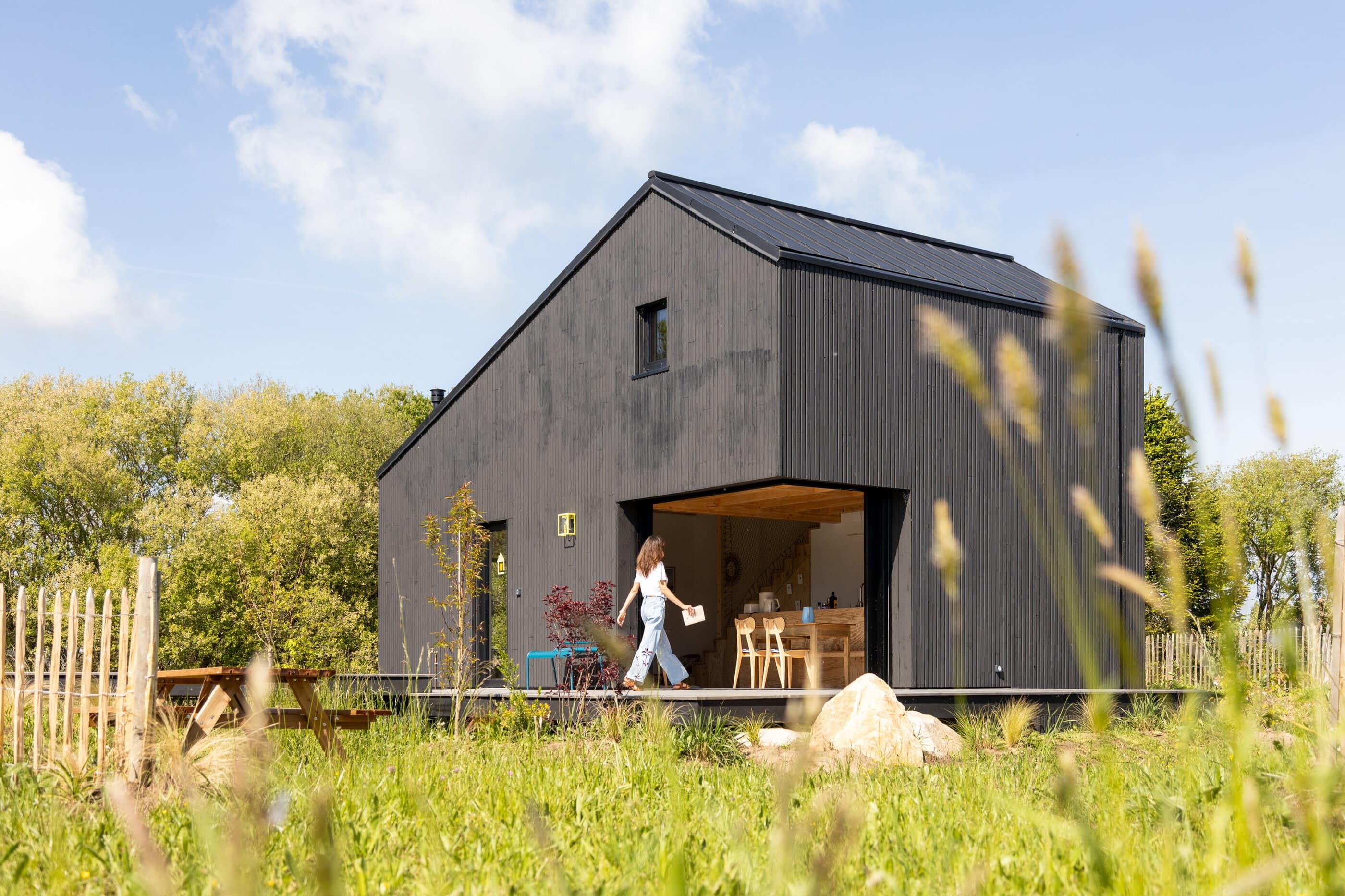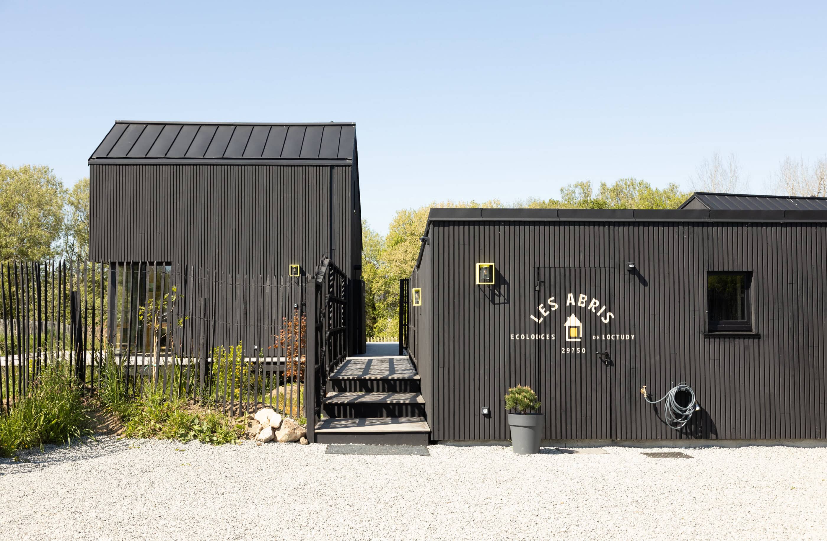 Ein Acker in der Bretagne, dazu ein Paar mit einer Idee: So fängt die Geschichte der „Abris“ an. Kristelle und Youenn haben das drei 3000 qm große Wiesengrundstück nahe Loctudy von Großmutter Mathilde geerbt – und drei mattschwarze Holzhäuser nach dem Vorbild norwegischer Austernhütten daraufgesetzt, auf Stelzen, verbunden durch schmale Stege. Dass auf den Veranden bunte Badetücher in der Sonne trocknen und SUP-Boards an der Hauswand lehnen, verrät, wie nah die Küste ist: vier Minuten über einen schmalen Pfad, dann steht man an der Plage de Lodonnec mit ihrem weißen, feinen Sand. Die Tiny Houses selbst sind gerade 50 Quadratmeter klein, aber klug geschnitten: Wohnraum, Küche, zwei Schlafzimmer und Bad auf zwei Ebenen. Dazu bodentiefe Fenster, helles Holz, Korbmöbel, Naturtöne und hier und da ein senfgelber oder knallblauer Akzent. Über dem Wohnzimmer spannt sich ein großes Liegenetz, in dem man mit etwas Glück selbst einmal liegen darf, sofern keine Kinder im Haus sind (sind welche da, ist das Netz vergeben). Im Erkerfenster eine Sitzbank zum Lesen, in der Ecke ein Pelletofen zum Aufwärmen nach dem Wassersport. Wer sich im Wellenreiten versuchen möchte, dem bietet sich nämlich nach 15-minütiger Autofahrt eine ausgezeichnete Gelegenheit: Pointe de la Torche gilt als der bekannteste Surfspot der Bretagne – für Einsteiger wie für Profis. Doch egal, ob man morgens auf dem Brett stand oder es bei einem Spaziergang am Strand belassen hat: Wenn es abends vom Grill auf der Terrasse duftet, ist man froh, wieder in seiner Lodge zu sein – für frische Langusten vom Hafen, serviert mit Meeresbrise unter sternenklarem Himmel.