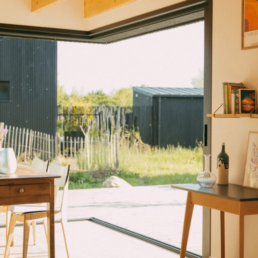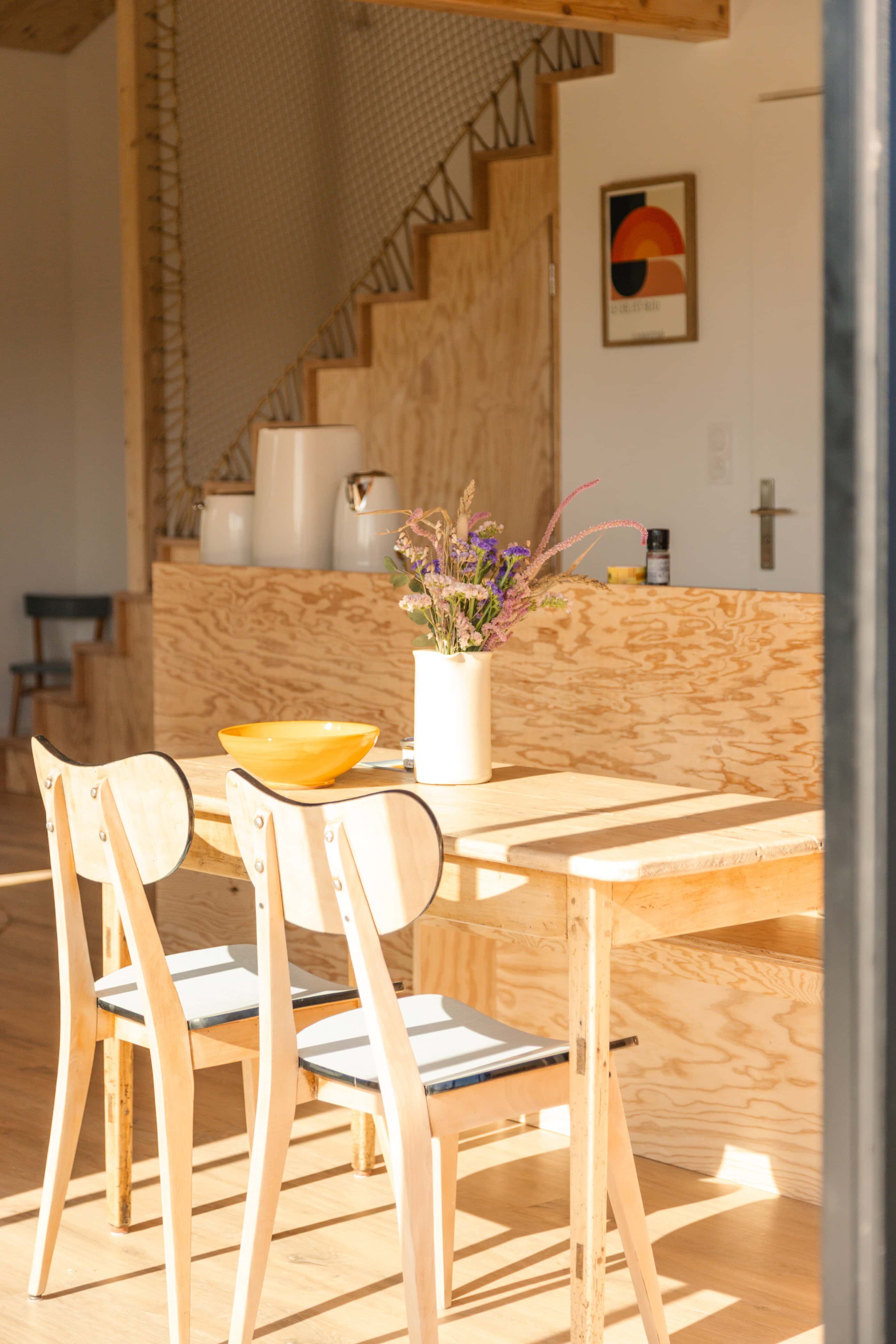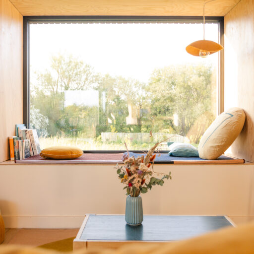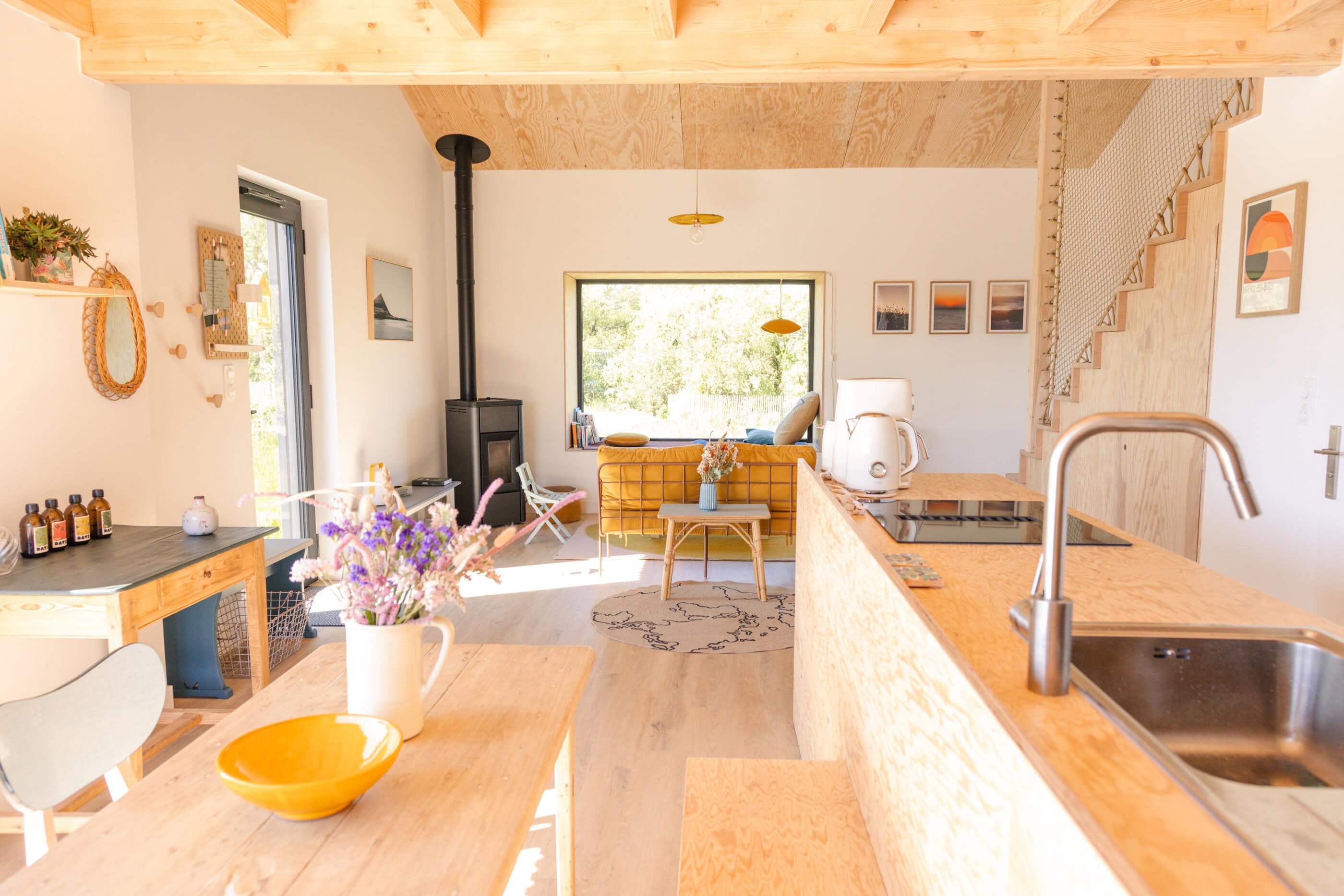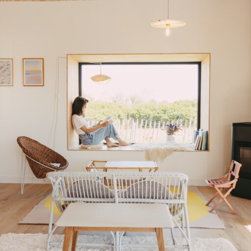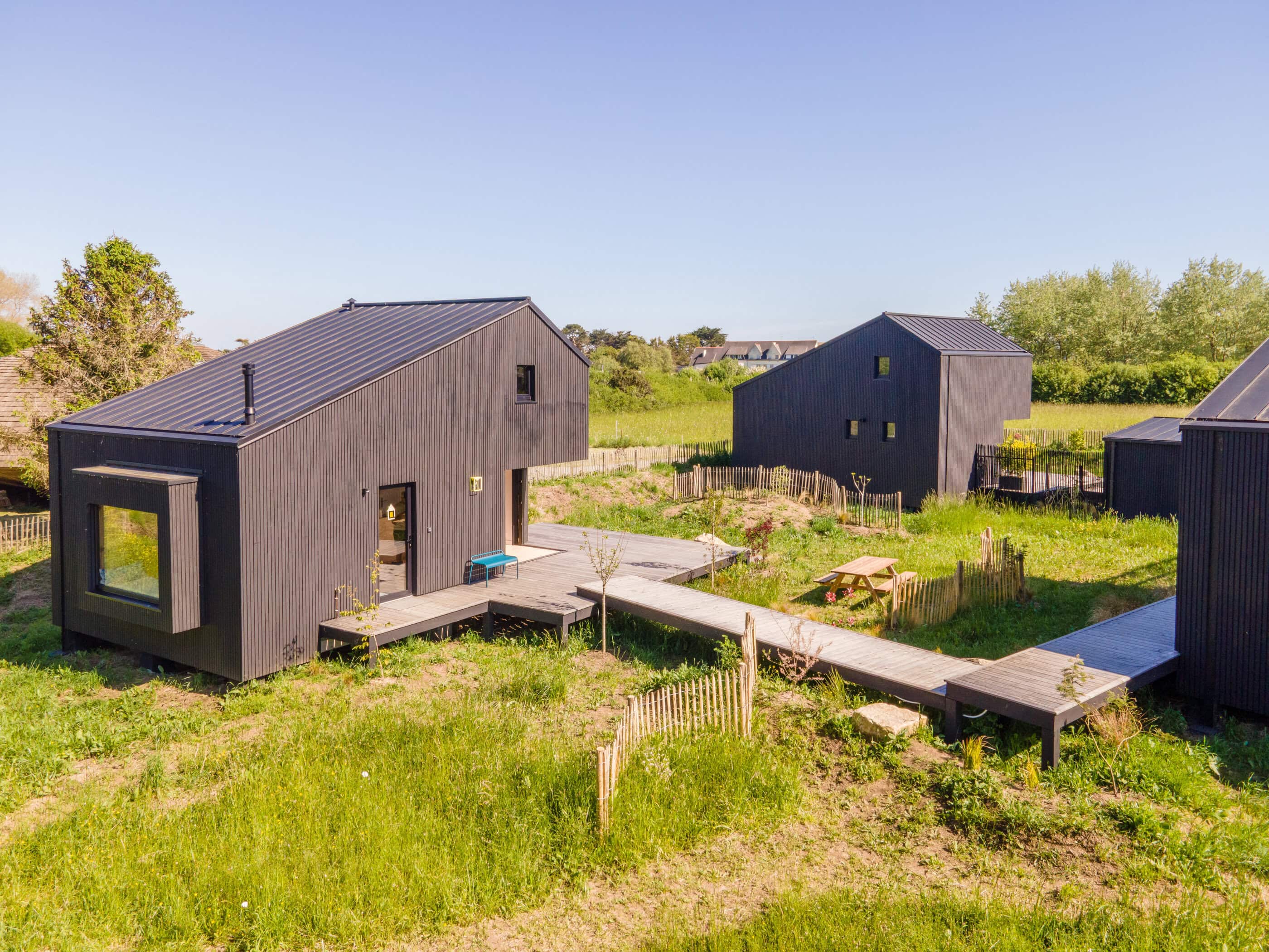 Ein Acker in der Bretagne, dazu ein Paar mit einer Idee: So fängt die Geschichte der „Abris“ an. Kristelle und Youenn haben das drei 3000 qm große Wiesengrundstück nahe Loctudy von Großmutter Mathilde geerbt – und drei mattschwarze Holzhäuser nach dem Vorbild norwegischer Austernhütten daraufgesetzt, auf Stelzen, verbunden durch schmale Stege. Dass auf den Veranden bunte Badetücher in der Sonne trocknen und SUP-Boards an der Hauswand lehnen, verrät, wie nah die Küste ist: vier Minuten über einen schmalen Pfad, dann steht man an der Plage de Lodonnec mit ihrem weißen, feinen Sand. Die Tiny Houses selbst sind gerade 50 Quadratmeter klein, aber klug geschnitten: Wohnraum, Küche, zwei Schlafzimmer und Bad auf zwei Ebenen. Dazu bodentiefe Fenster, helles Holz, Korbmöbel, Naturtöne und hier und da ein senfgelber oder knallblauer Akzent. Über dem Wohnzimmer spannt sich ein großes Liegenetz, in dem man mit etwas Glück selbst einmal liegen darf, sofern keine Kinder im Haus sind (sind welche da, ist das Netz vergeben). Im Erkerfenster eine Sitzbank zum Lesen, in der Ecke ein Pelletofen zum Aufwärmen nach dem Wassersport. Wer sich im Wellenreiten versuchen möchte, dem bietet sich nämlich nach 15-minütiger Autofahrt eine ausgezeichnete Gelegenheit: Pointe de la Torche gilt als der bekannteste Surfspot der Bretagne – für Einsteiger wie für Profis. Doch egal, ob man morgens auf dem Brett stand oder es bei einem Spaziergang am Strand belassen hat: Wenn es abends vom Grill auf der Terrasse duftet, ist man froh, wieder in seiner Lodge zu sein – für frische Langusten vom Hafen, serviert mit Meeresbrise unter sternenklarem Himmel.