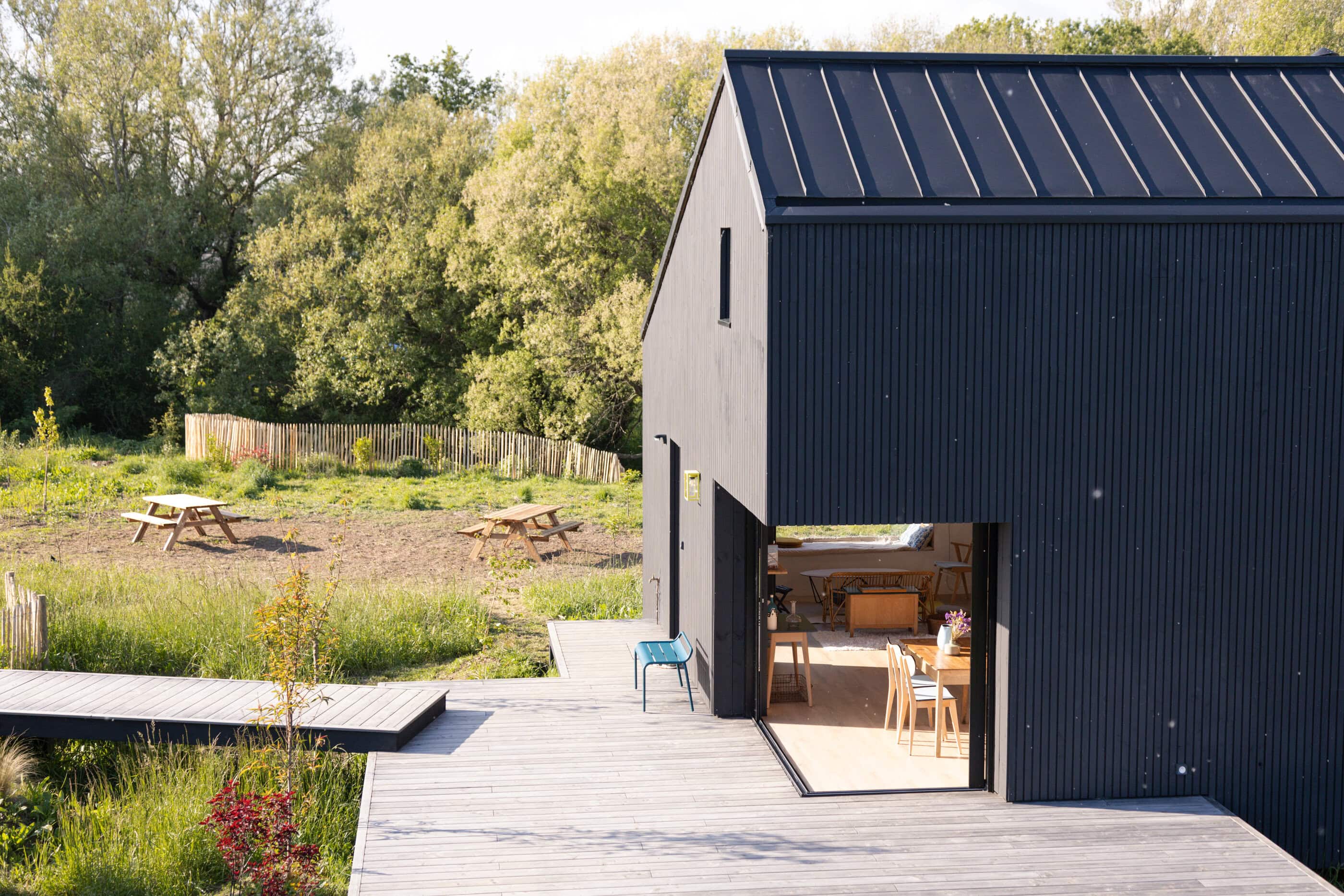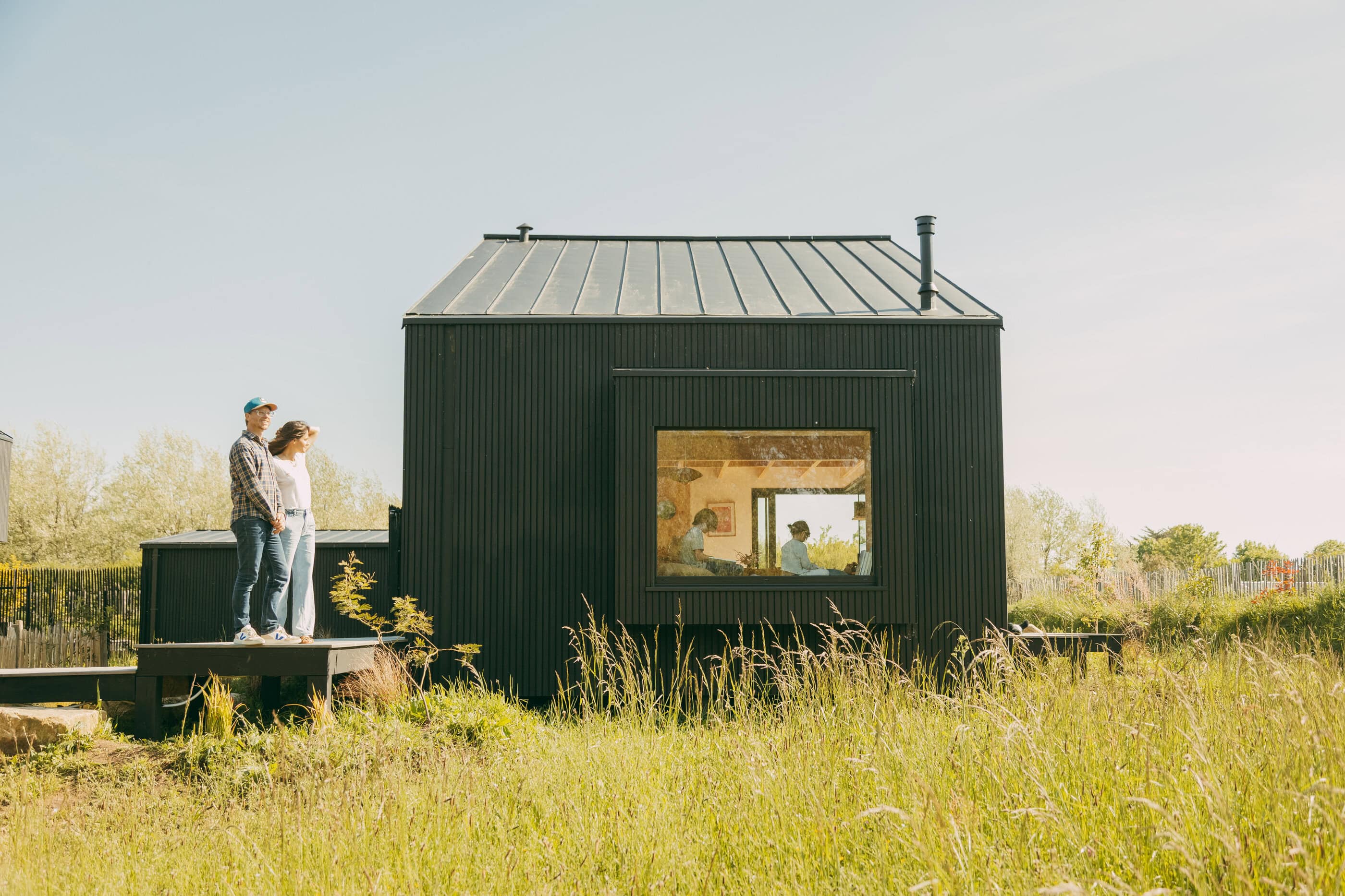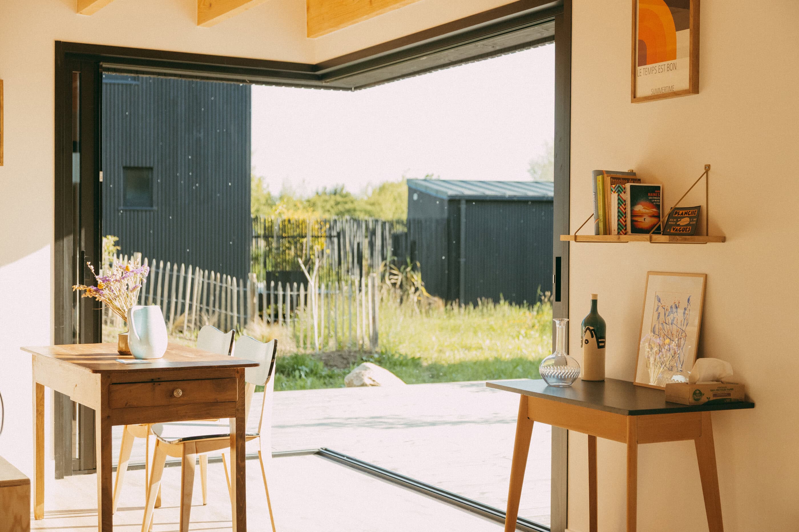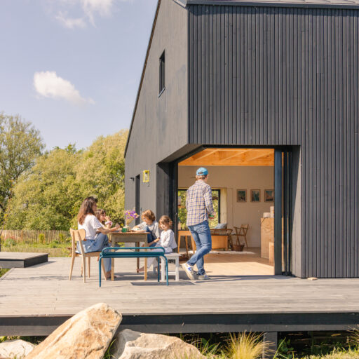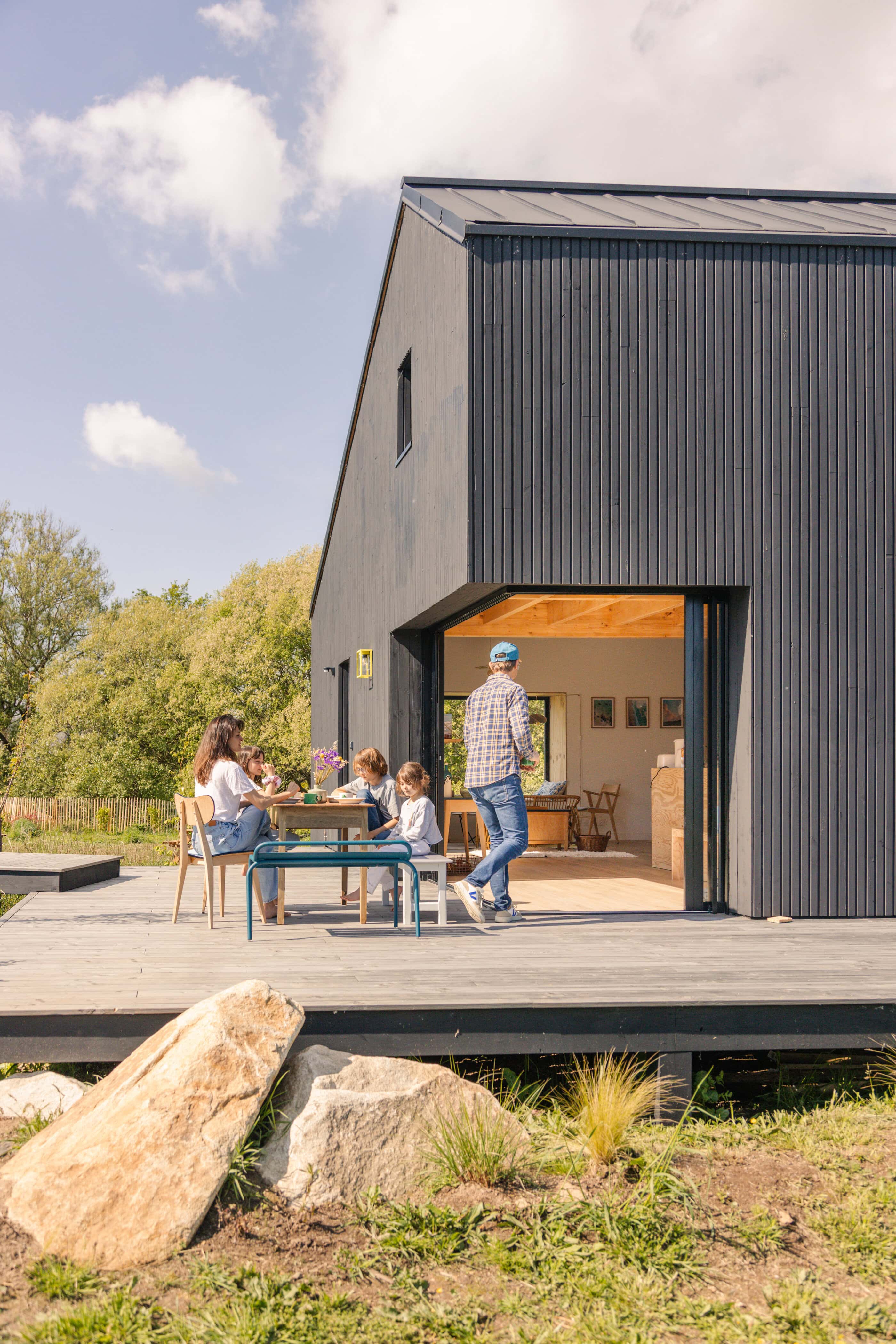 Ein Acker in der Bretagne, dazu ein Paar mit einer Idee: So fängt die Geschichte der „Abris“ an. Kristelle und Youenn haben das drei 3000 qm große Wiesengrundstück nahe Loctudy von Großmutter Mathilde geerbt – und drei mattschwarze Holzhäuser nach dem Vorbild norwegischer Austernhütten daraufgesetzt, auf Stelzen, verbunden durch schmale Stege. Dass auf den Veranden bunte Badetücher in der Sonne trocknen und SUP-Boards an der Hauswand lehnen, verrät, wie nah die Küste ist: vier Minuten über einen schmalen Pfad, dann steht man an der Plage de Lodonnec mit ihrem weißen, feinen Sand. Die Tiny Houses selbst sind gerade 50 Quadratmeter klein, aber klug geschnitten: Wohnraum, Küche, zwei Schlafzimmer und Bad auf zwei Ebenen. Dazu bodentiefe Fenster, helles Holz, Korbmöbel, Naturtöne und hier und da ein senfgelber oder knallblauer Akzent. Über dem Wohnzimmer spannt sich ein großes Liegenetz, in dem man mit etwas Glück selbst einmal liegen darf, sofern keine Kinder im Haus sind (sind welche da, ist das Netz vergeben). Im Erkerfenster eine Sitzbank zum Lesen, in der Ecke ein Pelletofen zum Aufwärmen nach dem Wassersport. Wer sich im Wellenreiten versuchen möchte, dem bietet sich nämlich nach 15-minütiger Autofahrt eine ausgezeichnete Gelegenheit: Pointe de la Torche gilt als der bekannteste Surfspot der Bretagne – für Einsteiger wie für Profis. Doch egal, ob man morgens auf dem Brett stand oder es bei einem Spaziergang am Strand belassen hat: Wenn es abends vom Grill auf der Terrasse duftet, ist man froh, wieder in seiner Lodge zu sein – für frische Langusten vom Hafen, serviert mit Meeresbrise unter sternenklarem Himmel.