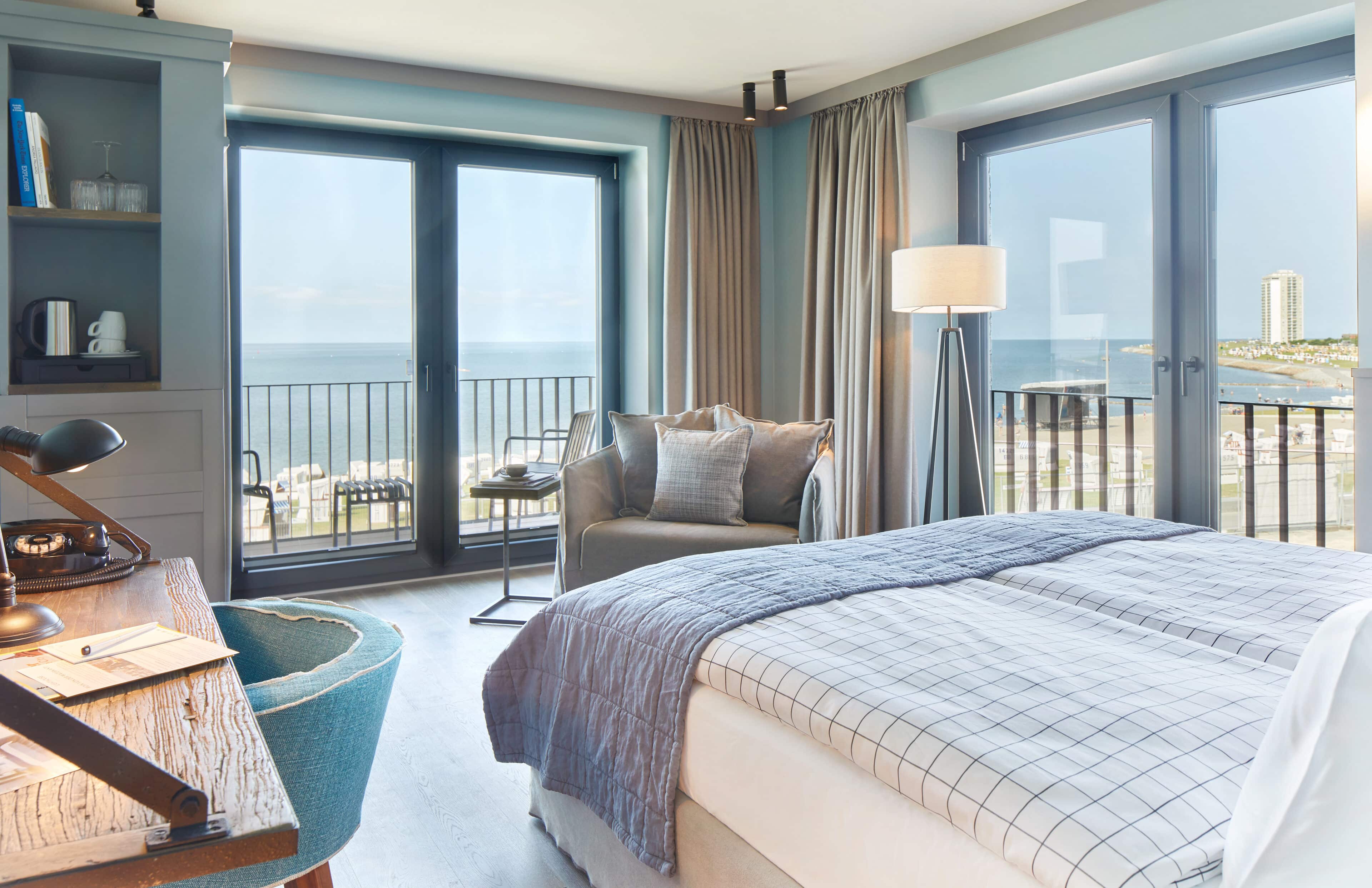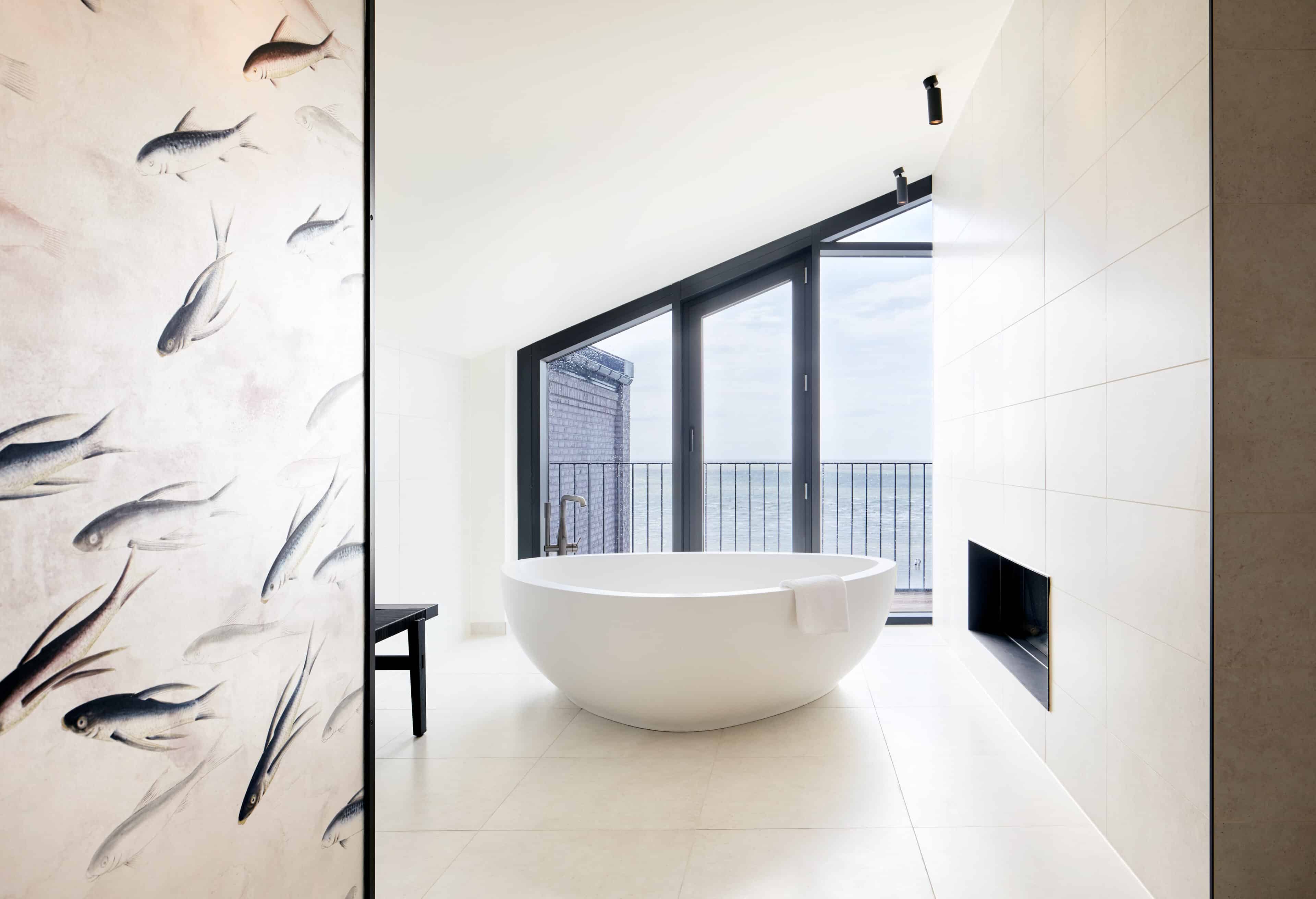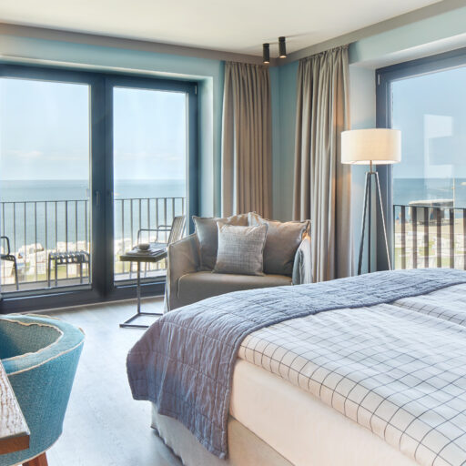 - wer sich mal etwas Besonderes gönnen möchte, der checkt in einer der vier Suiten ein: die „Cosman Suite“ mit Dampfbad, die „Lighthouse Suite“ mit privater Sauna, Badewanne mit Blick aufs Meer und 2 Balkonen, die „Wittmann Suite“, in der österreichisches Handwerk auf nordische Gelassenheit trifft oder die „Lindbergh Suite“ mit Ziegelsteinwand, Schwarzstahl und eigener Sauna