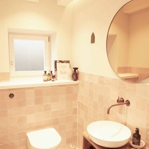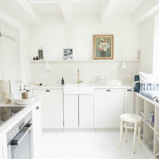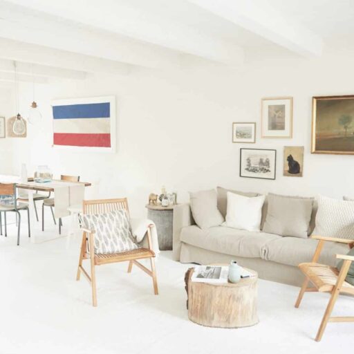 In einer charmanten Kopfsteinpflastergasse im Örtchen Garding, ganz in der Nähe des beliebten Nordseebads St. Peter-Ording, steht ein kleines historisches Stadthaus. Hübsch und adrett sieht es aus – mit seinen warmen, roten Backsteinen und den pastellfarbenen Fenstern und Türen. Der Name des Hauses: „Milch & Limonade“. Der herzige Name, der so wunderbar zum Bilderbuchcharakter passt, soll an frühere Zeiten erinnern. Da war hier nämlich ein Laden für – genau – Milch und Limonade zuhause. Das Haus stammt aus dem Jahr 1780, erhalten wurde allerdings lediglich die äußere Backsteinhülle. Innen handelt es sich praktisch um einen Neubau mit modernem Standard und neuester Technik. Das Innenleben erinnert an ein englisches Cottage, gemischt mit reduziertem skandinavischen Design und einigen Prisen norddeutscher Details: so schön und so besonders, dass man sogleich ins Schwärmen gerät. Mit seinem offenen Grundriss, den weißen Holz- und Betonböden und vielen natürlichen Materialien wie Holz und Rattan wirkt das Haus sehr hell und modern und verströmt gleichzeitig eine behagliche Wohlfühlatmosphäre. Viele liebevolle und gut überlegte Details wie die Sitzfensterbank in der schönen Küche im englischen Shaker-Stil, die hintereinander angeordneten Kinderbetten, die Auswahl der Bilder und die perfekt gewählten Farbakzente lassen staunen und verbreiten ausnehmend fröhliche Stimmung. Der urban anmutende, kleine verträumte Innenhof wird vor allem im Sommer zum zweiten Wohnzimmer, wo sich ganz wunderbar zu Ehren des Hauses ein Gläschen Limonade oder Milch (oder doch lieber Wein?) trinken lässt. Und sonst so? Da wartet die Halbinsel Eiderstedt darauf, entdeckt zu werden: endlos grüne Weiten, breite Sandstrände, die wilde Westküste, ein Wind, der Kopf und Gemüt so herrlich zerzaust und Gedanken wieder geraderückt. Ungeheuer erholsam diese Mischung aus reichlich Meerluft, Natur und feinstem Design.