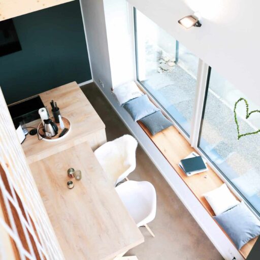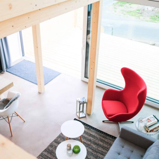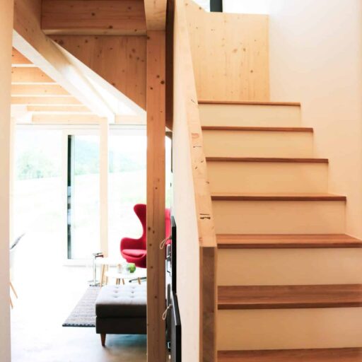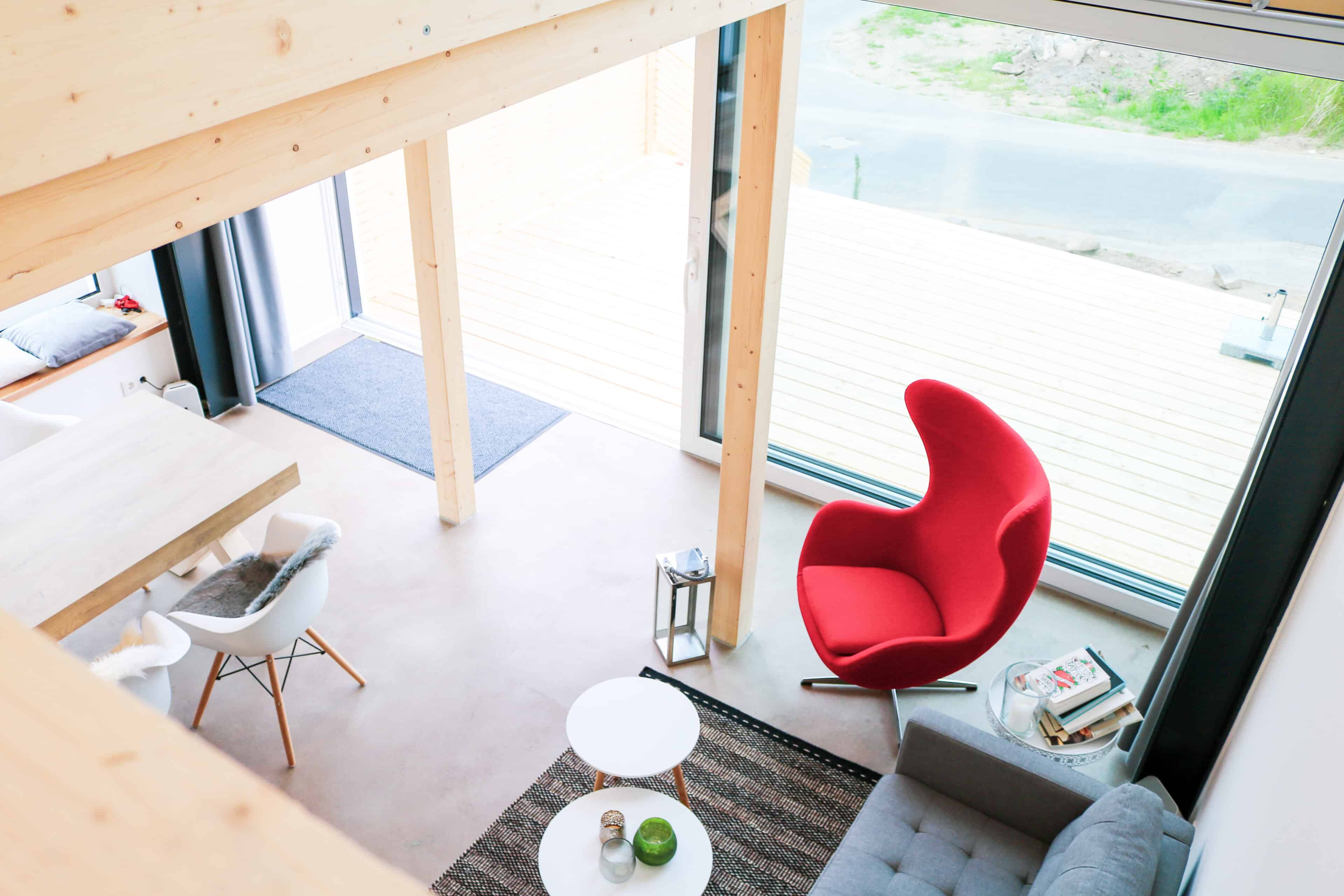 - es wurden hochwertige und ökologische Materialien verwendet, das Fichtenholz für den Außenbereich stammt z.B. aus heimischen Wäldern, und auf schädliche Lacke und Farben wurde bewusst verzichtet