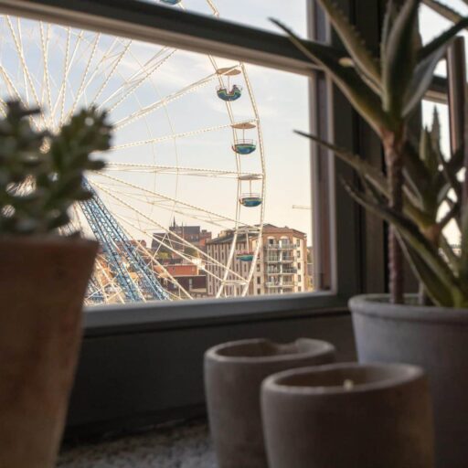 - den Blick vom Balkon über die Altstadt und den Hafen (und manchmal auf ein Kreuzfahrtschiff oder ein Riesenrad)