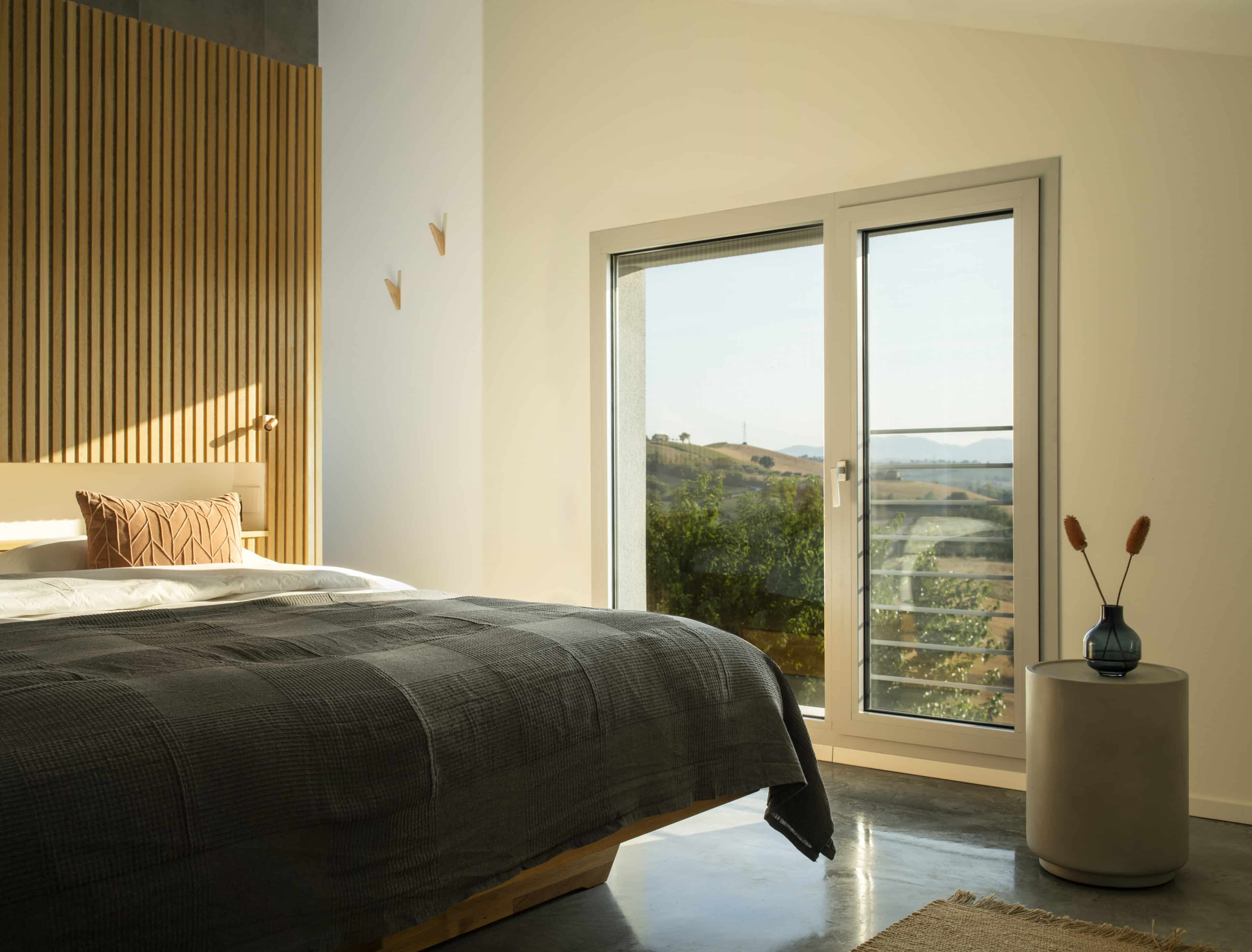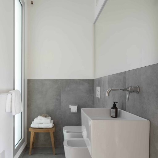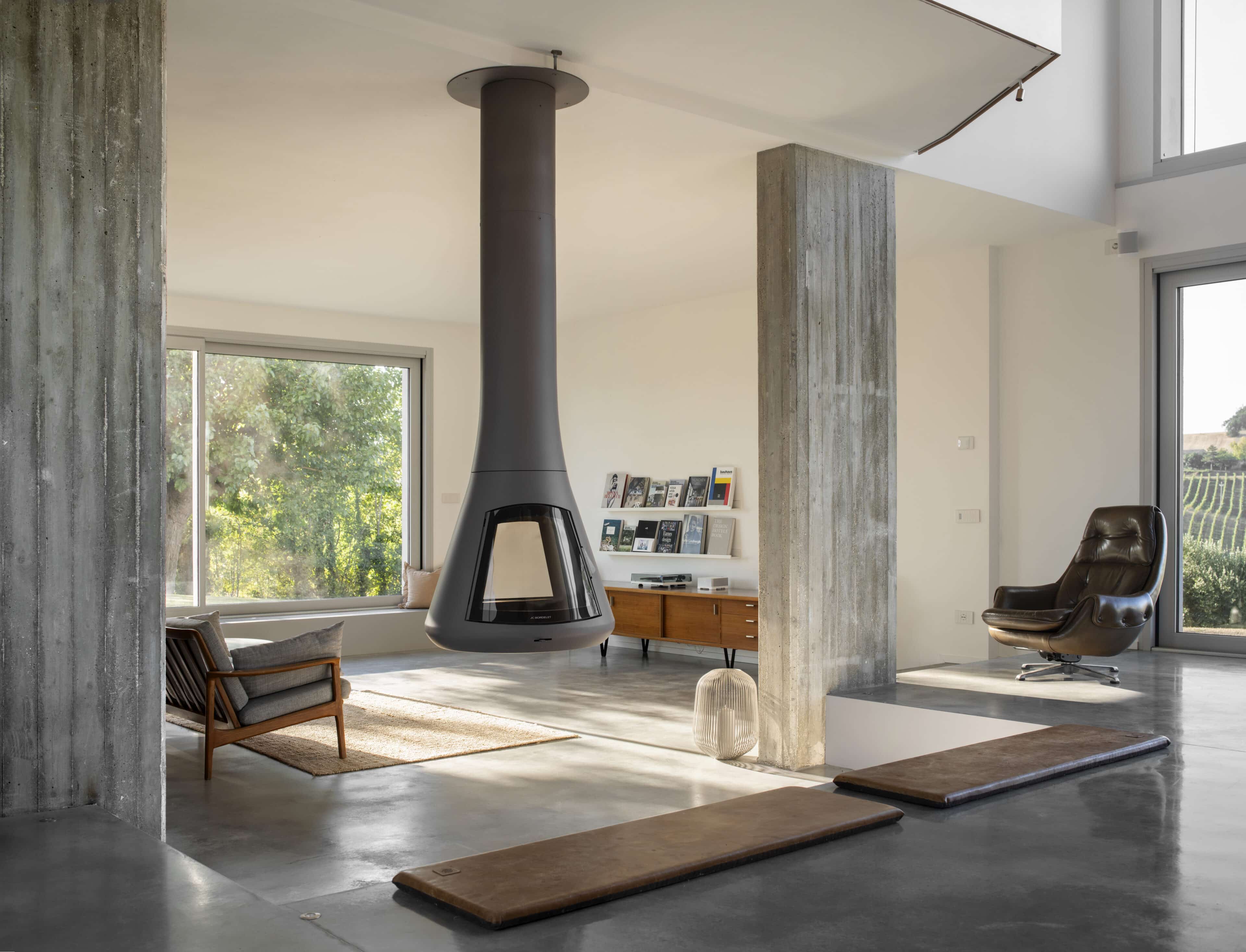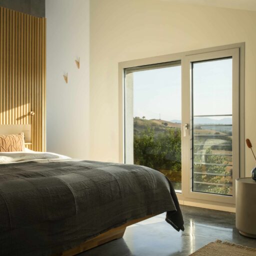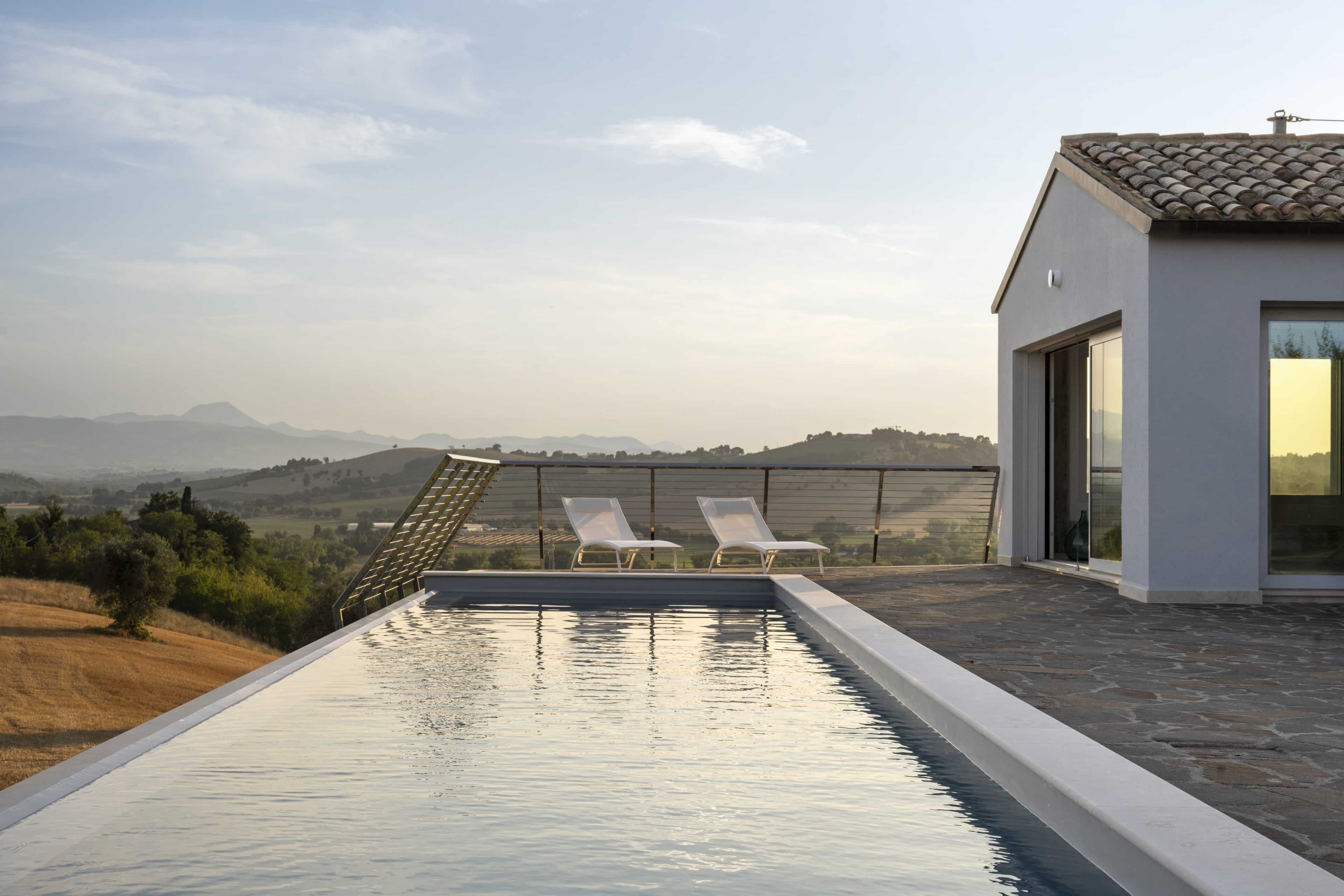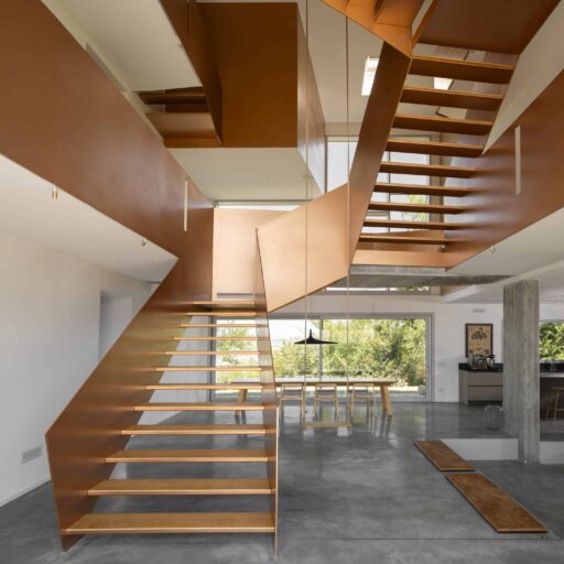 Schon der Name ist eine Einladung, loszulassen und durchzuatmen. „Zeitvertreib“ bedeutet er wortwörtlich, mit „die Seele baumeln lassen“ ließe er sich aber ebenso gut übersetzen. Wo könnte das besser klappen als an diesem verträumten Fleck in den italienischen Marken? Dort, wo früher ein altes Bauernhaus langsam verfiel, steht heute ein Architektenhaus mit Panoramafenstern, die den Blick auf sanfte Hügel und Felder bis zu den Monti Sibillini freigeben. Neben der Natur gibt es hier aber noch einen weiteren großen Star. Wer das familiengeführte Bed & Breakfast betritt, dem fällt direkt die riesige Stahltreppe ins Auge, die zu schweben scheint, Gemeinschaftsbereiche verbindet und fast an ein skulpturales Kunstwerk erinnert. Das offene Konzept verströmt ein luftiges Raumgefühl, das cleane, nordische Design mit viel Stahl, Beton, Glas und Holz vermittelt Klarheit. Spätestens, wenn man von hier auf Kakteen, Rosmarin und Palmengewächse im Garten schaut und der Abend alles in warmes Licht taucht, stellt sich die berühmte italienische Leichtigkeit ein. Zum Glück ist so ein Urlaub ja dafür gedacht, diesem Gefühl auch nachzugehen. Dann heißt es, sich mit eiskaltem Spritz, Oliven und Grissini am Salzwasserpool einzufinden und der Sonne beim Untergehen zuzusehen. Das ist aber nur eine von vielen Optionen, hier zu entspannen. Auf der Schaukel in der Mitte des Wohnzimmers, dem kuscheligen Platz am Holzofen oder im geflochtenen Schaukelstuhl vorm Panoramafenster geht das ganz genauso schön. Im passa.tempo erinnern wir uns wieder daran, die kleinen Momente zu feiern: den ersten Cappuccino in der Morgensonne, ein gutes Buch im Schatten alter Bäume, den Blick in die Sterne – und das alles vor allem mit ganz viel Ruhe und Zeit.