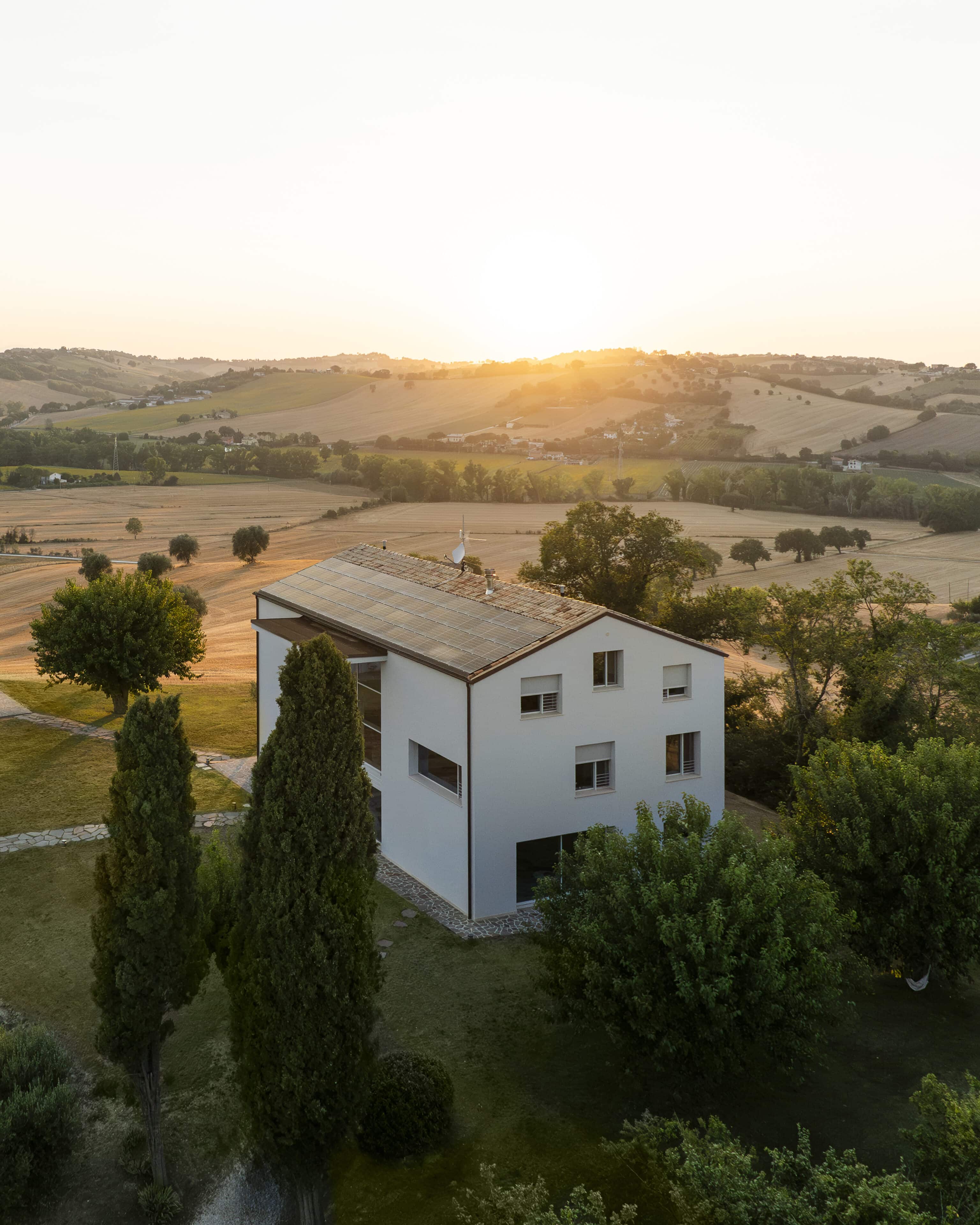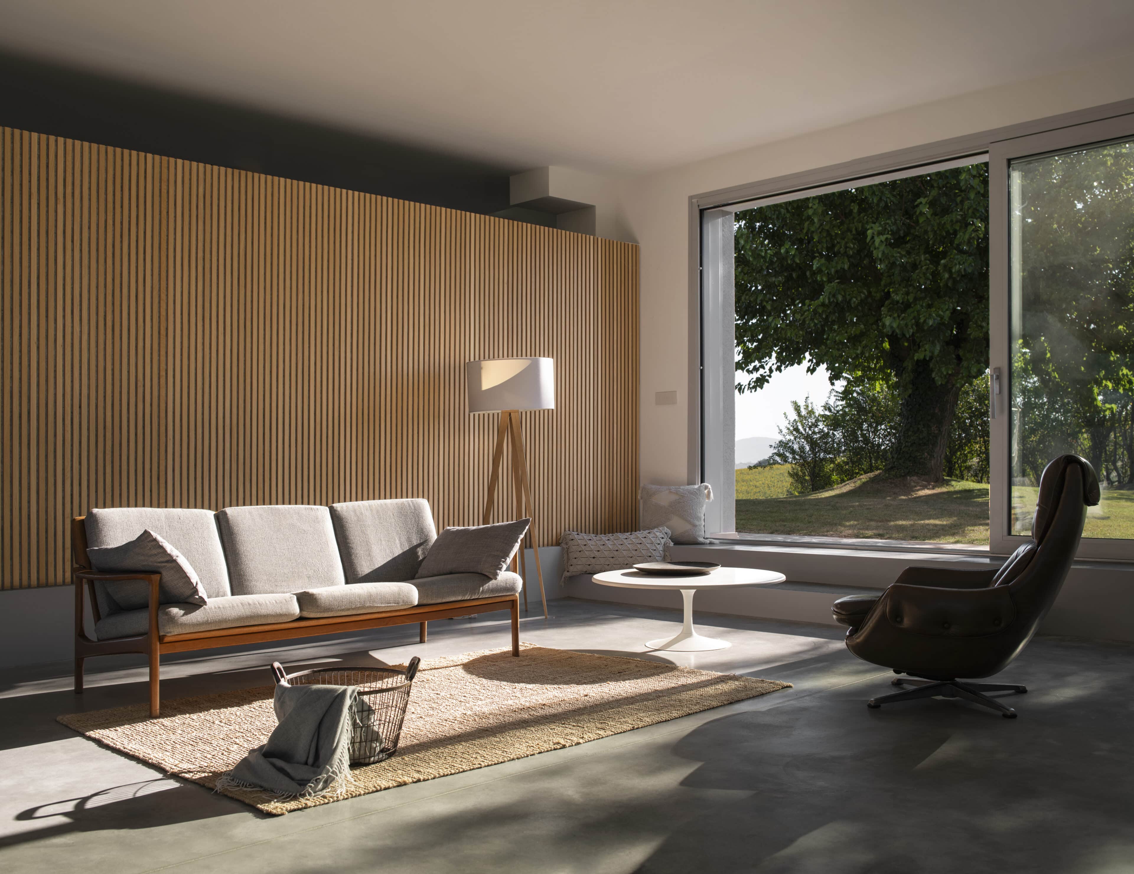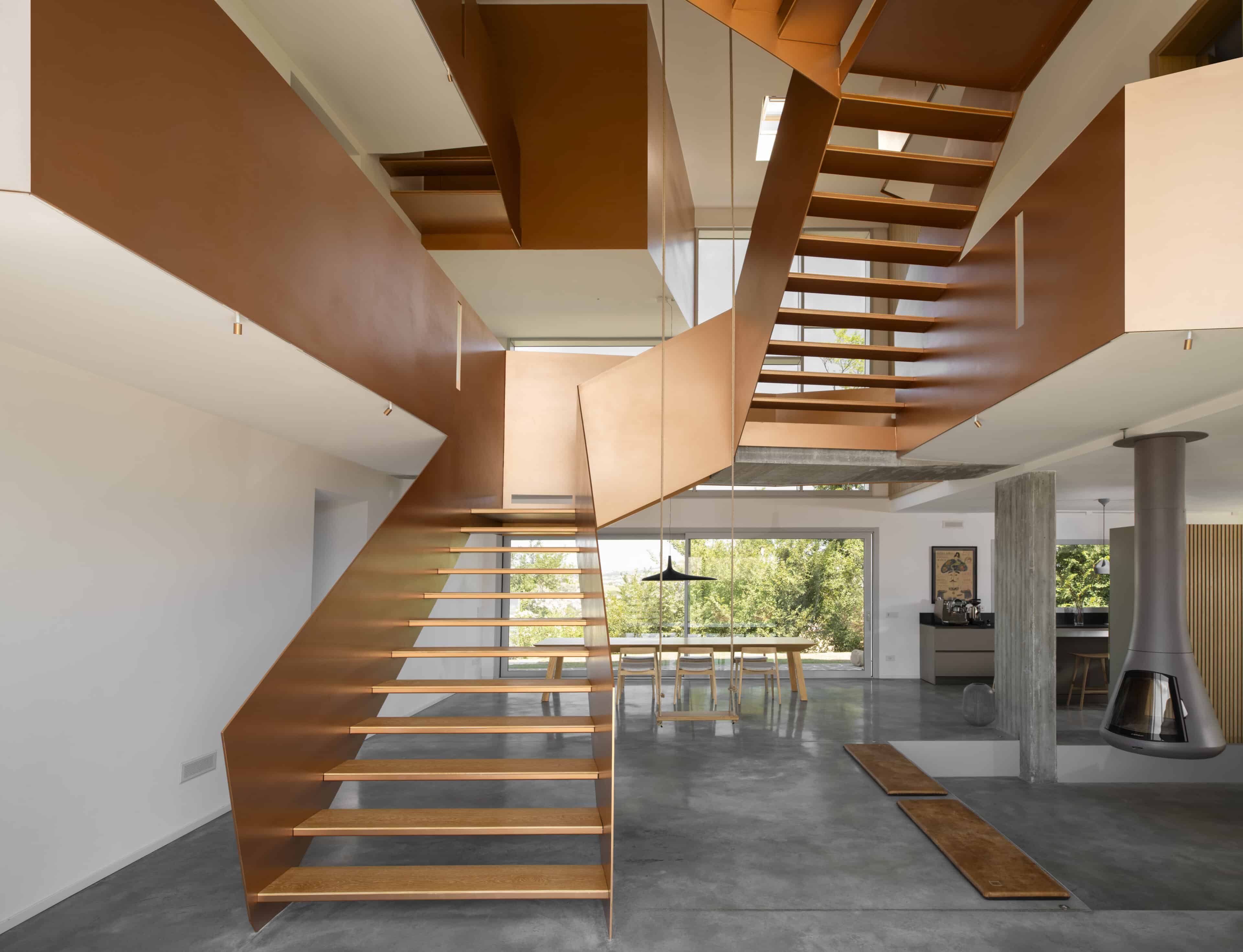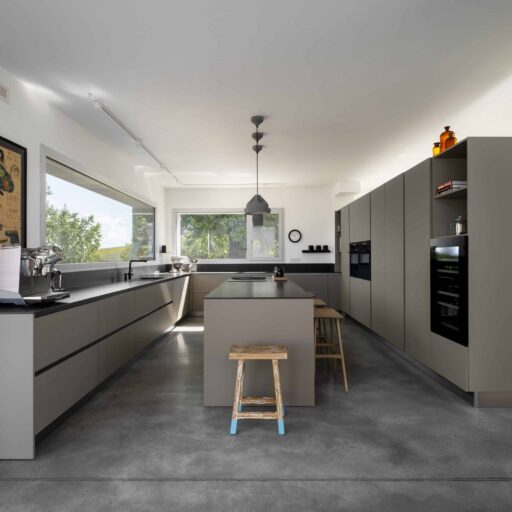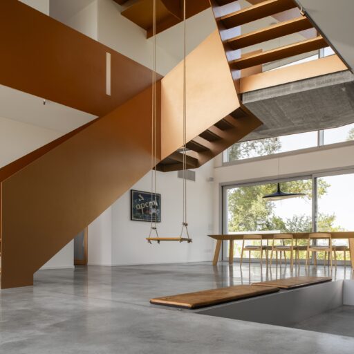 Schon der Name ist eine Einladung, loszulassen und durchzuatmen. „Zeitvertreib“ bedeutet er wortwörtlich, mit „die Seele baumeln lassen“ ließe er sich aber ebenso gut übersetzen. Wo könnte das besser klappen als an diesem verträumten Fleck in den italienischen Marken? Dort, wo früher ein altes Bauernhaus langsam verfiel, steht heute ein Architektenhaus mit Panoramafenstern, die den Blick auf sanfte Hügel und Felder bis zu den Monti Sibillini freigeben. Neben der Natur gibt es hier aber noch einen weiteren großen Star. Wer das familiengeführte Bed & Breakfast betritt, dem fällt direkt die riesige Stahltreppe ins Auge, die zu schweben scheint, Gemeinschaftsbereiche verbindet und fast an ein skulpturales Kunstwerk erinnert. Das offene Konzept verströmt ein luftiges Raumgefühl, das cleane, nordische Design mit viel Stahl, Beton, Glas und Holz vermittelt Klarheit. Spätestens, wenn man von hier auf Kakteen, Rosmarin und Palmengewächse im Garten schaut und der Abend alles in warmes Licht taucht, stellt sich die berühmte italienische Leichtigkeit ein. Zum Glück ist so ein Urlaub ja dafür gedacht, diesem Gefühl auch nachzugehen. Dann heißt es, sich mit eiskaltem Spritz, Oliven und Grissini am Salzwasserpool einzufinden und der Sonne beim Untergehen zuzusehen. Das ist aber nur eine von vielen Optionen, hier zu entspannen. Auf der Schaukel in der Mitte des Wohnzimmers, dem kuscheligen Platz am Holzofen oder im geflochtenen Schaukelstuhl vorm Panoramafenster geht das ganz genauso schön. Im passa.tempo erinnern wir uns wieder daran, die kleinen Momente zu feiern: den ersten Cappuccino in der Morgensonne, ein gutes Buch im Schatten alter Bäume, den Blick in die Sterne – und das alles vor allem mit ganz viel Ruhe und Zeit.