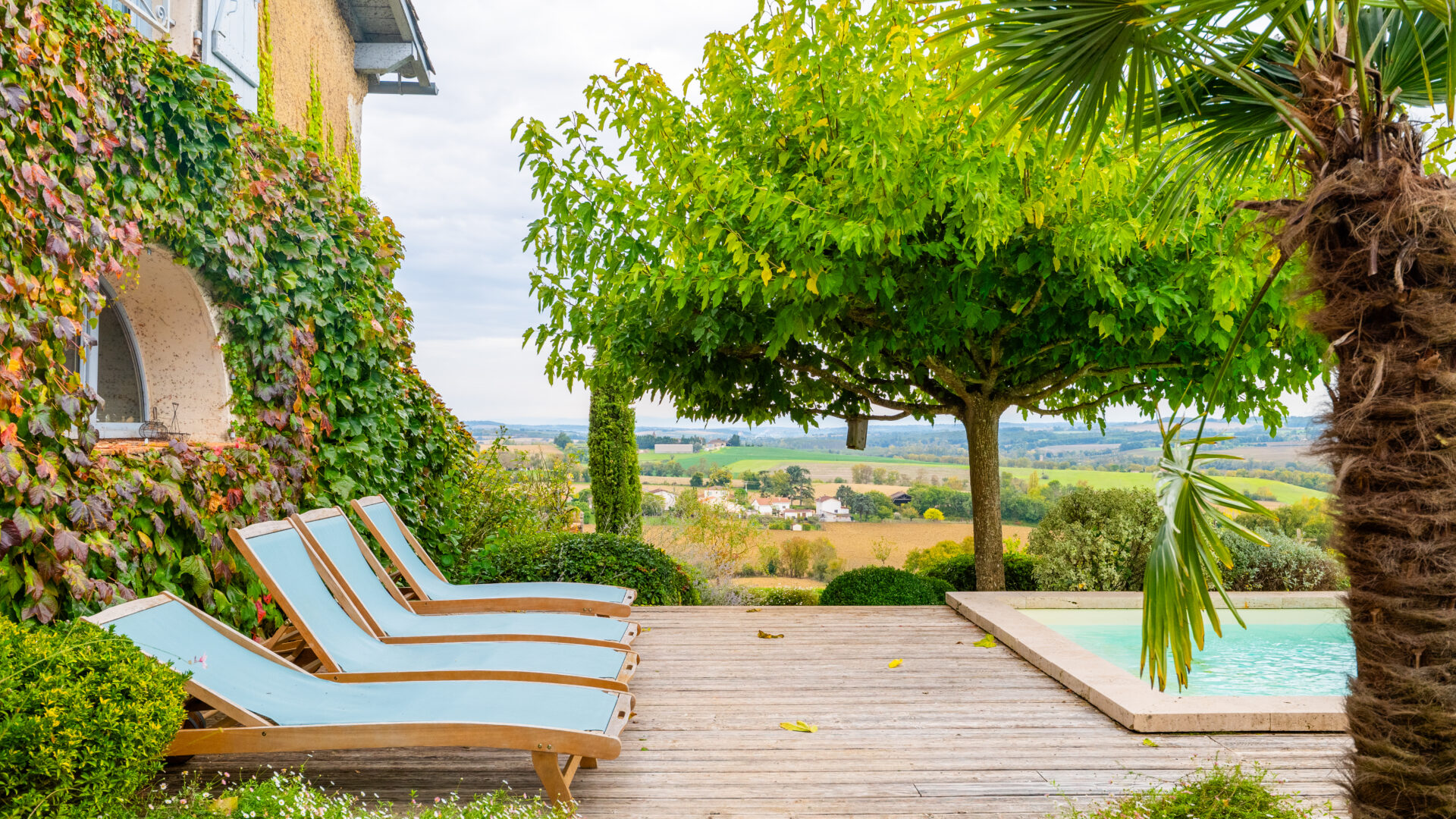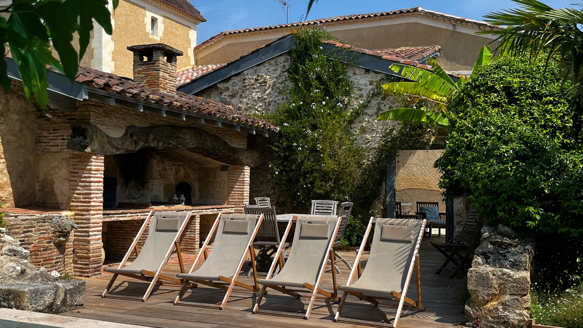 Umgeben von endlosen Feldern, mitten in einem mediterranen Garten, in dem dreihundertjährige Zypressen, Olivenbäume und Palmen wachsen, steht das Anwesen aus dem 16. Jahrhundert. Unweit des Dorfs Sainte-Christie im Südwesten Frankreichs gelegen, überblickt man von hier die hügelige Landschaft von Gers – auch „Toskana Frankreichs“ genannt – bis zur Pyrenäenkette. Einst dienten die alten Mauern als Pfarrhaus, später ließen sich Nonnen hier nieder und unterrichteten auch die Kinder aus der Gegend. Bevor es behutsam wieder in Stand gesetzt wurde, war es fünfzig Jahre lang unbewohnt. Doch längst ist wieder Leben eingezogen. Dass dieses Haus mit seinen drei individuellen Gästezimmern eine Menge Geschichten zu erzählen hat, spürt jeder, der über die Schwelle tritt. Drinnen empfangen antike Möbel, freiliegende Deckenbalken und einzelne, unverputzte Natursteinmauern die Gäste. Ausgewählte Kunst und Flohmarkt-Schätze verleihen Wärme und Gemütlichkeit, helle Wohntextilien lassen die Räume luftig wirken. Apropos: Unser unangefochtener Lieblingsplatz befindet sich open-air: Der große Pool vor weinberankter Fassade. Hat man einmal in einem der Liegestühle Position bezogen und sich in seine Urlaubslektüre vertieft, fühlt man sich herrlich weit weg vom Rest der Welt – und muss lange nachdenken, um einen Grund zu finden, diesen Platz wieder zu verlassen. Ein paar verlockende Möglichkeiten gäbe es allerdings: einen Sprung ins kühle Nass, durch den herrlichen Garten zu spazieren oder (wenn der Abend näherrückt) sich auf der Holzterrasse einzufinden, wo Köstlichkeiten aus der Outdoor-Küche serviert werden. Nicht zu vergessen, ein Glas eiskalter Weißwein aus der Côtes de Gascogne, der gleich doppelt so gut schmeckt, wenn man ihn unterm Sternenhimmel genießt und der Duft von Rosmarin und Lavendel aus dem Garten herüberweht.