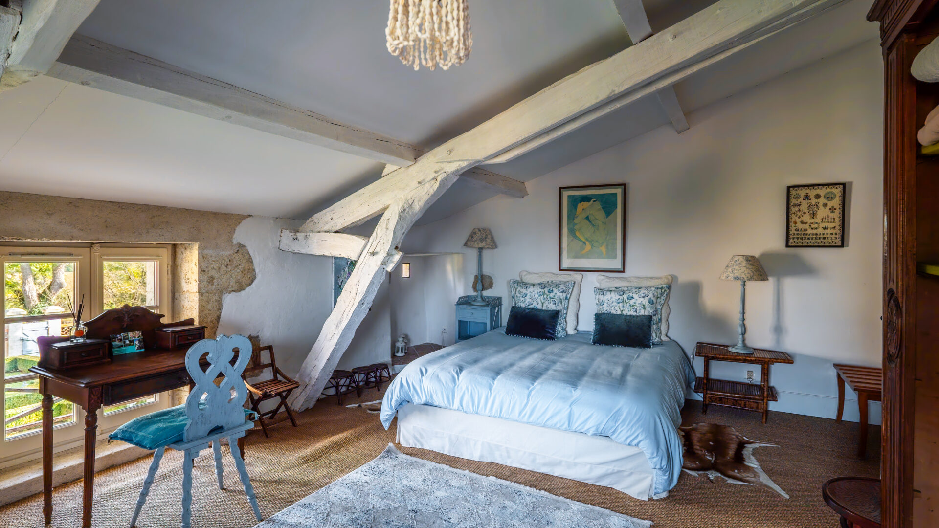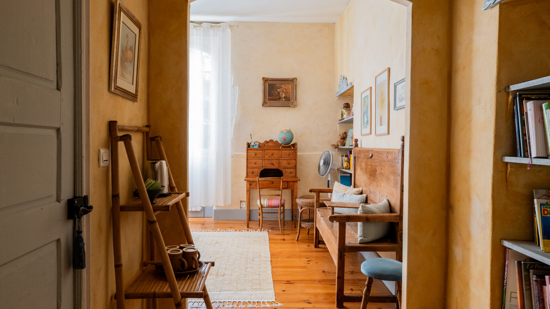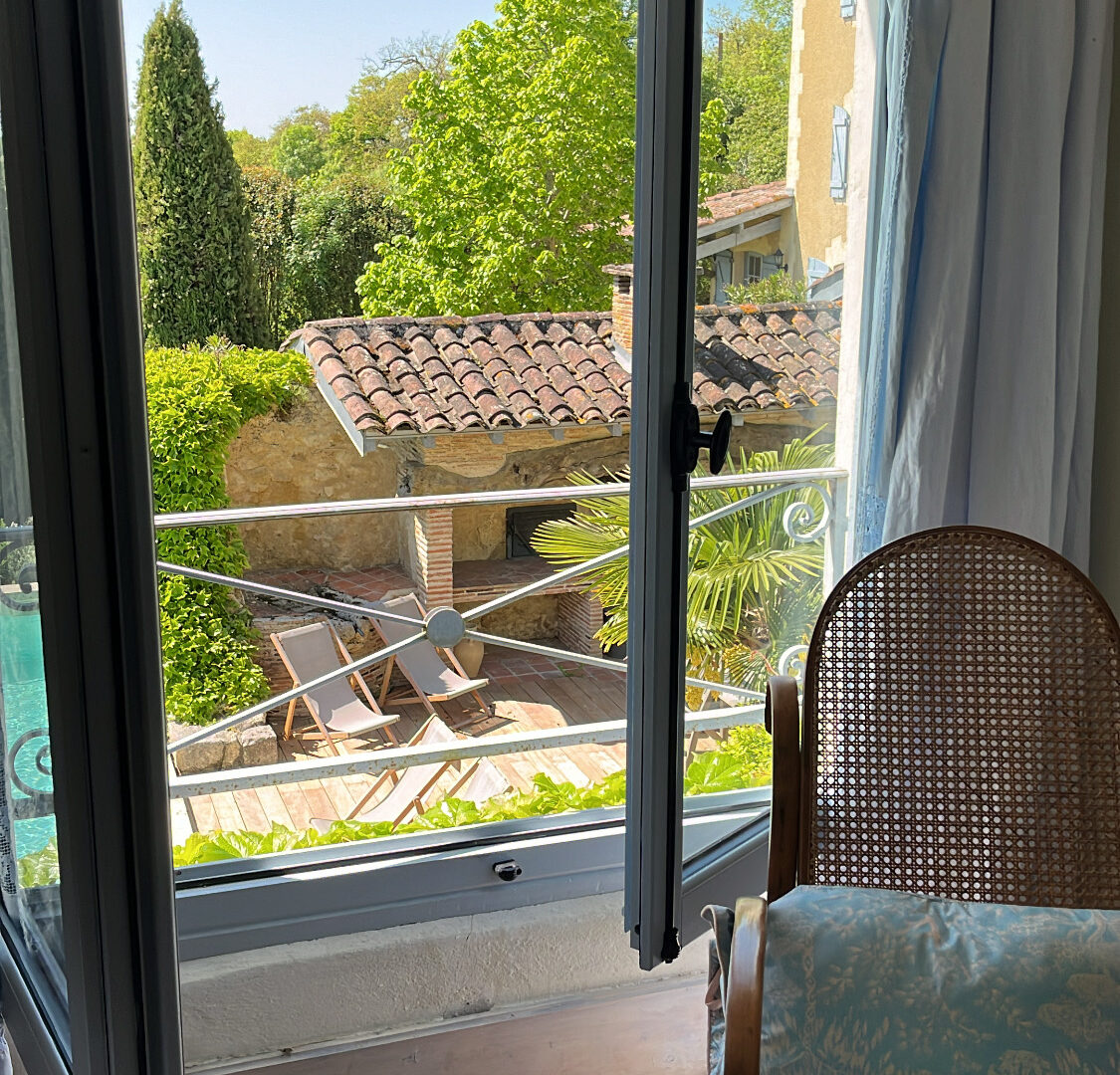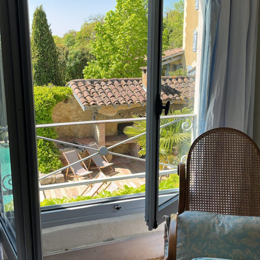 - das Haus verfügt über drei individuell gestaltete Zimmer: das Chambre Jaune für 2 Personen im Erdgeschoss mit Duschbad, hohen Decken und Schreibtisch, Chambre Bleue im Obergeschoss mit Bad, Schreibtisch und Blick auf den Pool, sowie Chambre Triple, ein Dreibettzimmer im Obergeschoss mit Doppel- und Einzelbett, Arbeitsplatz und Blick in den Garten