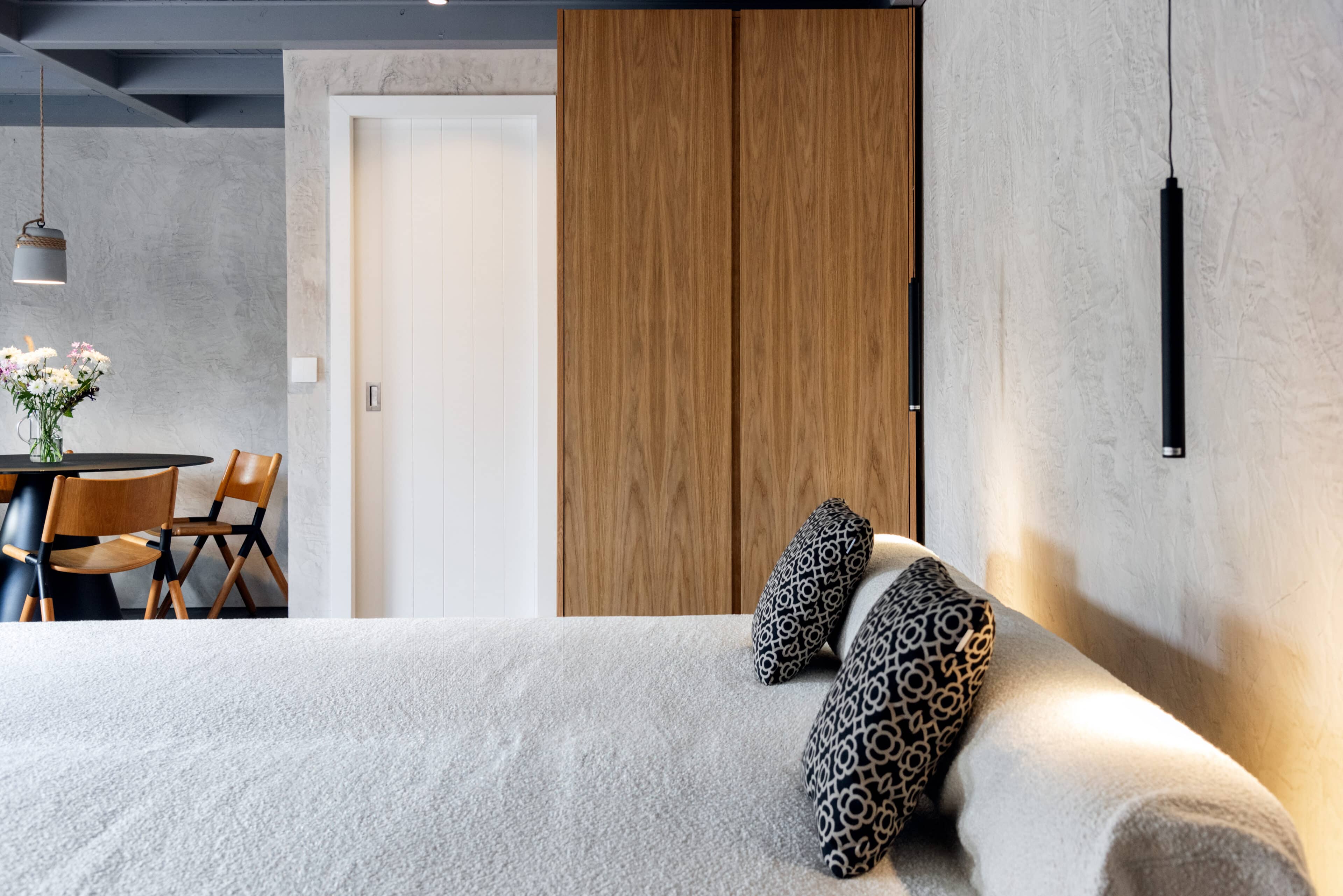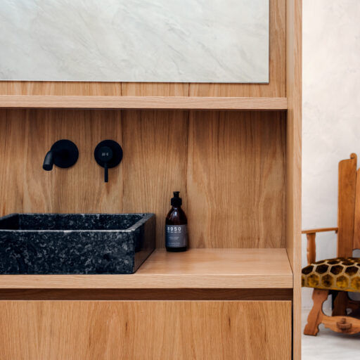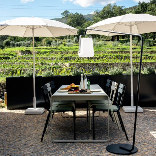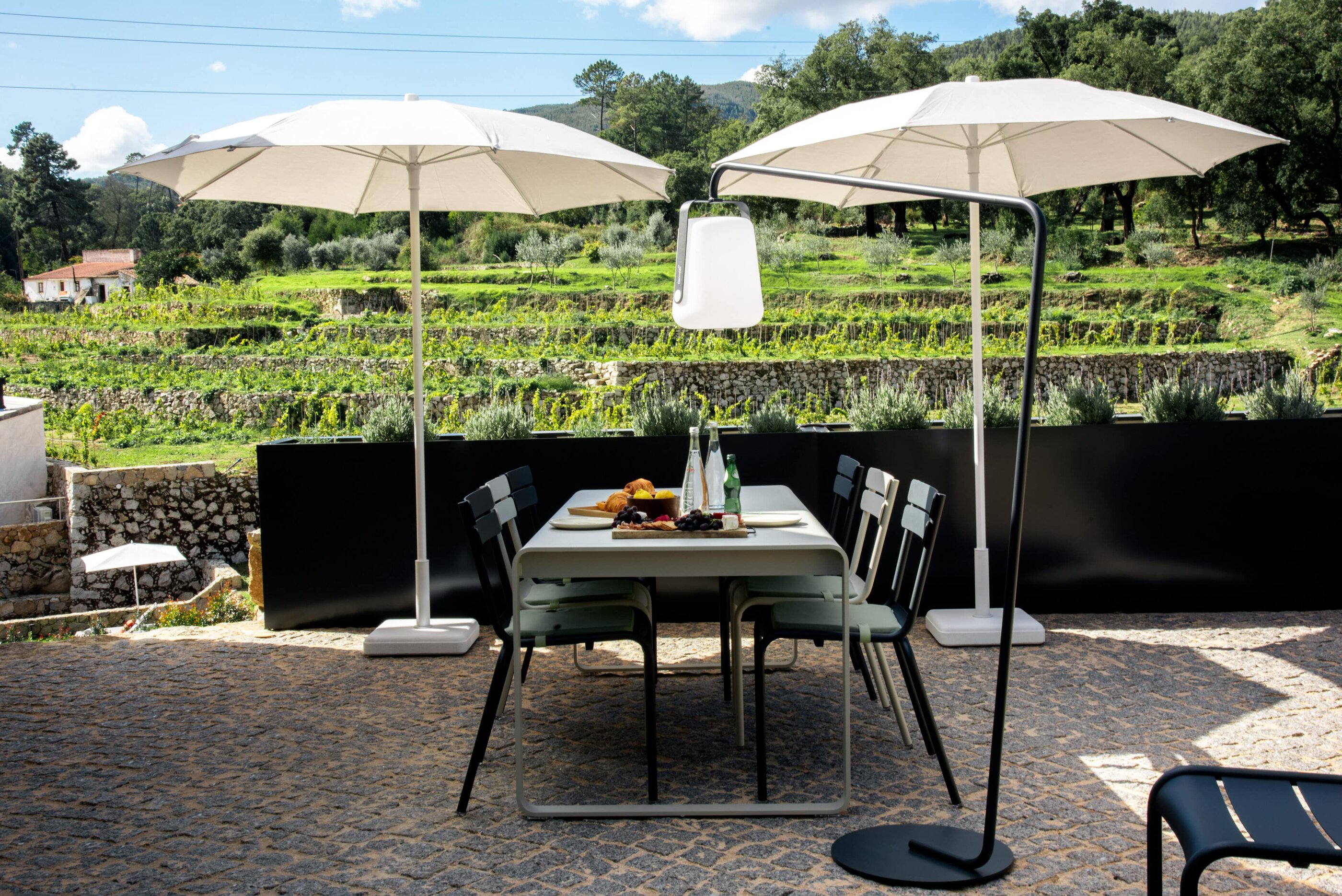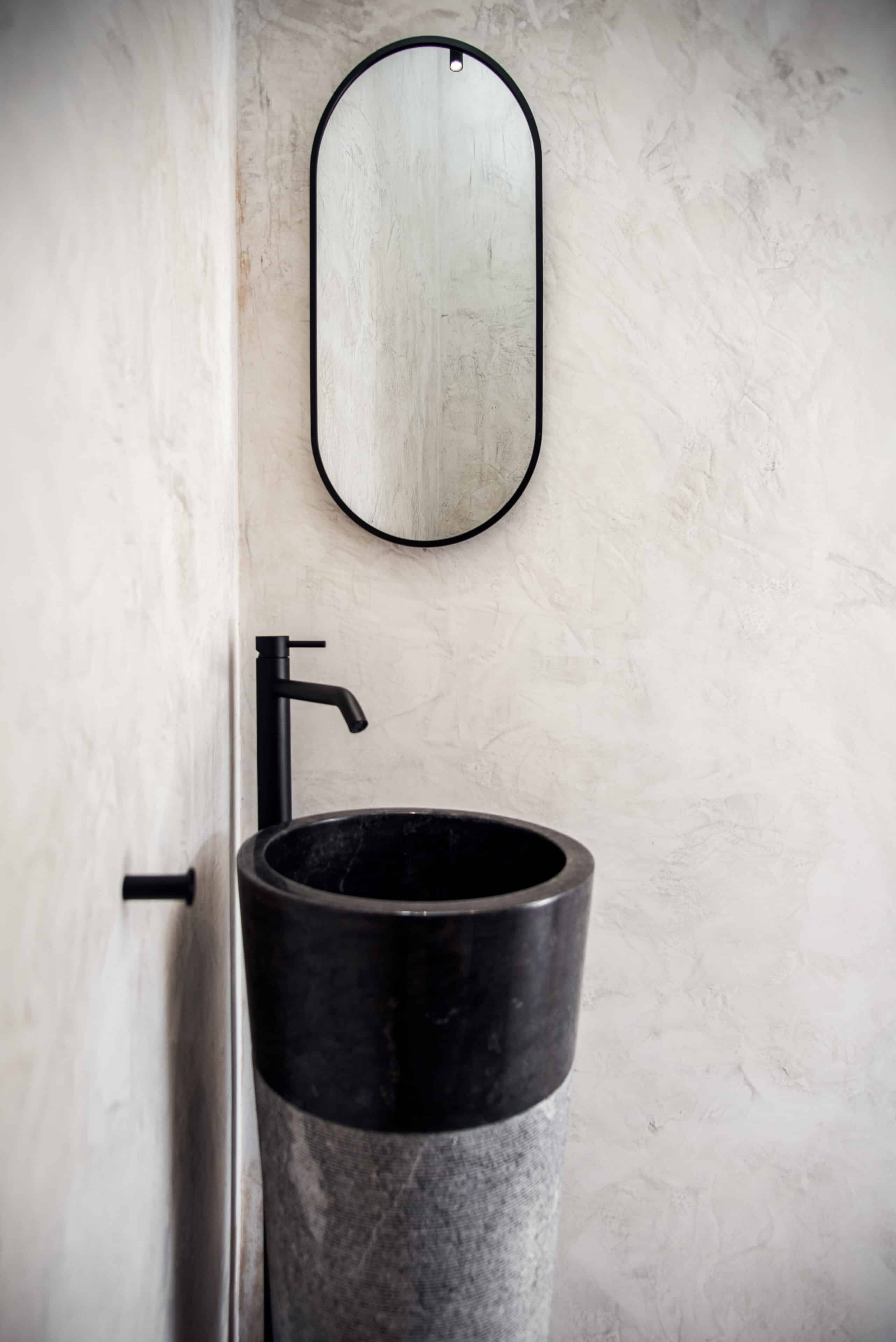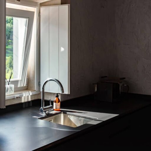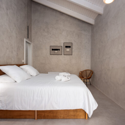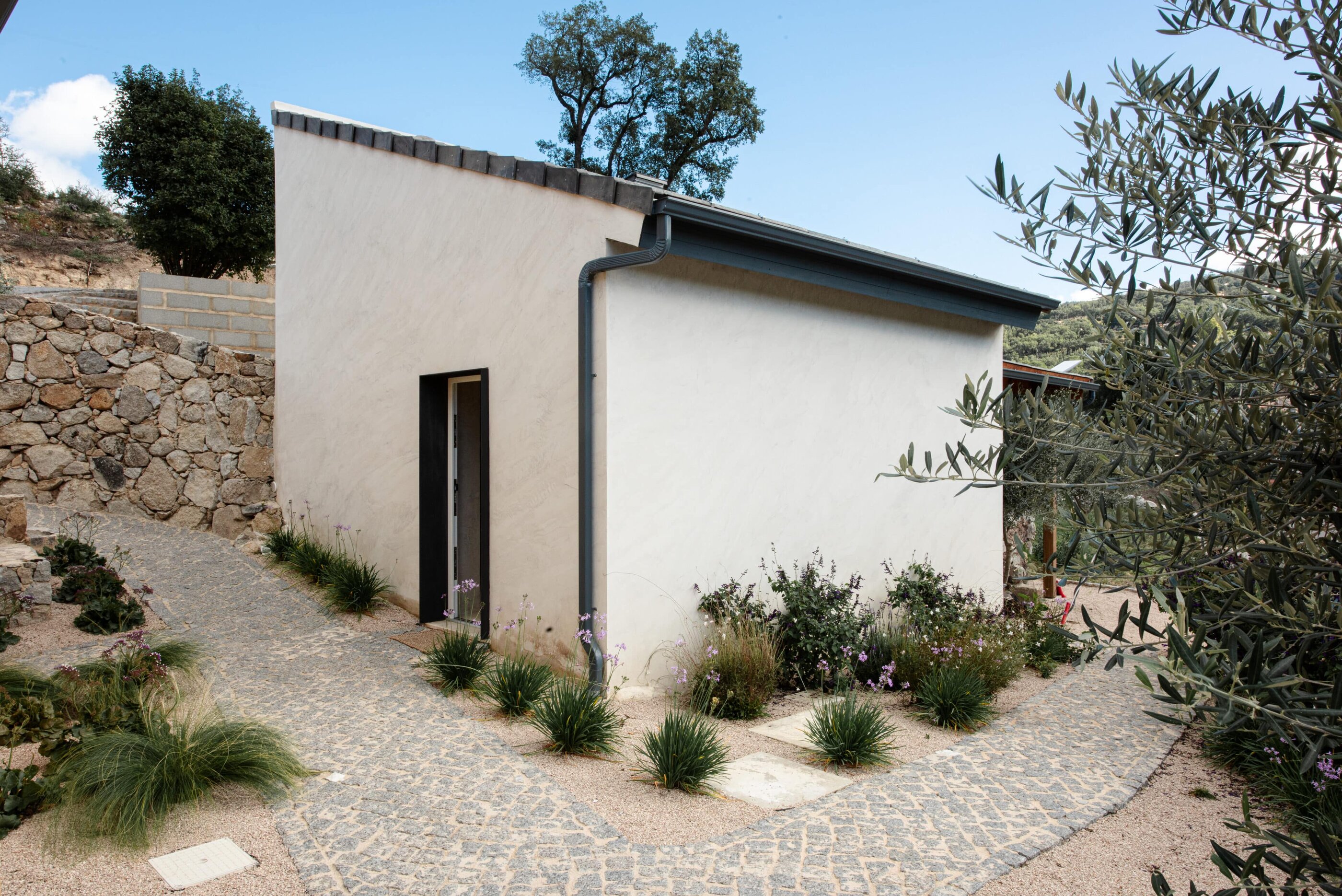 Wenn wir uns dem Landgut im ruhigen Bergland der Algarve nähern, fallen zuerst die von Steinmauern eingerahmten Terrassen ins Auge. Weinreben wachsen hier, Oliven- und Mandarinenbäume. Von einer Anhöhe überblicken drei Ferienhäuser mit historischem Charme die Umgebung. Als Herman und Angela, ein niederländisch-brasilianisches Paar, das Land im Jahr 2021 erwarben, befanden sich darauf nur Ruinen. Nach und nach bauten sie den alten Hof zu einem Rückzugsort für Feriengäste um. The Yellow House besteht aus drei separaten Gebäuden und eignet sich für all jene, die gern zusammen reisen, aber auch Wert auf Freiraum legen. Das aus rauem Stein gebaute The Granite House verfügt über einen Obst- und Kräutergarten, in dem auch die seltene Apfelsorte Pera de Monchique gedeiht. Von der früheren Backstube, heute The Baker’s Cottage, blickt man auf Picota, den zweithöchsten Gipfel der Algarve. Die Gastgeber lieben Vintage-Stücke und sind überzeugt, dass sie einem Raum Seele verleihen. Da können wir nur zustimmen. Besonders, wenn sie so gekonnt mit minimalistischem Luxus kombiniert werden wie hier: mit mattschwarzen Aluminiumküchen, kalkverputzten Wänden – und duftenden Blumen aus dem Garten.