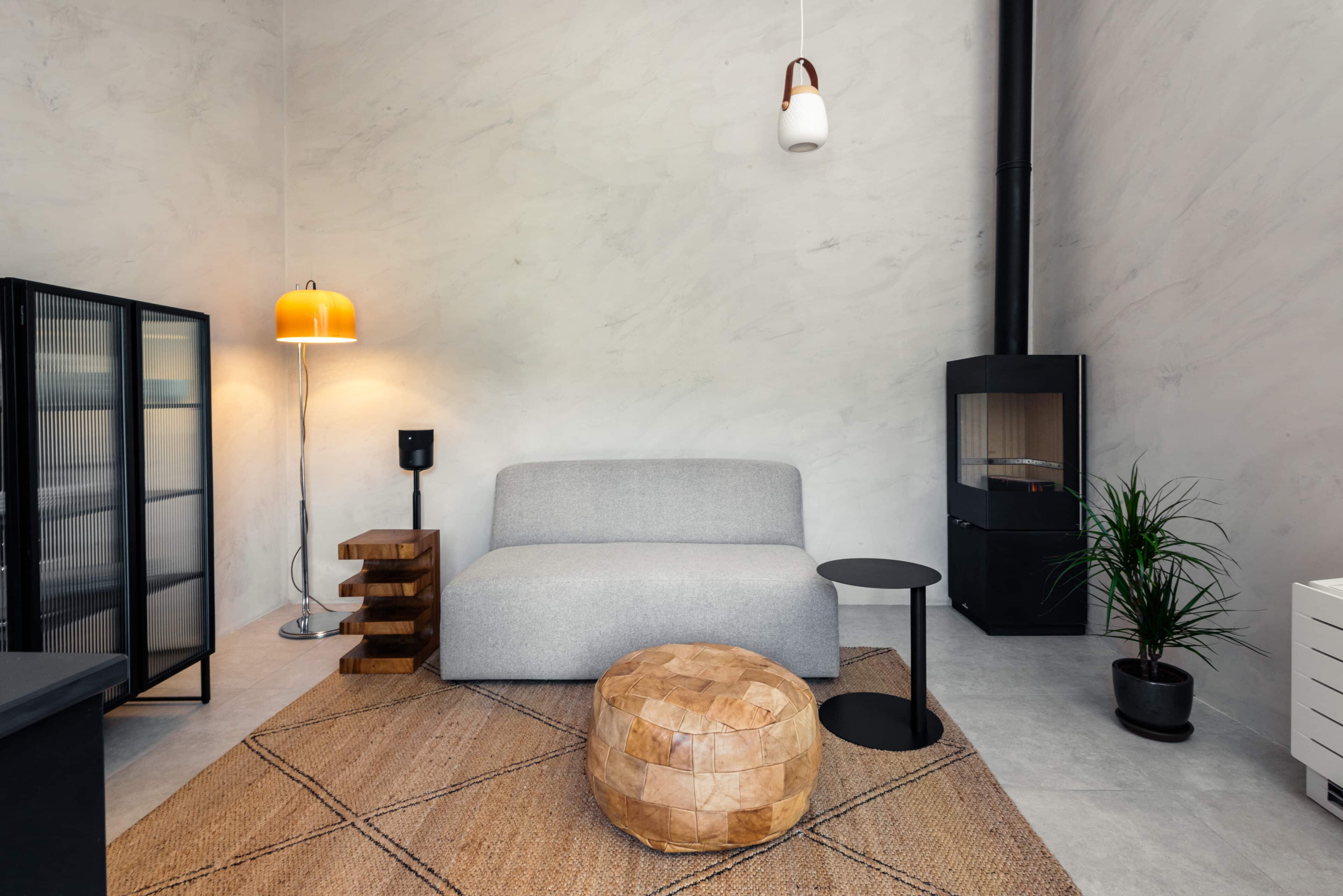 - die tollen Vintage-Möbel, wie das riesige „Strips”-Lounge-Sofa von Cini Boeri im The Yellow House. Im The Granite House verschönert das Relax-Sofa „The Rock“ von Gerard van den Berg den Raum, in The Baker’s Cottage eine Stehlampe von Luigi Massoni