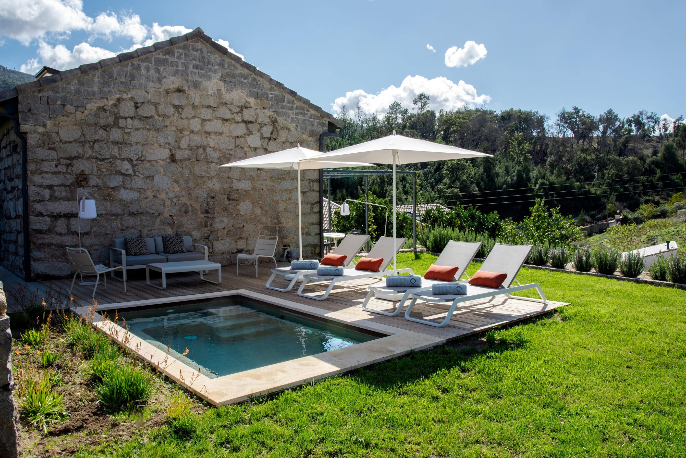- dass zu jeder Einheit ein Mini-Pool gehört, entstanden aus historischen Bewässerungstanks, einer davon wird sogar aus einer Quelle mit frischem Bergwasser gespeist