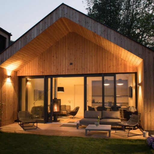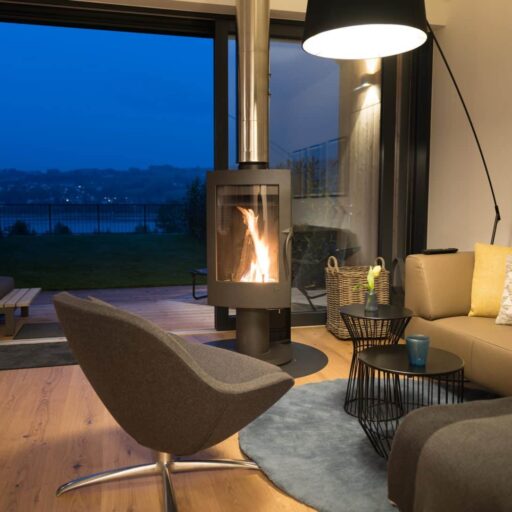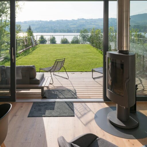 - der schicke Kaminofen ist drehbar – so kann man es auch bei kälterem Wetter gut auf der Terrasse aushalten…
