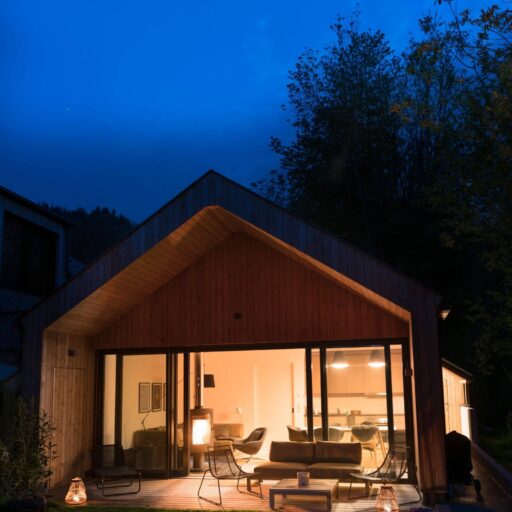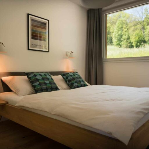 Seeleben – das sollte man ruhig wörtlich nehmen in diesem wunderbaren Häuschen am oberösterreichischen Irrsee. Mit direktem Blick auf das ruhig daliegende Gewässer, sitzt man am Morgen, am Mittag oder am Abend auf der Terrasse oder gemütlich im Wohnzimmer und lässt sich beeindrucken von den unterschiedlichen Stimmungen der Natur. Mal glitzert es von der Mittagssonne auf der Wasseroberfläche, mal taucht sich der Horizont in ein rosa-rotes Farbenmeer, mal pustet der Morgenwind sacht leichte Wellen über die Oberfläche des Sees oder leichter Nebel lichtet sich. Hier lässt es sich gut aushalten – ein perfekter Ort sowohl im Sommer als auch im Winter. Wandern, Radfahren, Schwimmen oder einfach entspannen, das ist hier alles möglich. Brigitte Reisch-Raich hat das Schmuckstück liebevoll und modern eingerichtet. Das kleine Häuschen hat alles, was man braucht, um richtig abzuschalten, sogar eine kleine Außensauna und einen privaten Badeplatz! Übrigens: der Irrsee ist der „kleine Bruder“ vom Fuschl-, Atter- und Mondsee im Salzkammergut. Weil er in einer Moorlandschaft liegt, relativ windgeschützt und klein ist, wird er im Sommer schnell warm und friert im Winter schnell zu. Das machst du super, kleiner Bruder! Im Sommer besuchen wir dich mit Bikini und Badehose, im Winter bringen wir Schlittschuhe mit, ok?