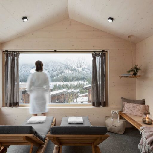 - die Zirbenholz-Sauna steht allen Gästen zur Verfügung. Hier lässt sich nach einem Tag voller Bergabenteuer ganz wunderbar entspannen. Wer’s noch exklusiver mag, bucht ganz einfach ein Bergschau’n-Appartement mit privater Panorama-Sauna, Ruheraum und herrlichem Ausblick auf die umliegenden Berge