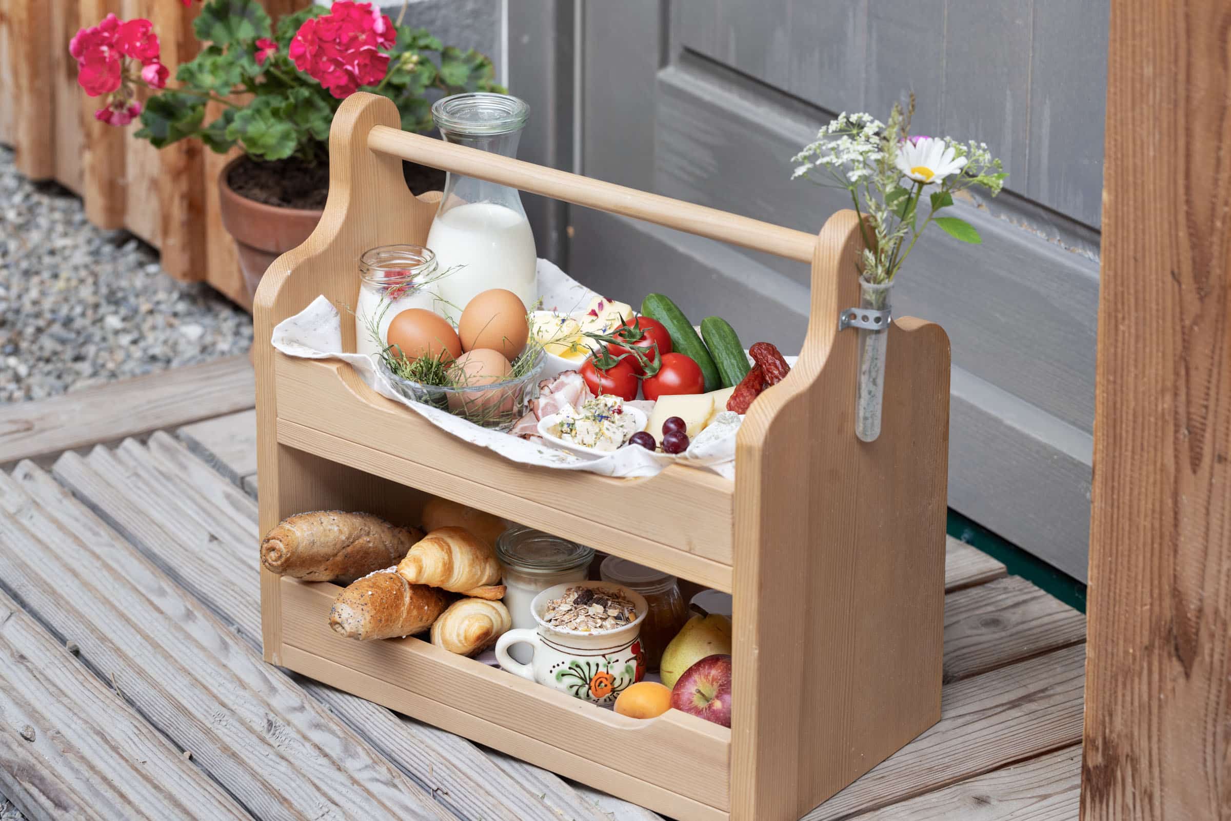 - in den top ausgestatteten Ferienwohnungen entscheidet jeder Gast selbst, wie er sich versorgen möchte. Auf Wunsch richtet Familie Slodnjak Frühstück oder Jause für die Bergtour. Es gibt einen Brötchenservice und im kleinen Lädchen lokale und slowenische Lebensmittel