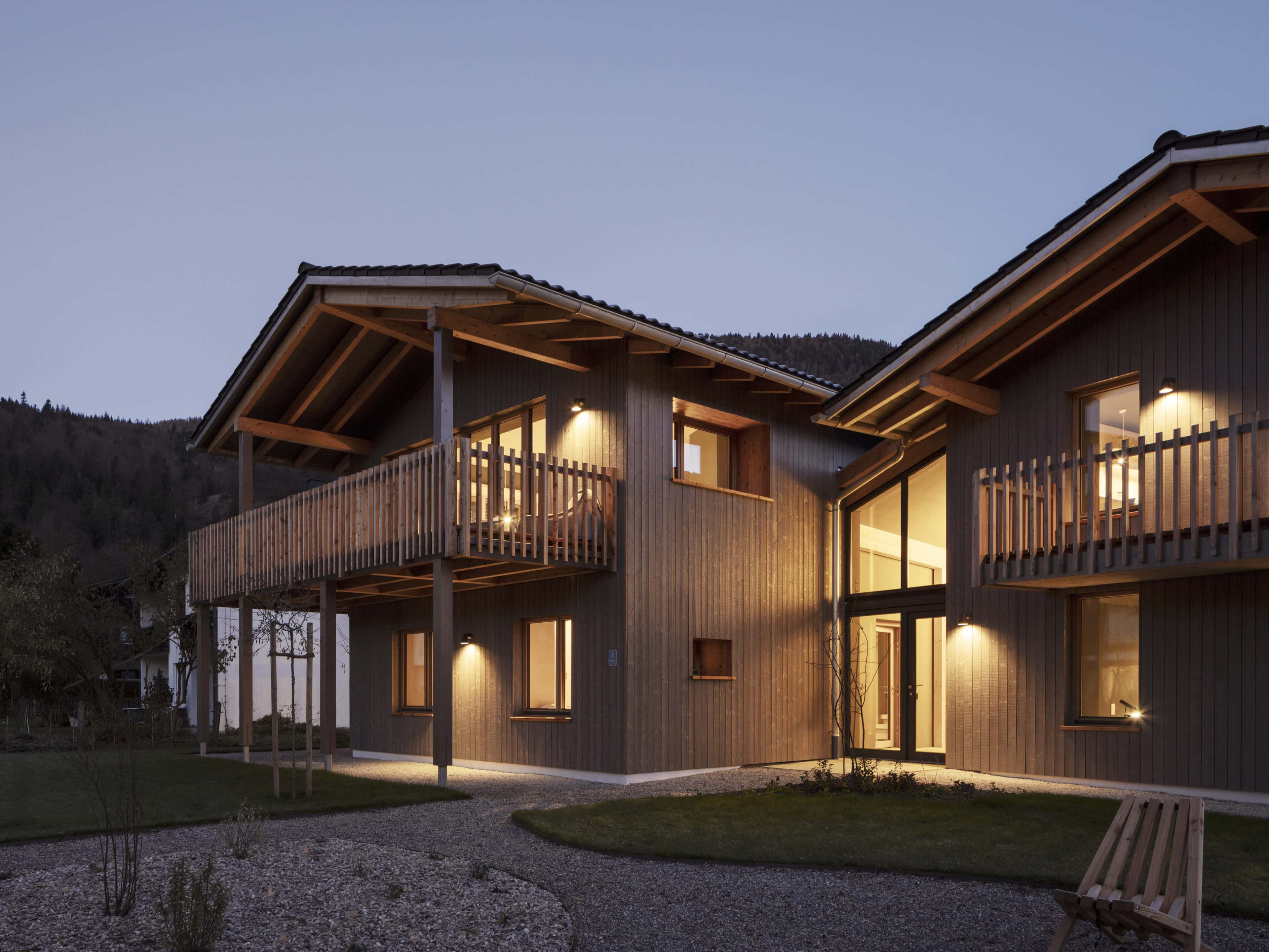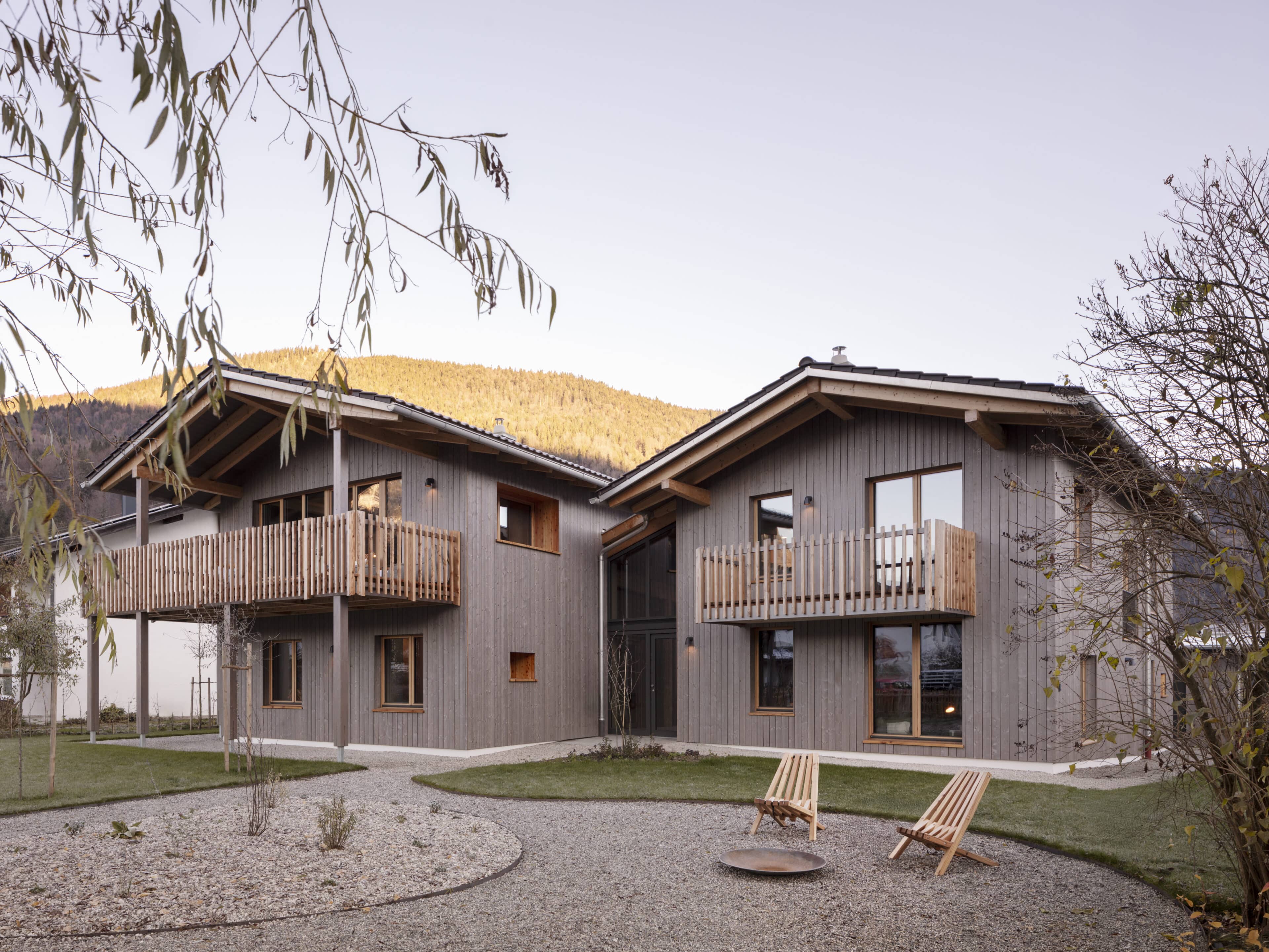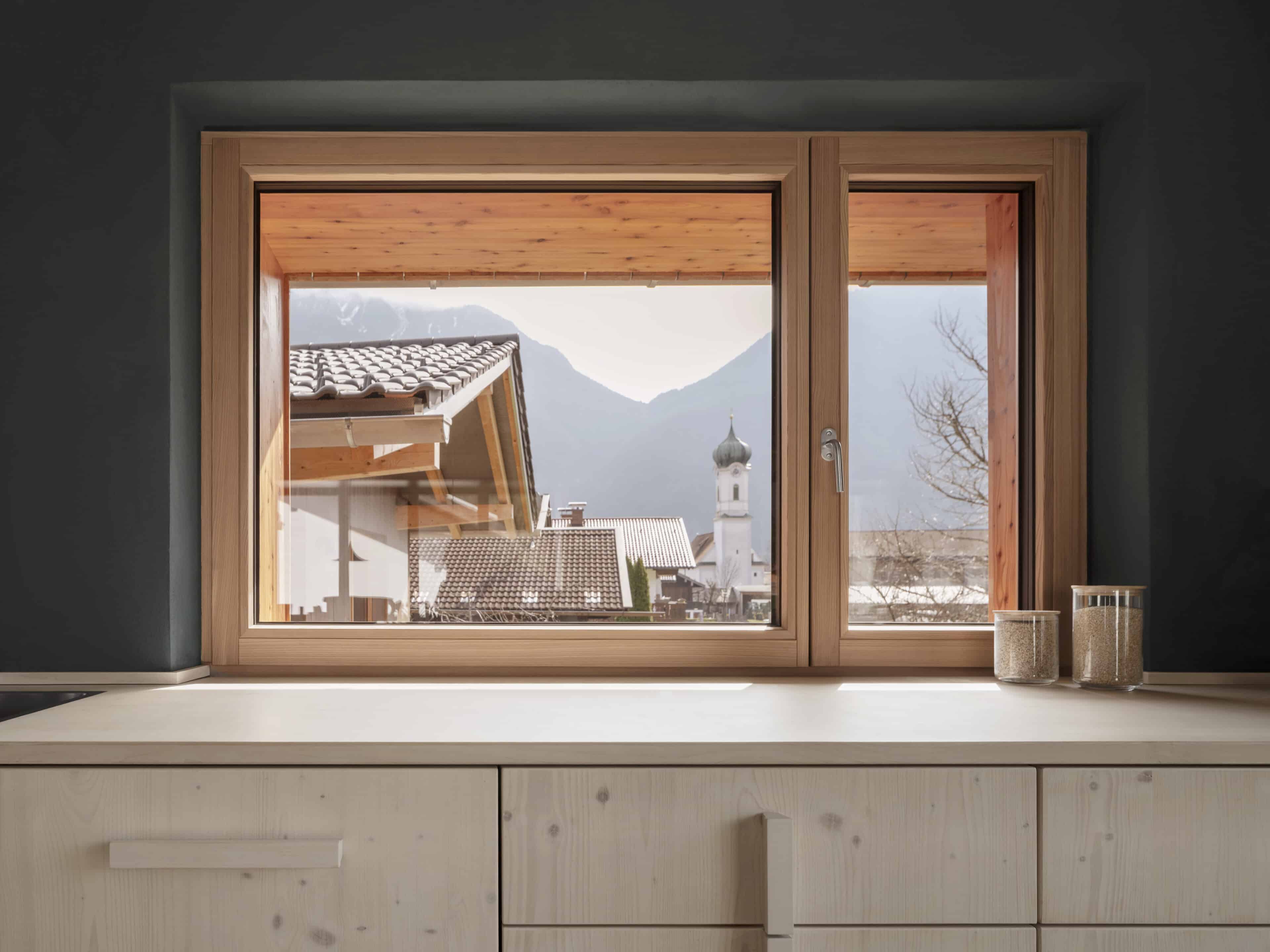 - damit man von allen Räumen einen schönen Blick auf die Alpenkette hat, wurden die Häuser gezielt „um den Bergblick herum“ geplant – mit tiefen Sitzfenstern, um die Aussicht zu genießen