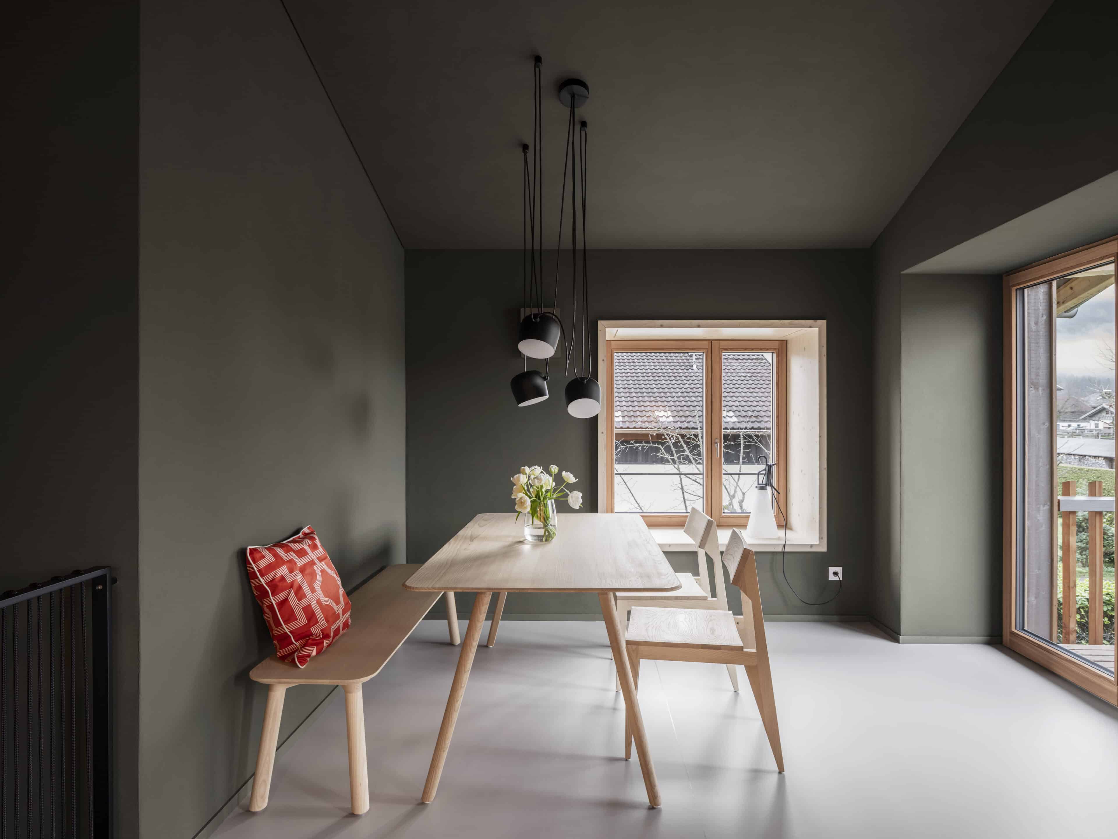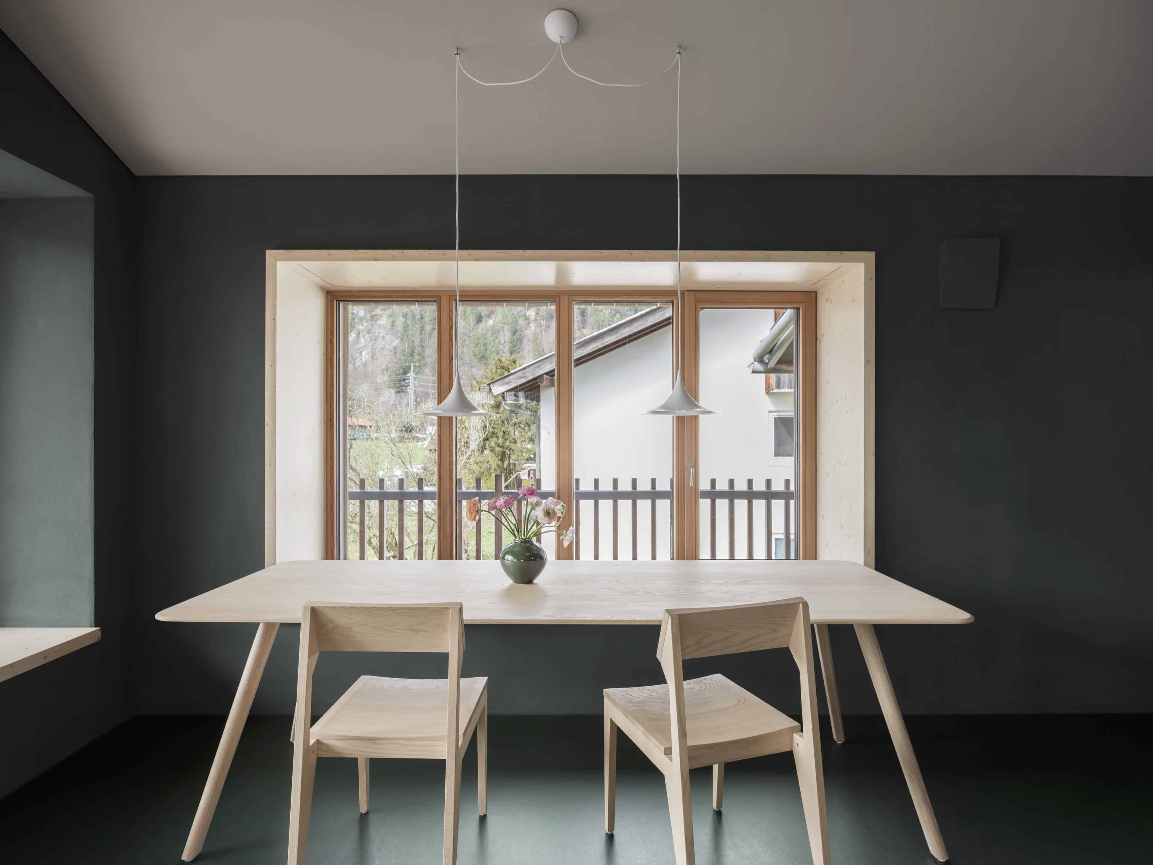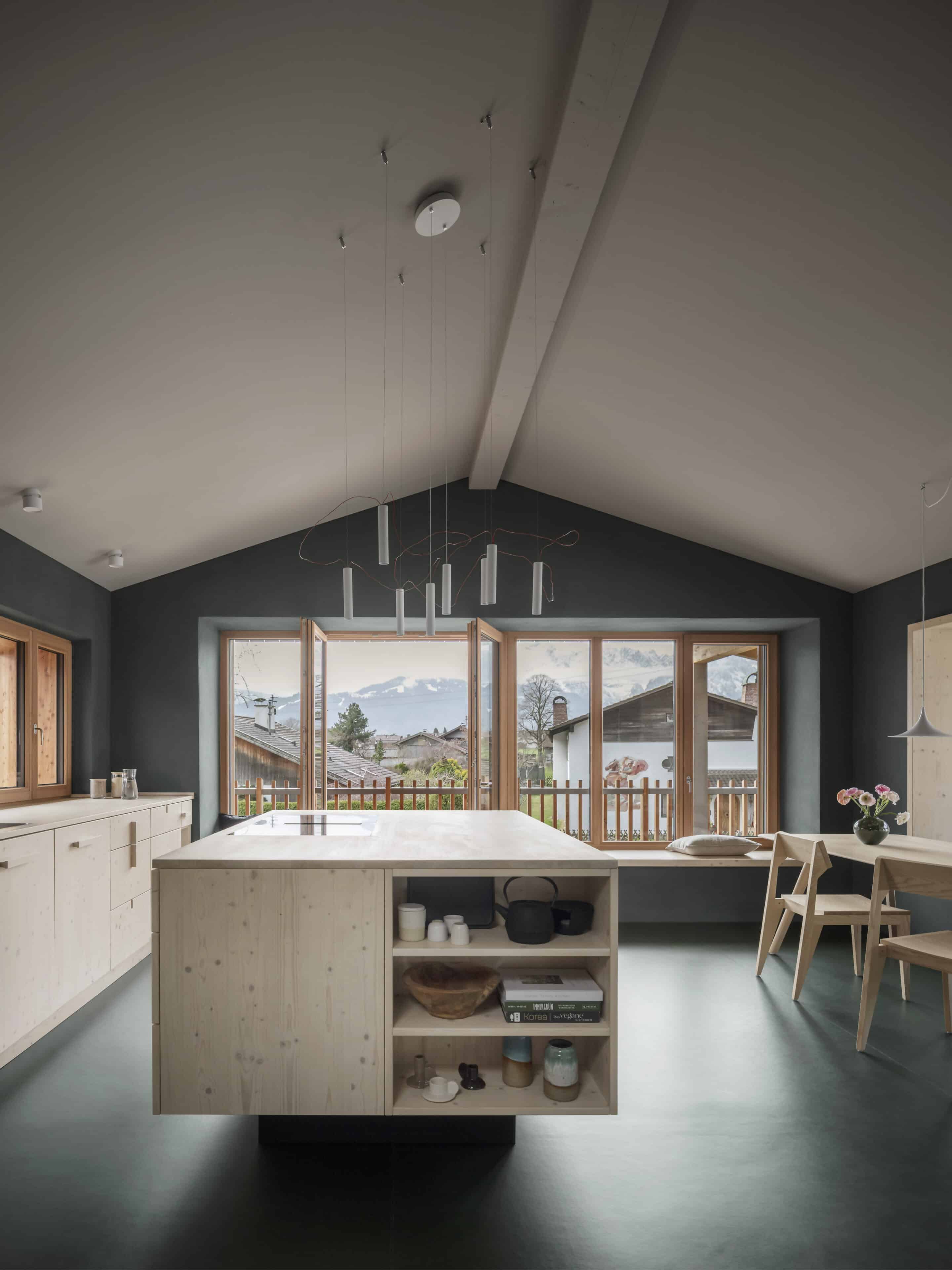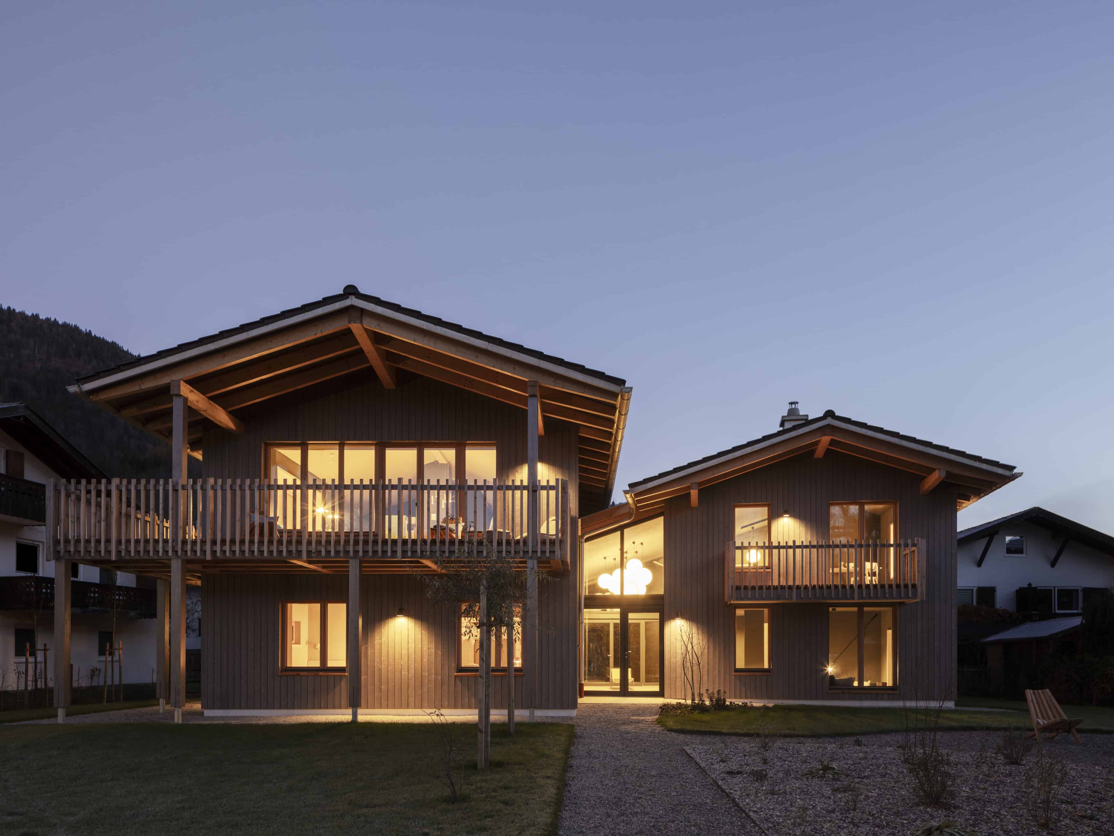 - damit man von allen Räumen einen schönen Blick auf die Alpenkette hat, wurden die Häuser gezielt „um den Bergblick herum“ geplant – mit tiefen Sitzfenstern, um die Aussicht zu genießen