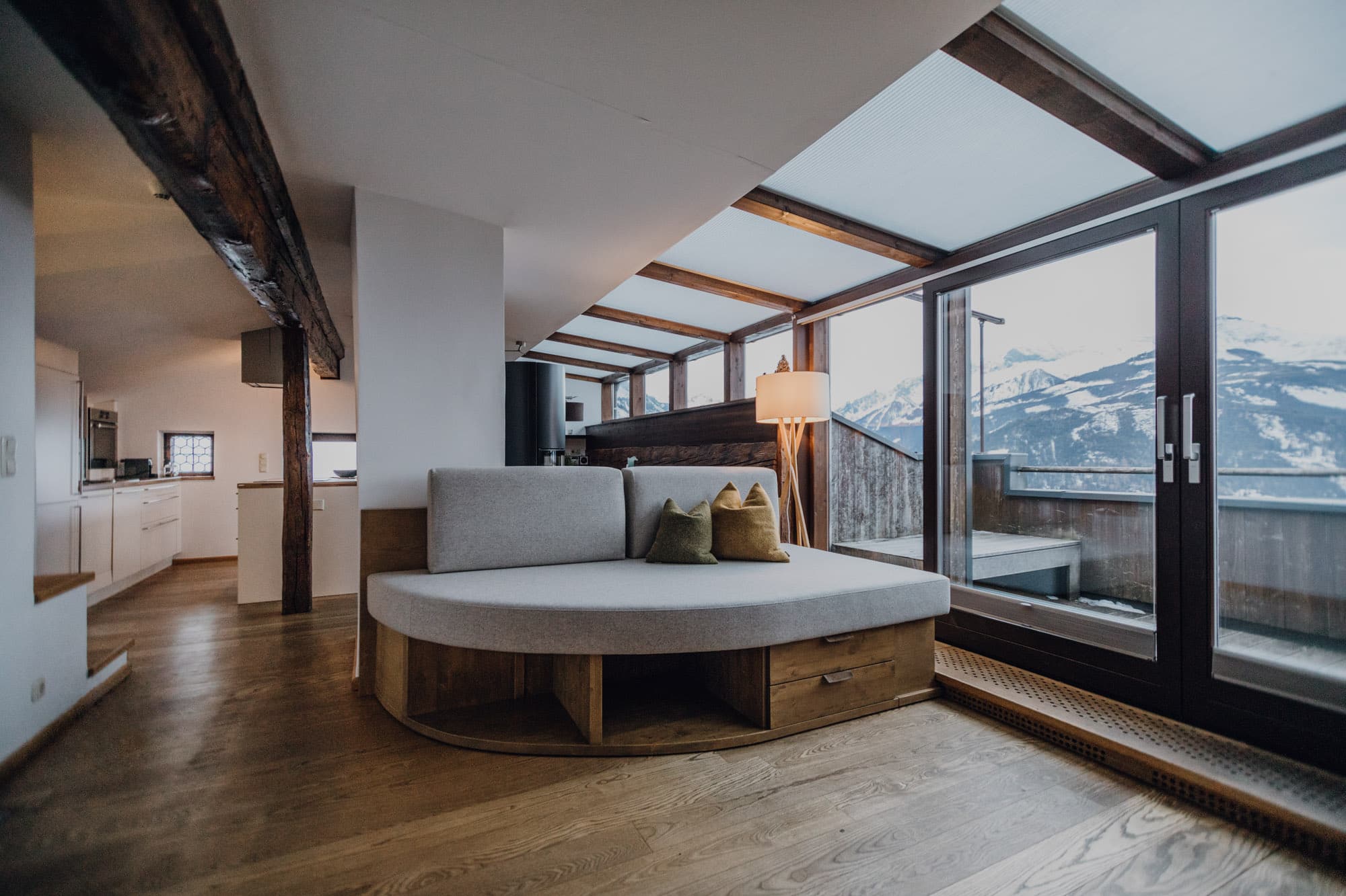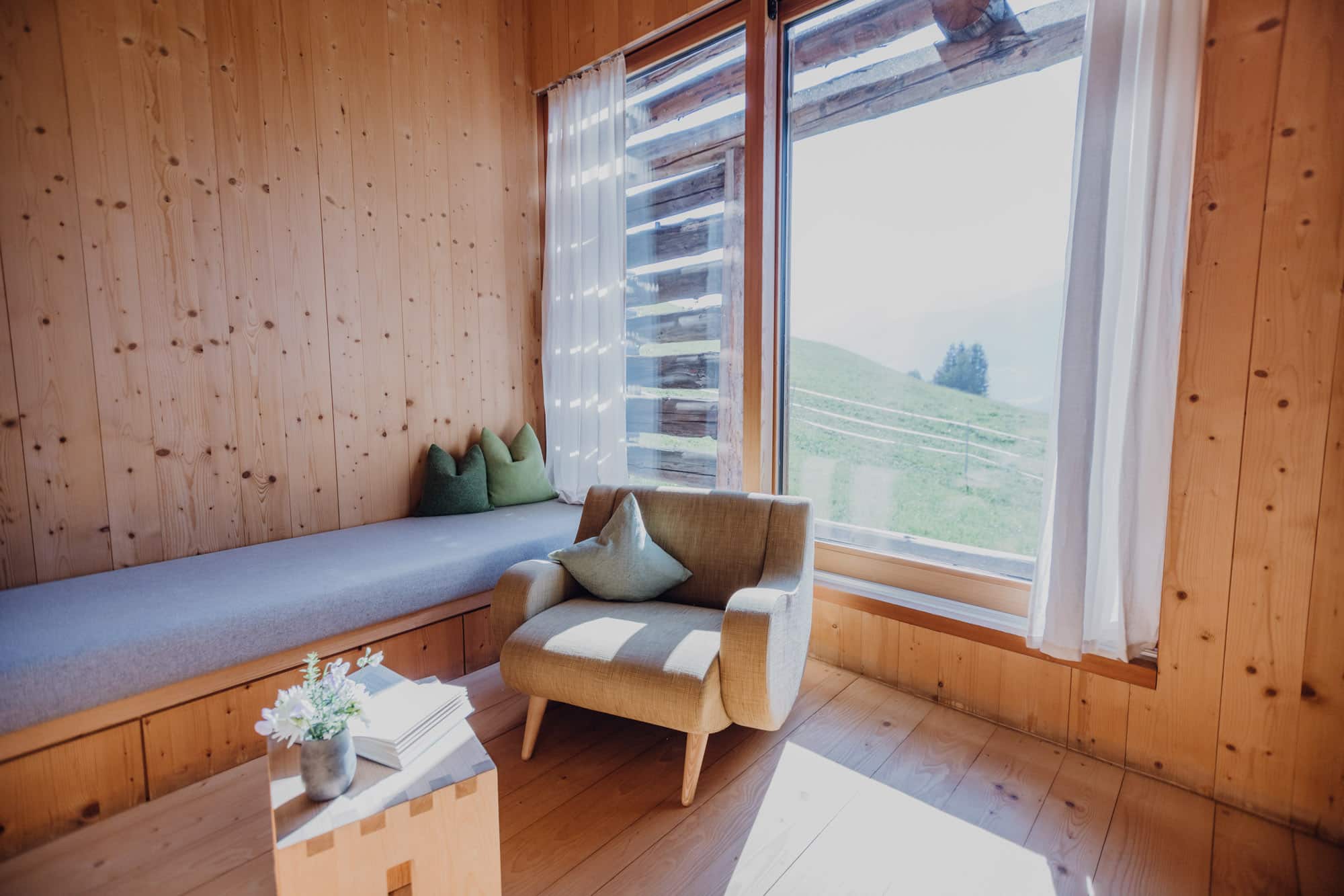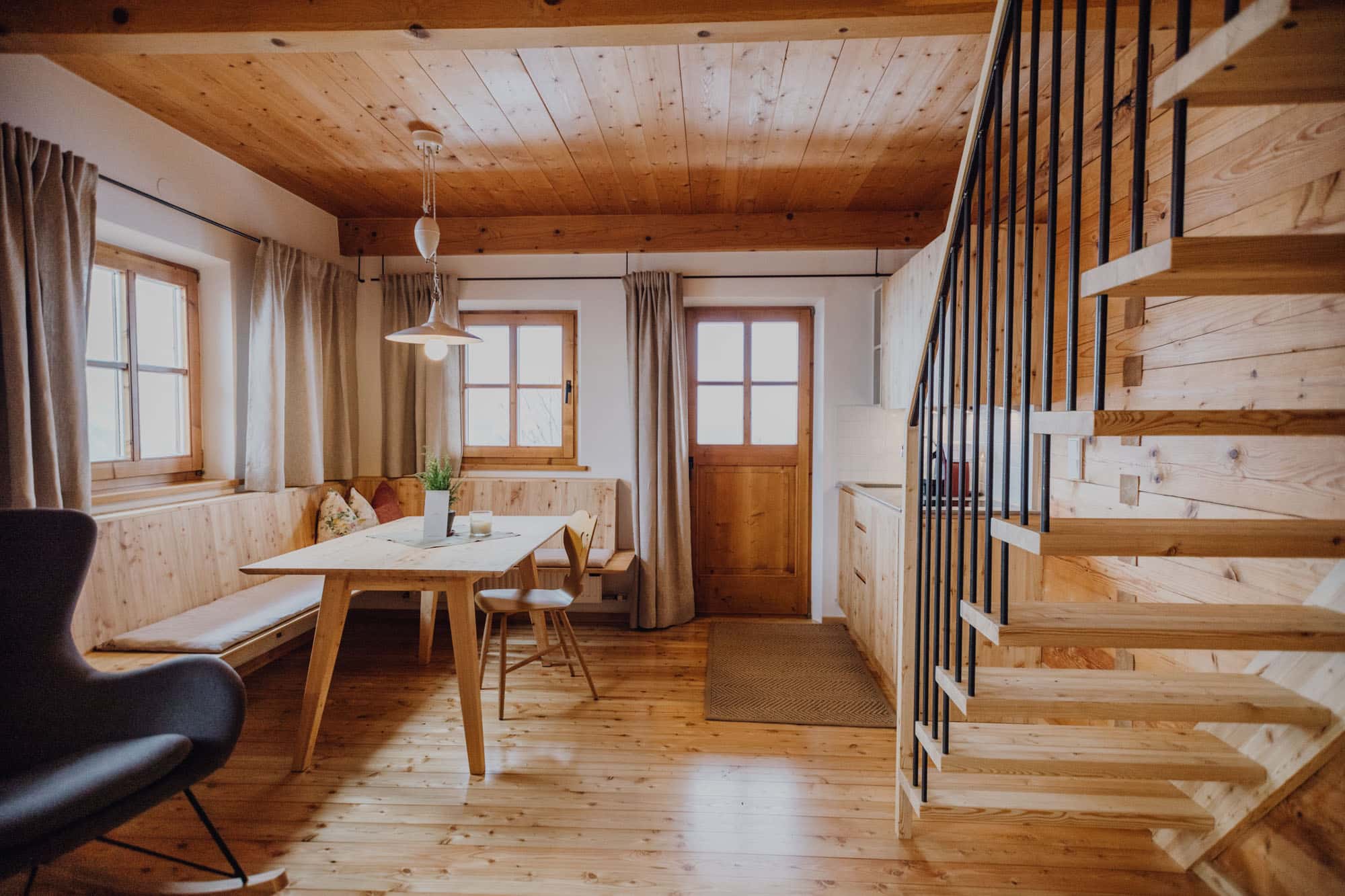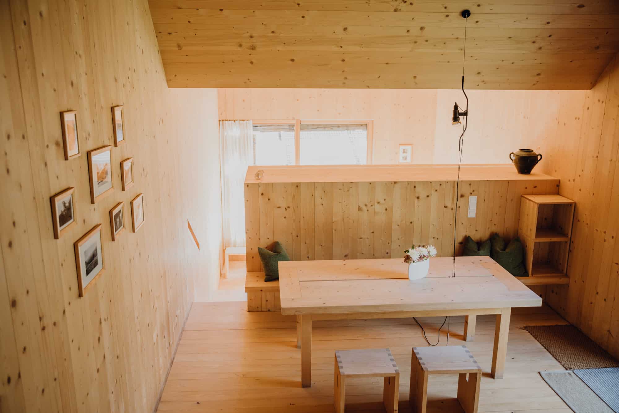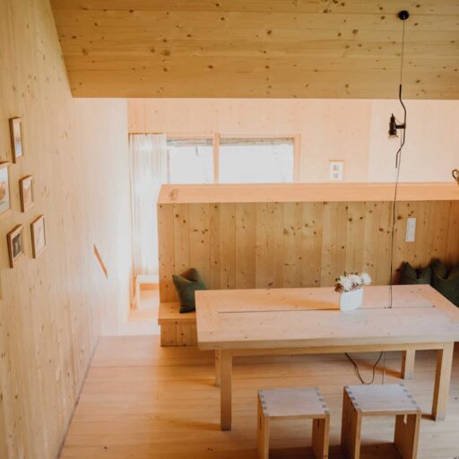 - ein unglaubliches Raumerlebnis erwartet die Gäste im Heustodl: von außen wirkt das Haus wie drei traditionelle Scheunen, im Inneren entpuppt es sich als einzelner großer, durchgängiger Raum aus duftendem Fichtenholz. Dazu kommt der Ausblick auf das Bergpanorama des Nationalparks Hohe Tauern!