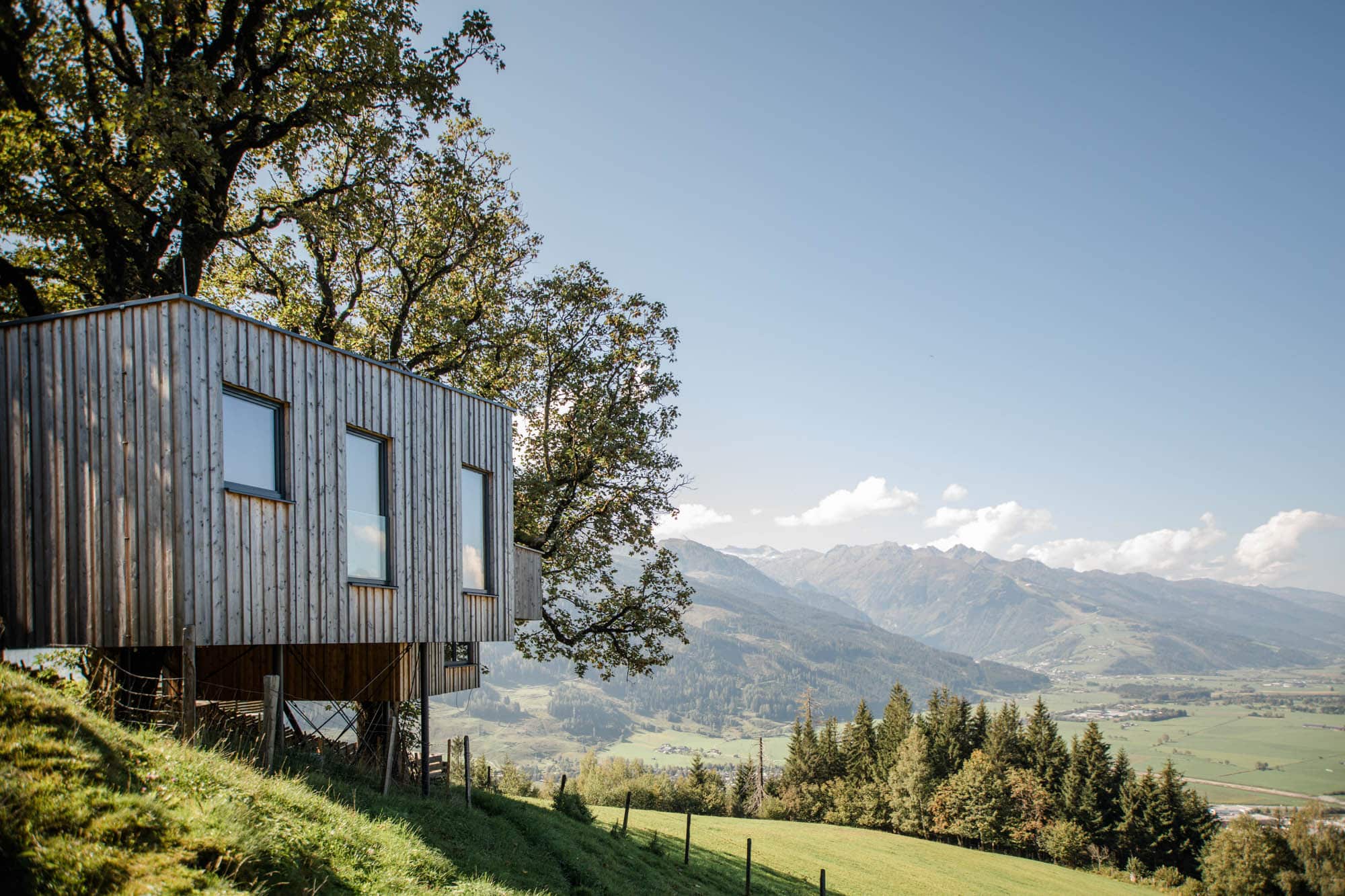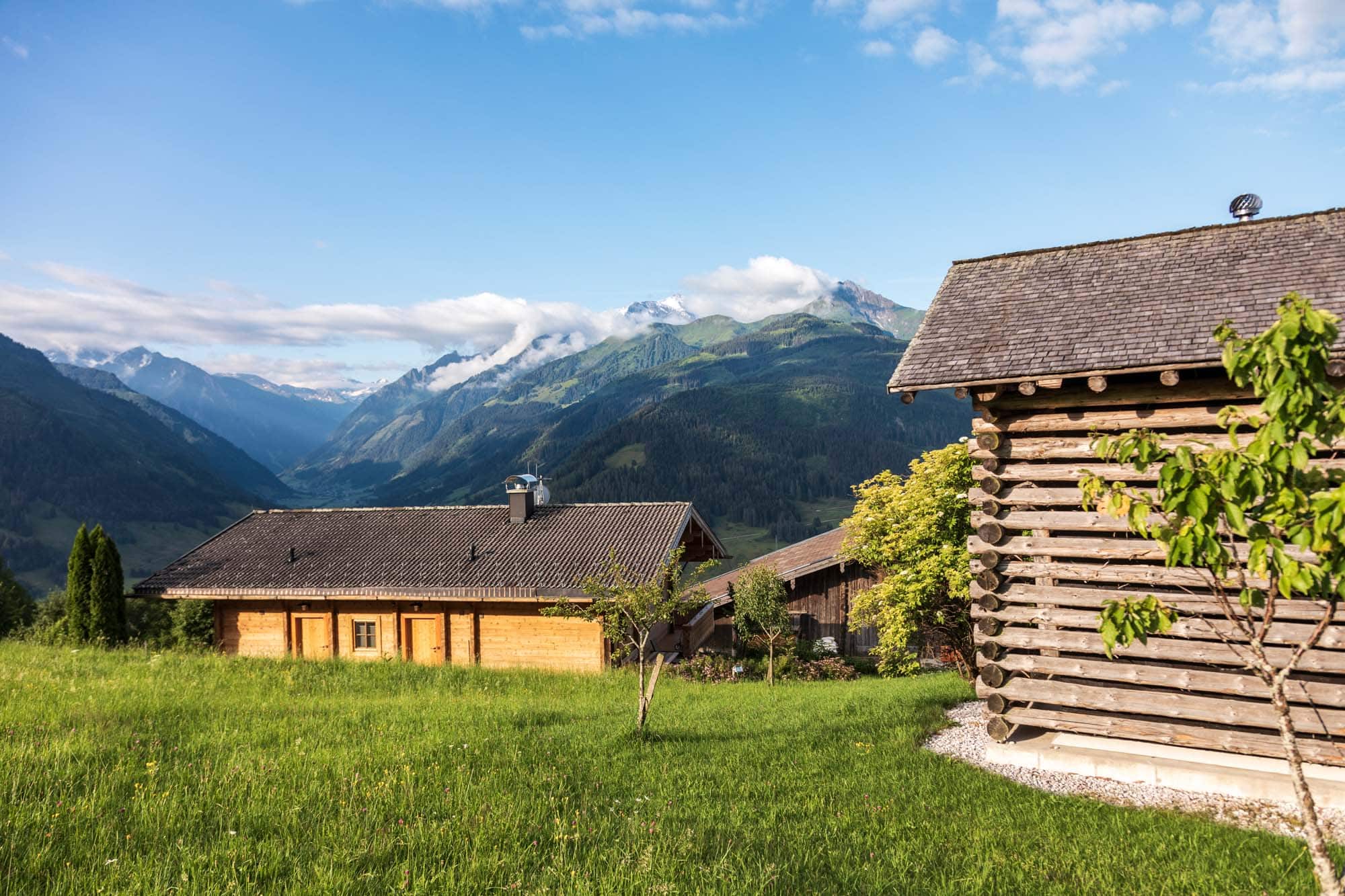 Vor langer, langer Zeit – vor gut 500 Jahren, um genau zu sein – da lag ein wunderschönes Bauerngut inmitten eines malerischen Bergpanoramas im Salzburger Land. Allein das schon klingt wie im Märchen und hat sogar ein Happy End: Denn auch heute liegt dieses Gut noch da, schöner denn je zuvor. Der historische Taxhof in Bruck im österreichischen Pinzgau ist ein echtes Juwel. Seit 1687 wird er von Familie Unterberger bewirtschaftet. 2010 haben die beiden Schwestern Elisabeth und Katharina in 11. Generation (!!!) die Leitung übernommen und begrüßen seitdem jeden Gast höchstpersönlich. Vater Matthias führt die Landwirtschaft und Mutter Berta sorgte mit ihren fantastischen und mehrfach mit Gault-Millau-Hauben ausgezeichneten Kochkünsten dafür, dass der Taxhof auch kulinarisch weit über die Grenzen hinaus bekannt wurde. Wer hier zu Besuch ist, wird unweigerlich ein Teil des eindrucksvollen Ganzen. Gästen stehen sieben außergewöhnliche Chalets zur Verfügung. Sich zu entscheiden, fällt wirklich schwer … Jedes der Häuser hat seinen ganz eigenen Charme und besticht doch mit einer wohlbedachten Kombi aus Modernität und Tradition. Natürliche Materialien und Farben aus der Natur geben den Ton an, fügen sich exzellent in die Umgebung ein und schenken den 46–90 Quadratmetern ein authentisches Bauernhofflair. Ein besonderes Erlebnis ist der Aufenthalt in der 2016 errichteten Baumhaus-Suite, die zwischen zwei mächtigen 300 Jahre alten Ahornbäumen auf drei Metern Höhe liegt. Die großen Panoramafenster lassen die umliegende Bergwelt direkt ins Wohnzimmer reichen. Dieser grandiose Ausblick gibt einem das Gefühl, tatsächlich eins mit der Natur zu sein und weckt den dringenden Wunsch, hier noch ein bisschen mehr Zeit verbringen zu können …