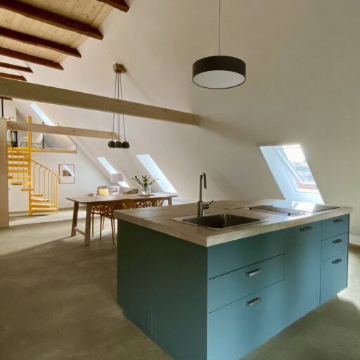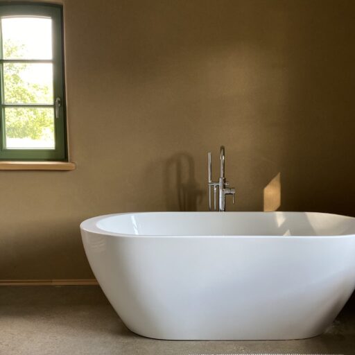 - bei der Sanierung wurde auf Nachhaltigkeit und natürliche Baustoffe geachtet: So sorgen z. B. die Holzfaserdämmung und der Lehmputz für ein gesundes Raumklima; außerdem gibt es eine Solaranlage mit Batteriespeicher, die den Strom für das komplette Haus erzeugt