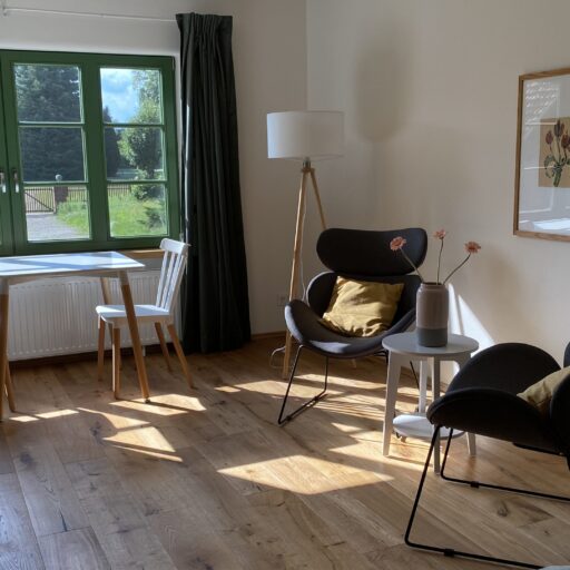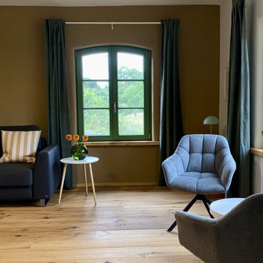 - wo früher mal der Heuboden war oder die Fuhrwerke ausgeladen wurden, kann man sich heute in modern und funktional eingerichteten Wohnungen entspannt zurücklehnen: Alle Unterkünfte haben einen separaten Eingang und sind zwischen 75 und 150 Quadratmeter groß – genug Platz also, um sich’s mit Freunden oder der Familie so richtig gut gehen zu lassen …