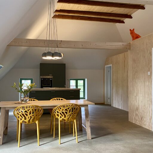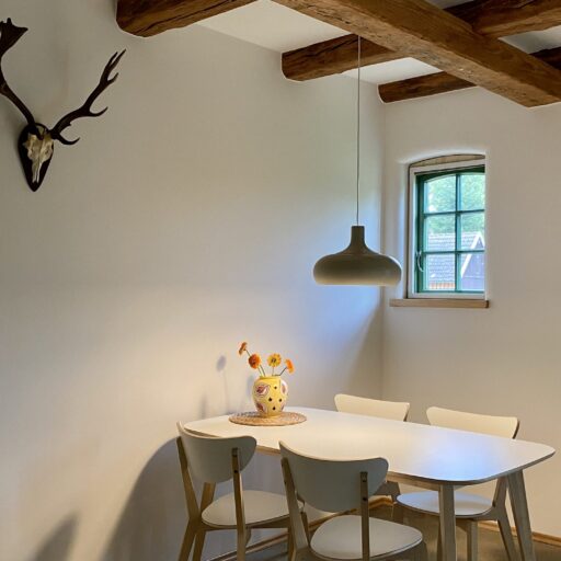 Wenn Landleben, dann genau so wie auf dem Ulmenhof in Bennin! Hier hat man Platz, ganz viel Platz und noch mehr Platz – und was für einen schönen…! Das historische Bauernhaus mit vier traumhaften Ferienwohnungen ist die Einladung zu einer fantastischen Auszeit draußen im Grünen. Der Hof liegt in Westmecklenburg zwischen Schaalsee und Elbtalaue inmitten eines 14.000 Quadratmeter großen Naturparadieses mit Blumenwiesen, Obstbäumen, lauschigen Sitzecken, Grillplatz und einem glasklaren Teich. Hier kann man ganz in Ruhe die Ruhe genießen. Die Wohnungen des Ulmenhofs heißen Alte Liebe, Große Diele, Loft und Spatzennest. Sie klingen keineswegs nur hübsch – nein, sie sind es definitiv auch! Öffnet man die Tür zu diesen liebevoll eingerichteten Unterkünften, ist sofort klar, dass der Abschied nicht leicht wird. Lehmwände, rustikale Holzbalken, Dielen, Kaminöfen, freistehende Badewanne – jede Wohnung überzeugt mit eigenem Charakter. Allen gemein ist der cleane Einrichtungsstil im Skandi-Look. Er wird kombiniert mit alten Fundstücken, die von der Geschichte des Hofs erzählen. Diese schöne Kombination wirkt sehr entspannt und einladend. Wer mit der ganzen Familie kommen möchte – oder den Kollegen – kann das Multifunktionshaus (das „Mufu-Haus“) mit Profiküche, Ess- und Wellnessbereich inklusive Sauna nutzen. Auch hier ist viel Platz zum Kochen, Arbeiten, Quatschen und gemeinsam Zeitverbringen.