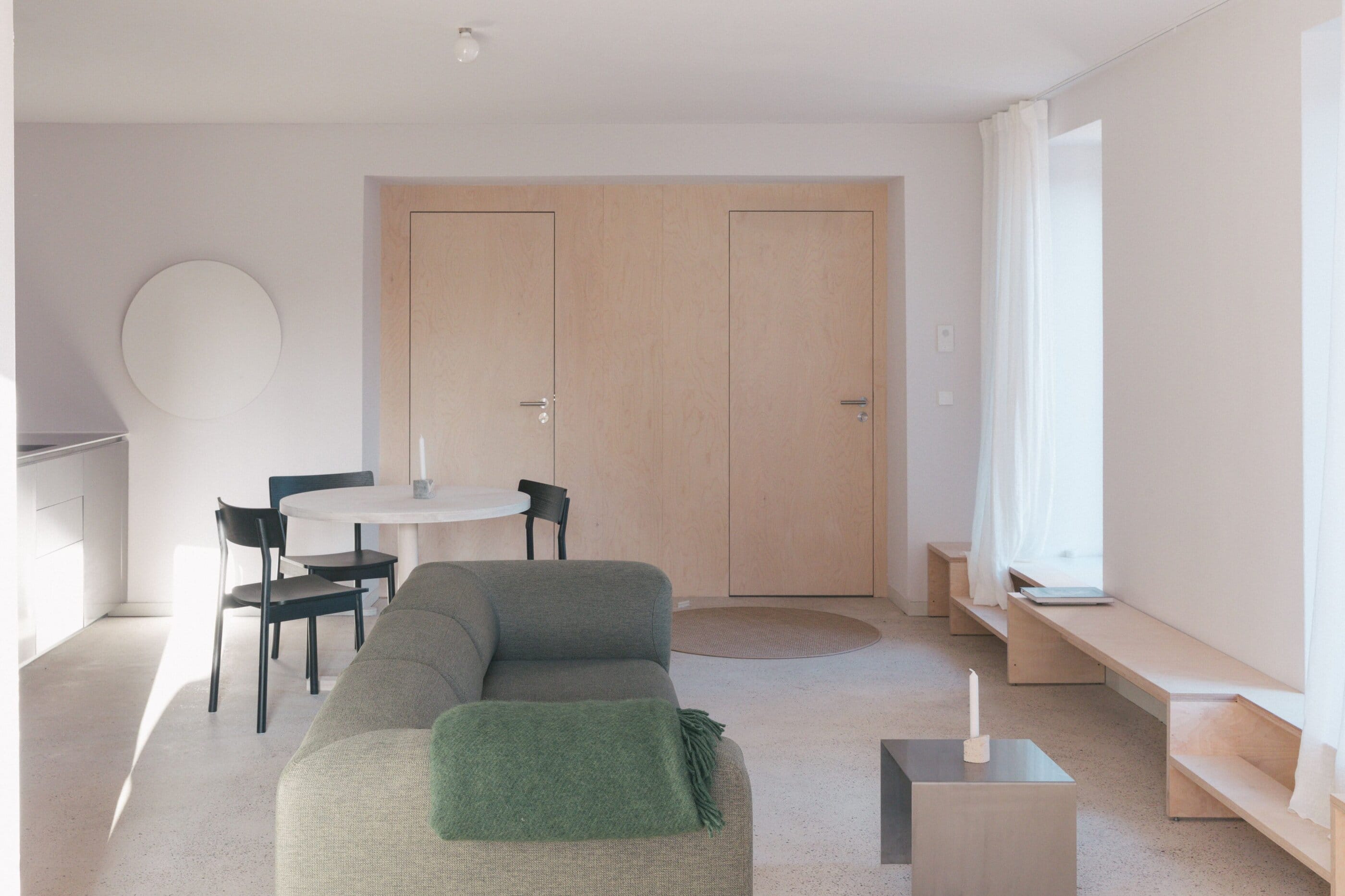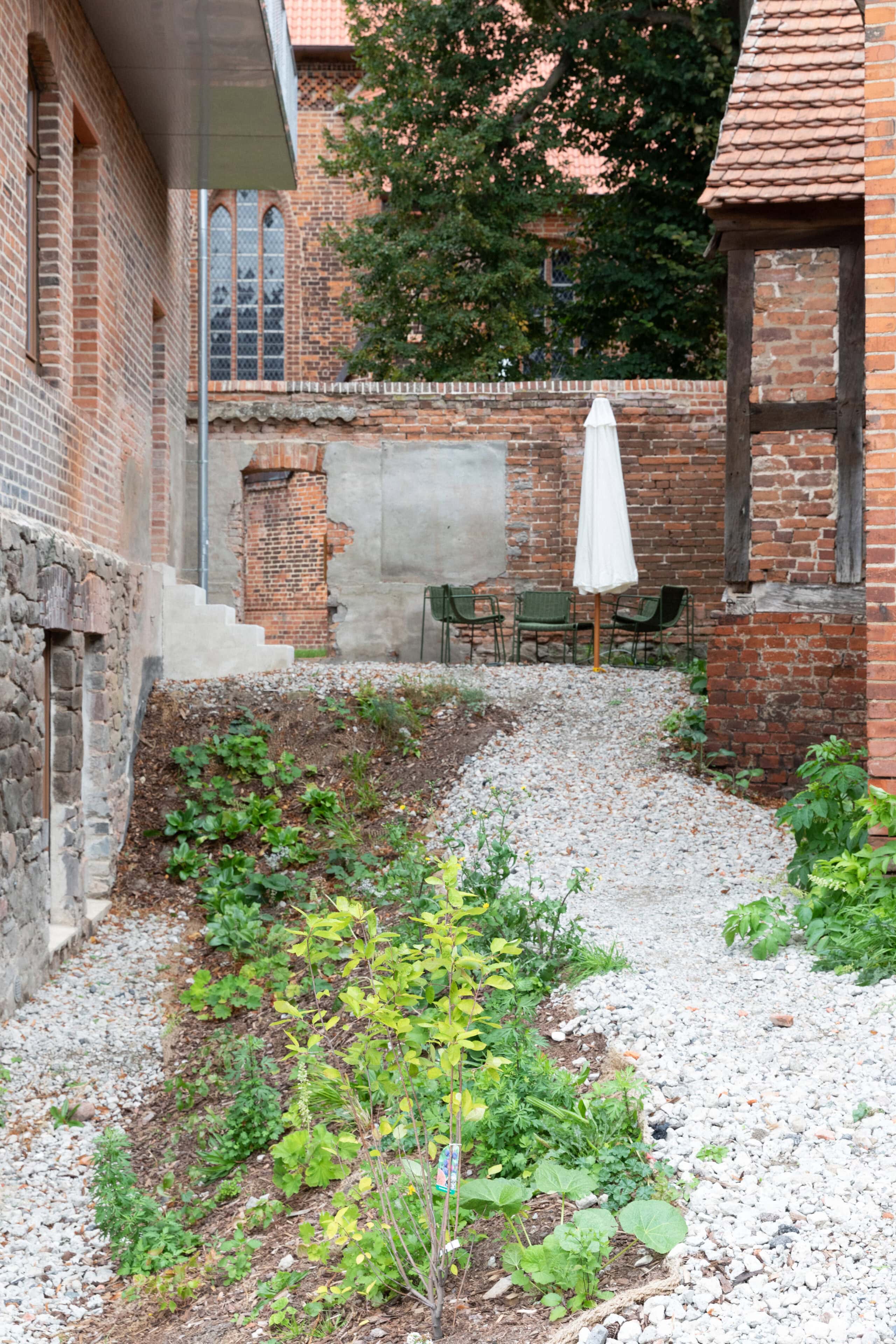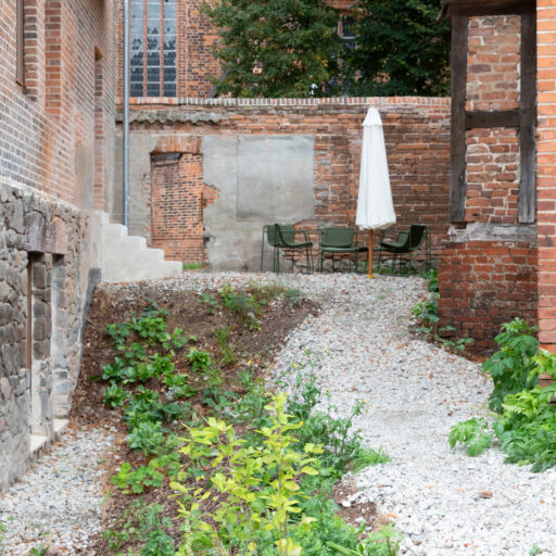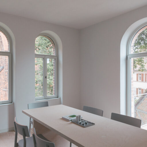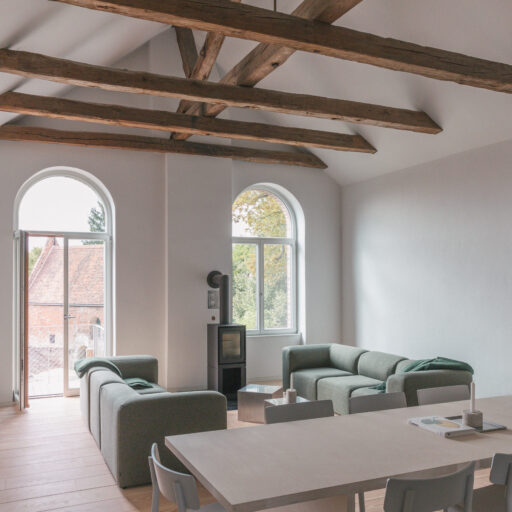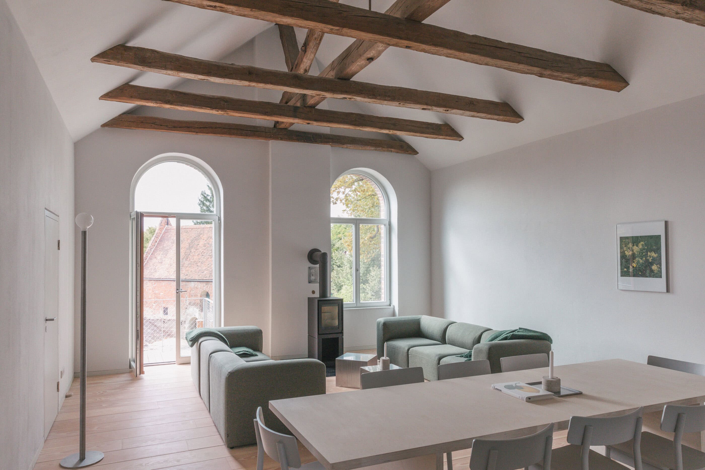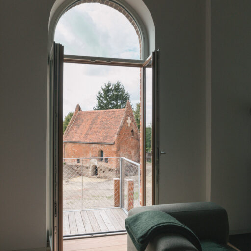 Mit jedem zurückgelegten Meter scheint man sich von der Hektik der Welt etwas mehr zu entfernen. Dass hier in der Altmark alles in einem gemächlicheren Takt läuft, wird spätestens dann klar, wenn man mit der alten Gierseilfähre nach Werben übersetzt – übrigens der kleinsten Hansestadt der Welt! Klar, man könnte auch die Straßenverbindungen oder die Elbbrücken nehmen, aber die nostalgische Überfahrt ist Teil des Erlebnisses. Dabei lässt man den Blick über Elbauen streifen, beobachtet Vögel und fühlt sich schon angekommen, bevor man überhaupt da ist. Auf der anderen Seite wartet ein bezaubernder Ort mit Kopfsteinpflaster und Fachwerkhäusern in verschiedenen Farben, manche liebevoll saniert, andere noch mit marodem Charme. Während einer Tour über den Elbradweg verliebten sich die Architekten Aimée Michelfelder und Jurek Brüggen in die leerstehende Komturei, ursprünglich Niederlassung des Johanniter-Ordens direkt neben der Johanniskirche. Gemeinsam mit der Stadt sowie weiteren Architekten beleben sie nun das Ensemble aus roten Backsteinbauten neu, mit Wohnungen, Seminarräumen, einem Yogaraum, Ateliers und Werkstätten. Gut für uns: Im denkmalgeschützten Verwaltungsgebäude von 1890, das eher an ein Herrenhaus erinnert, sind sechs schlicht-schöne Ferienwohnungen entstanden. Zwei Jahre lang wurde ökologisch saniert, mit traditionellen Materialien und gemeinsam mit lokalen Handwerkern, die vorhandene Klinker der Fassade wiederverwendeten, historische Balken und bauzeitliche Fenster aufarbeiteten, nur das erneuerten, was nicht mehr zu retten war. Das Interieur setzt auf bewusste Reduktion, es finden sich klare Formen, gedeckte Töne, selbstentworfene Möbel und Einbauten – und ganz viel Licht, das durch die hohen Rundbogenfenster fällt. Könnte es ein schöneres Setting geben, um im entspannten „Altmark-Tempo“ mal so richtig durchzuatmen?