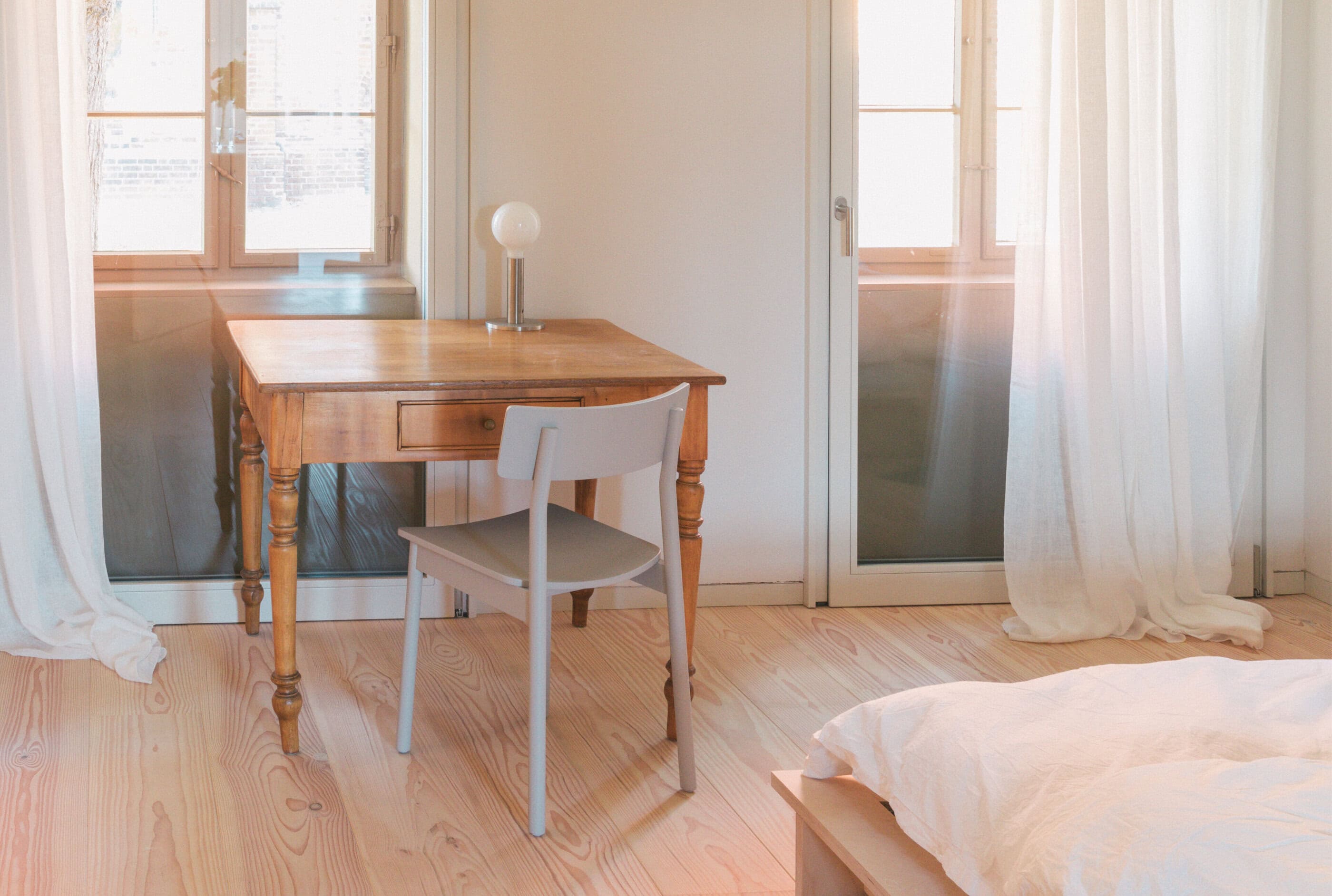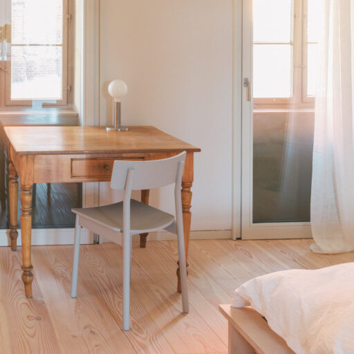 - die Auswahl der Einrichtungsstücke: Hier finden sich puristische Leuchten aus Metall, Betten und Tische, Regale und Beistelltische, die von lokalen Handwerkern speziell für das Verwalterinnenhaus entworfen und gebaut wurden. Sie lassen die dicken Wänden, alten Dielen und hohen Fenster besonders gut zur Geltung kommen