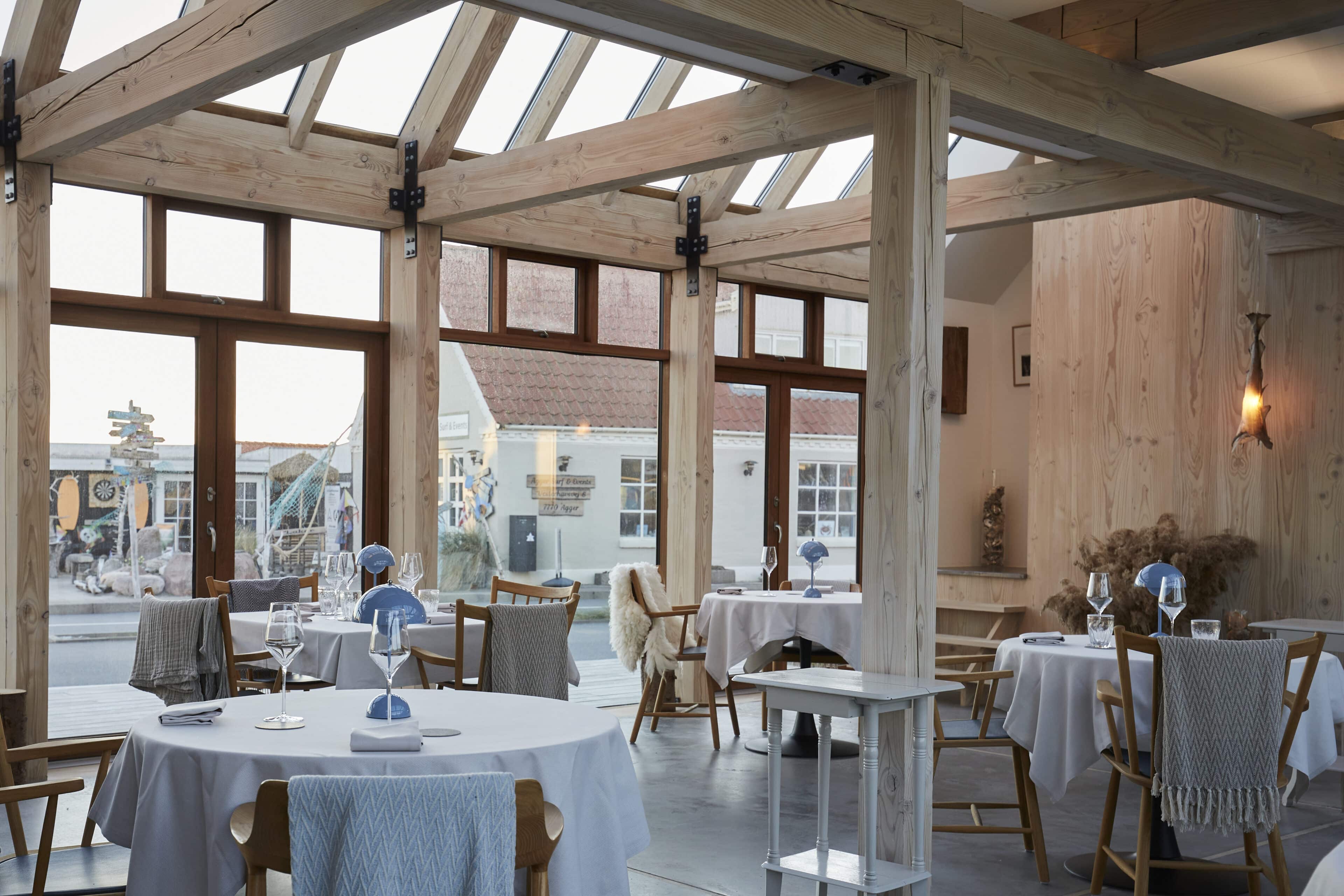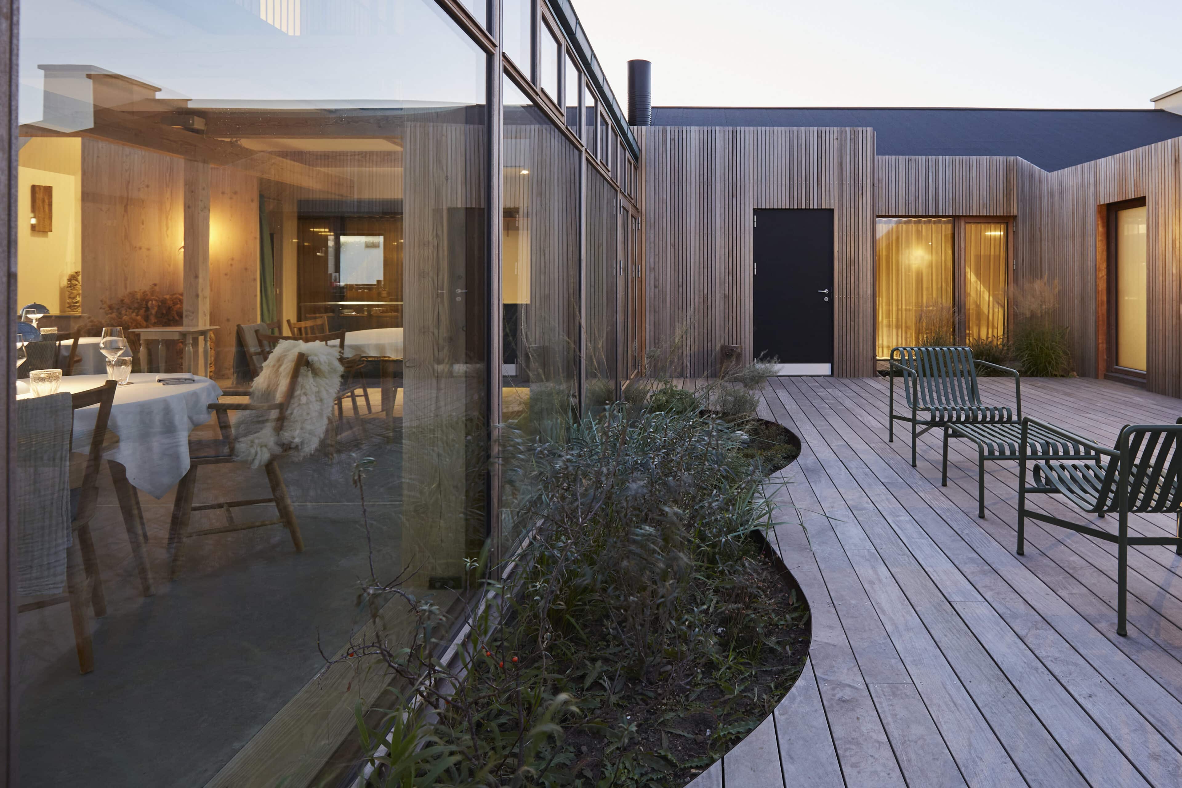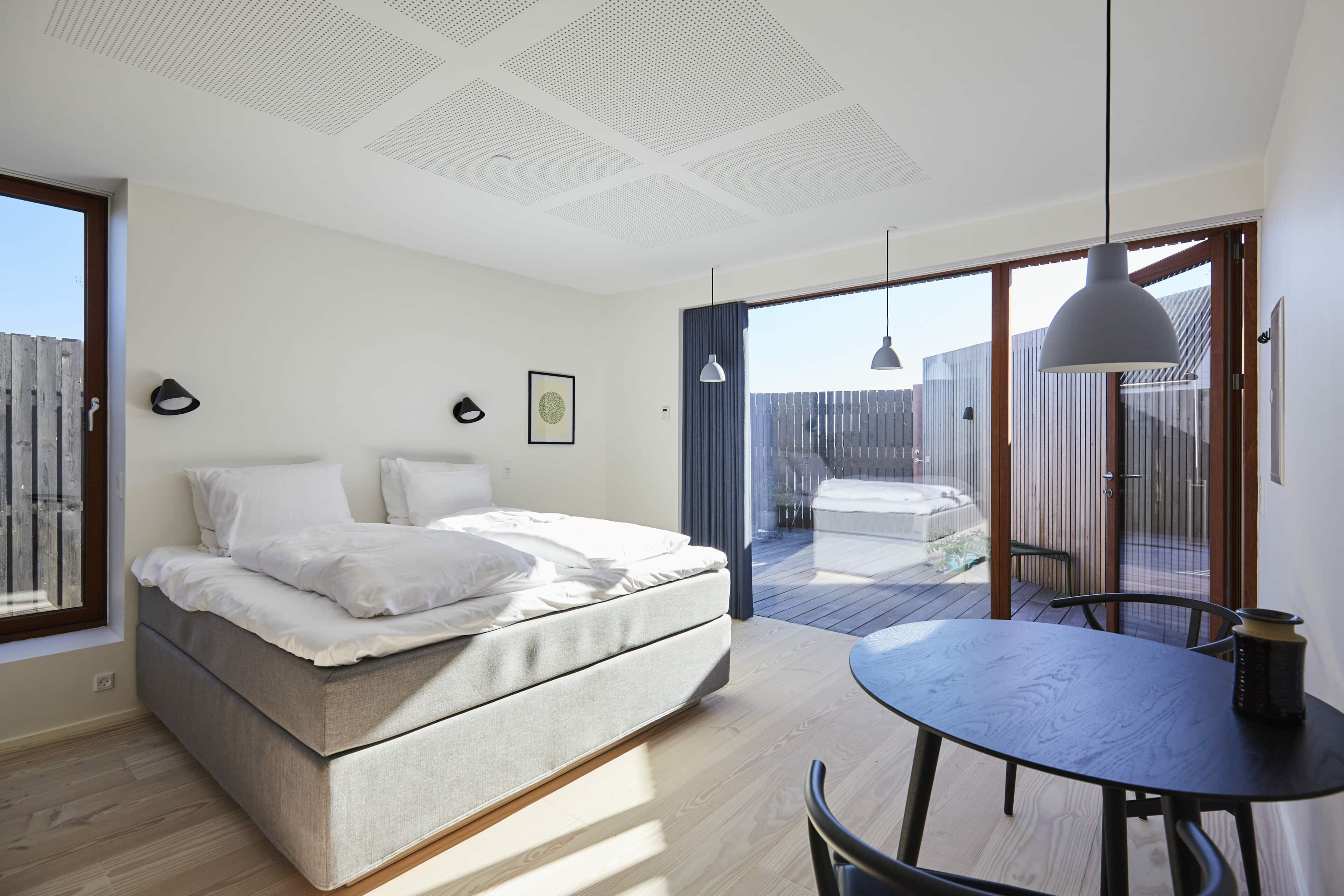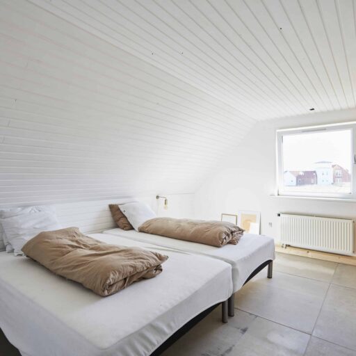 Vielleicht ist es der wilde, wunderschöne Nationalpark Thy oder die Fjorde, Seen und Dünen. Vielleicht sind es die nahezu perfekten Surfbedingungen oder die herrliche Luft, die einen bei jedem Atemzug neu zu beleben scheint. Was auch immer es ist, das westjütländische Fischerdorf Agger hat irgendetwas Magisches an sich, das Surfer, Kreative und Individualisten aus ganz Europa herlockt. So auch den dänischen Architekten Søren Sarup, der einen Teil des Jahres mit seiner Familie in Agger lebt, und sich immer wieder neuen, spannenden Projekten in der Region widmet. Sein jüngstes Werk, das er gemeinsam mit seiner Frau Maria Louise umgesetzt hat, ist ein ehemaliger Küstenbauernhof, nur 150 Meter von der Nordsee entfernt und direkt am Nationalpark gelegen. Die ursprüngliche Bausubstanz des alten Guts blieb erhalten und wurde auf eindrucksvolle Weise mit hochmoderner Architektur zusammengebracht. Herausgekommen ist ein Gebäude, das sich perfekt in die Umgebung fügt, eines, in dem seit 2022 ein Restaurant, ein Eiscafé, Büroräume und zwei Apartments ein Zuhause gefunden haben. Die beiden Apartments, um die 29 Quadratmeter groß, sind eigentlich konzipiert für je zwei Personen, doch auch eine Familie mit kleinem Kind kann sich hier rundum wohlfühlen. Die Räume sind offen und hell gestaltet, besonders die großen Fensterfronten sorgen dafür, dass herrlich viel Licht ins Innere strömt. Wer Sehnsucht nach der Weite der Umgebung hat, öffnet einfach die Tür zum privaten Innenhof mit Outdoormöbeln, hübschen Pflanzen und einer Außendusche. Dieser Hof verwischt – wie so oft bei Sarup – die Grenzen zwischen innen und außen. Natur und Wohnen verschmelzen miteinander und schaffen ein Gefühl von Freiheit. Wer der Magie von Agger nun auf den Grund gehen möchte, sollte das Örtchen besuchen – und Vesterlandet fest mit einplanen.