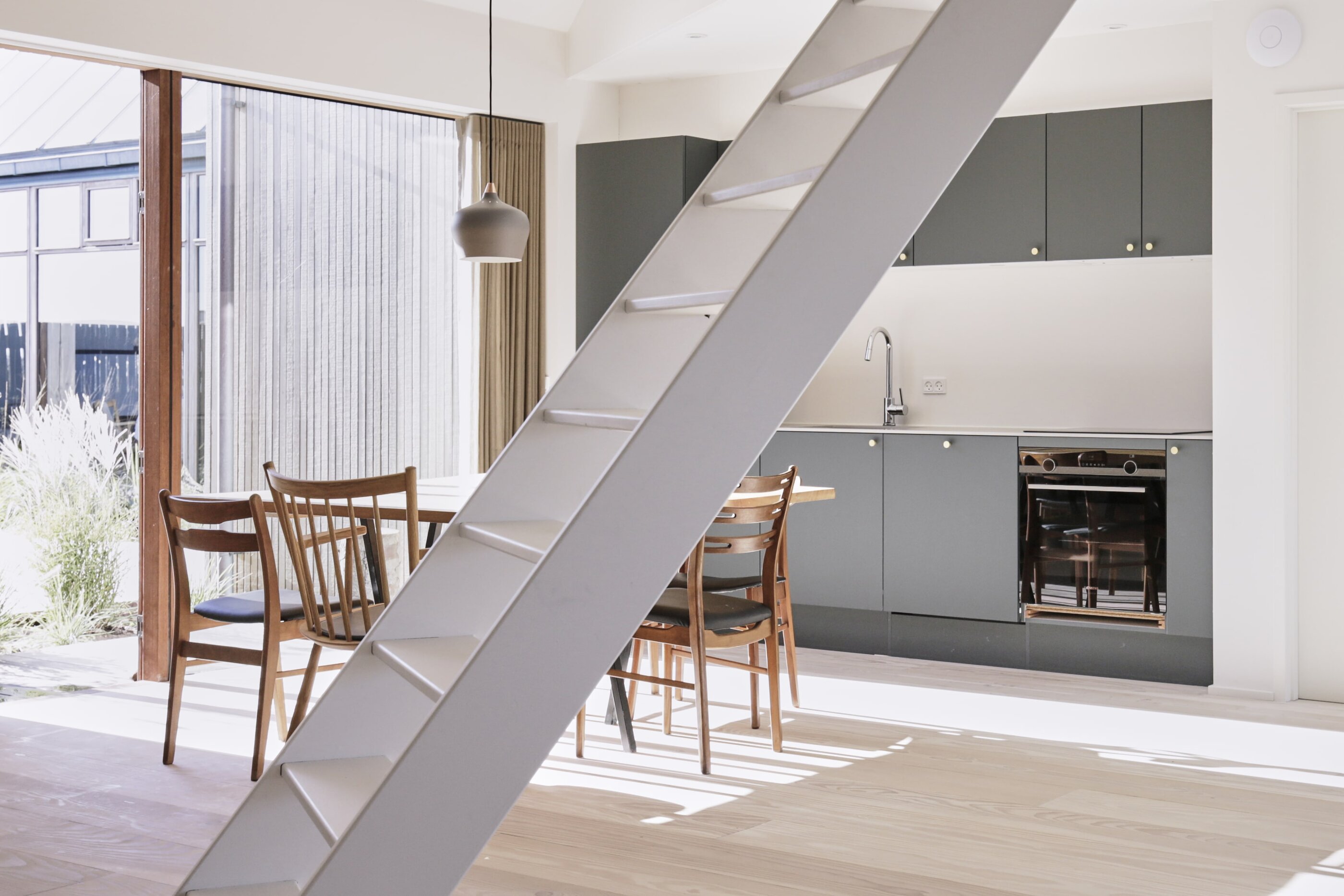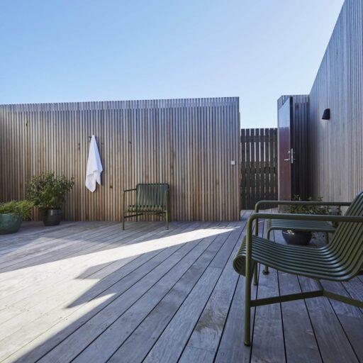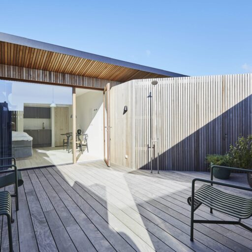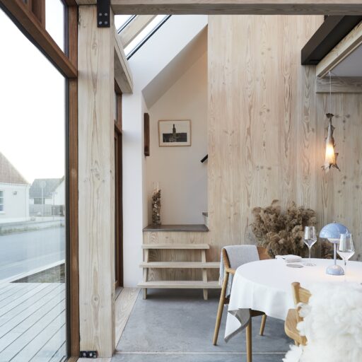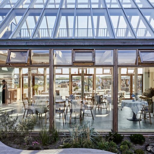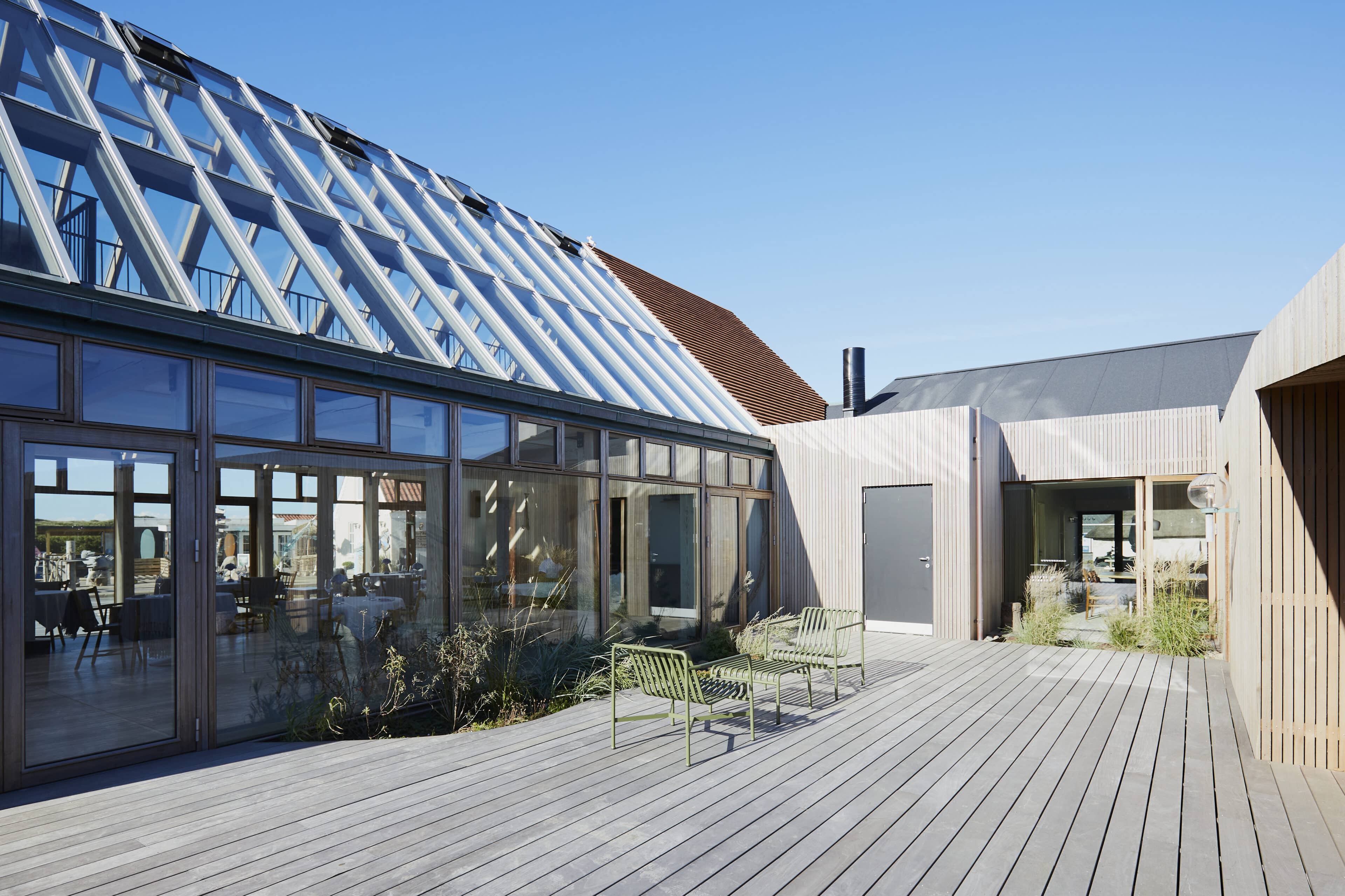 Vielleicht ist es der wilde, wunderschöne Nationalpark Thy oder die Fjorde, Seen und Dünen. Vielleicht sind es die nahezu perfekten Surfbedingungen oder die herrliche Luft, die einen bei jedem Atemzug neu zu beleben scheint. Was auch immer es ist, das westjütländische Fischerdorf Agger hat irgendetwas Magisches an sich, das Surfer, Kreative und Individualisten aus ganz Europa herlockt. So auch den dänischen Architekten Søren Sarup, der einen Teil des Jahres mit seiner Familie in Agger lebt, und sich immer wieder neuen, spannenden Projekten in der Region widmet. Sein jüngstes Werk, das er gemeinsam mit seiner Frau Maria Louise umgesetzt hat, ist ein ehemaliger Küstenbauernhof, nur 150 Meter von der Nordsee entfernt und direkt am Nationalpark gelegen. Die ursprüngliche Bausubstanz des alten Guts blieb erhalten und wurde auf eindrucksvolle Weise mit hochmoderner Architektur zusammengebracht. Herausgekommen ist ein Gebäude, das sich perfekt in die Umgebung fügt, eines, in dem seit 2022 ein Restaurant, ein Eiscafé, Büroräume und zwei Apartments ein Zuhause gefunden haben. Die beiden Apartments, um die 29 Quadratmeter groß, sind eigentlich konzipiert für je zwei Personen, doch auch eine Familie mit kleinem Kind kann sich hier rundum wohlfühlen. Die Räume sind offen und hell gestaltet, besonders die großen Fensterfronten sorgen dafür, dass herrlich viel Licht ins Innere strömt. Wer Sehnsucht nach der Weite der Umgebung hat, öffnet einfach die Tür zum privaten Innenhof mit Outdoormöbeln, hübschen Pflanzen und einer Außendusche. Dieser Hof verwischt – wie so oft bei Sarup – die Grenzen zwischen innen und außen. Natur und Wohnen verschmelzen miteinander und schaffen ein Gefühl von Freiheit. Wer der Magie von Agger nun auf den Grund gehen möchte, sollte das Örtchen besuchen – und Vesterlandet fest mit einplanen.