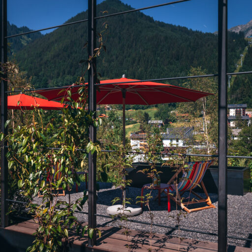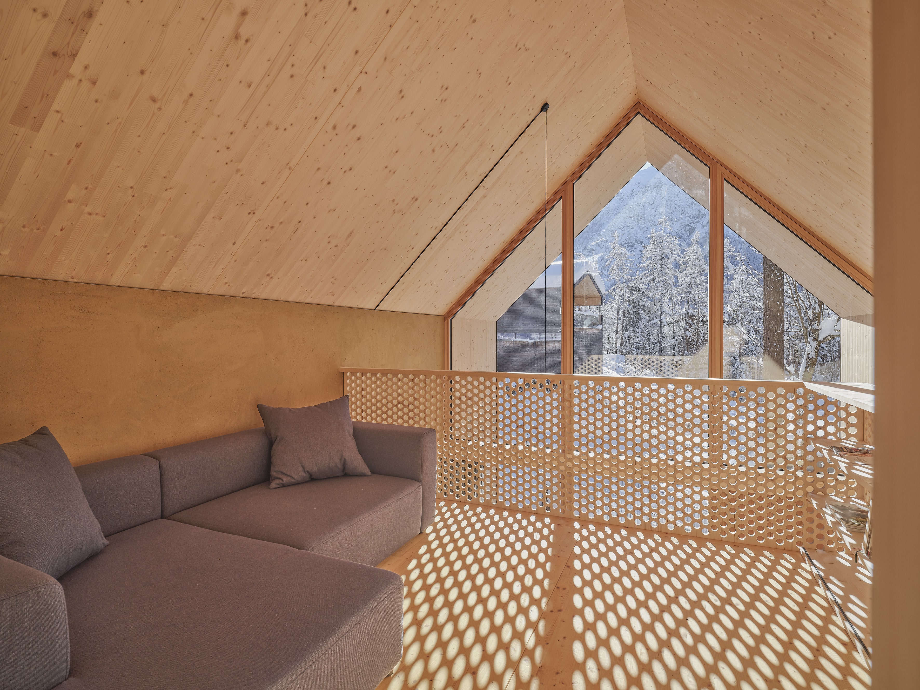 - die luftige Galerie in den Häuschen. Dort kann man wunderbar auf der Couch fletzen und den Blick über Tal und Berge schweifen lassen