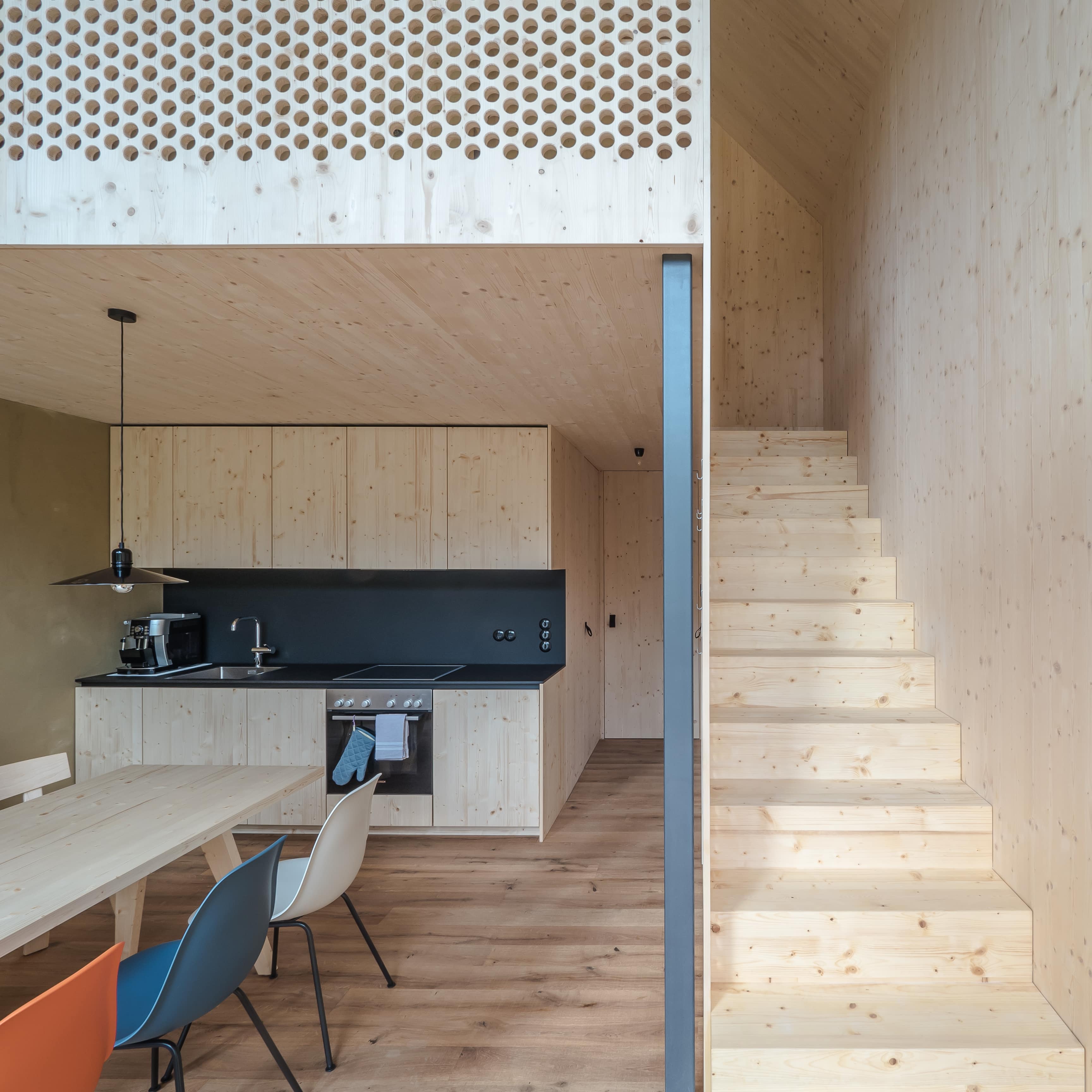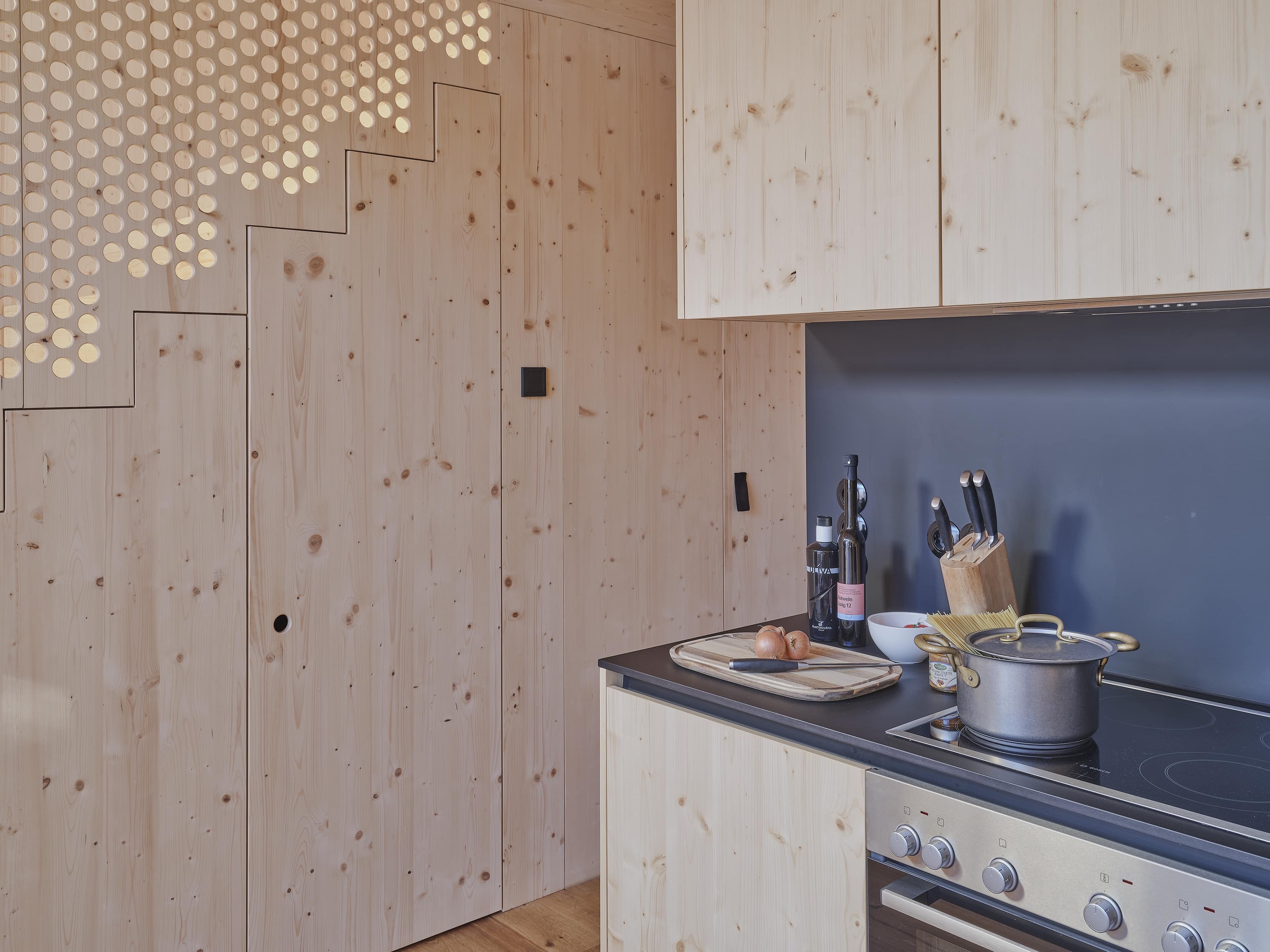 Ob man wirklich schon wach ist oder doch noch träumt, da kann man sich nicht ganz sicher sein, wenn man hier die Augen öffnet. Direkt vom Bett aus schaut man ins satte Grün des Waldes, der – egal, ob schneebedeckt oder sonnendurchflutet – Lust auf einen Tag in der Natur macht. Für den Morgenkaffee ist die Perspektive mindestens ebenso gut: Durch bodentiefe Fenster blickt man auf Wiesen und die imposanten Berge des Rätikons. Willkommen bei den Durnwalders im österreichischen Brandnertal! Fünf Chalets mit jeweils drei Schlafzimmern hat die Familie in typisch Vorarlberger Holzbauweise errichtet, mit offenem Grundriss, klaren Linien, einem Mix aus traditionellem und reduziert-modernem Design und viel hellem Holz. Zum Ensemble gehört auch die Älmele Lodge, ein kuscheliges Holzhäuschen, in dem früher die Gastgeber-Familie wohnte. Frisch renoviert, vermieten sie es nun ebenfalls an Feriengäste. Von hier aus schwärmt man aus in die herrliche Alpenregion Bludenz, zum Rodeln, Baden, Wandern, Skifahren oder Klettern. Trotz all dieser Outdoor-Abenteuer ist der Moment, in sein Häuschen zurückzukommen, jedes Mal einer der schönsten des Tages. Und das will was heißen.