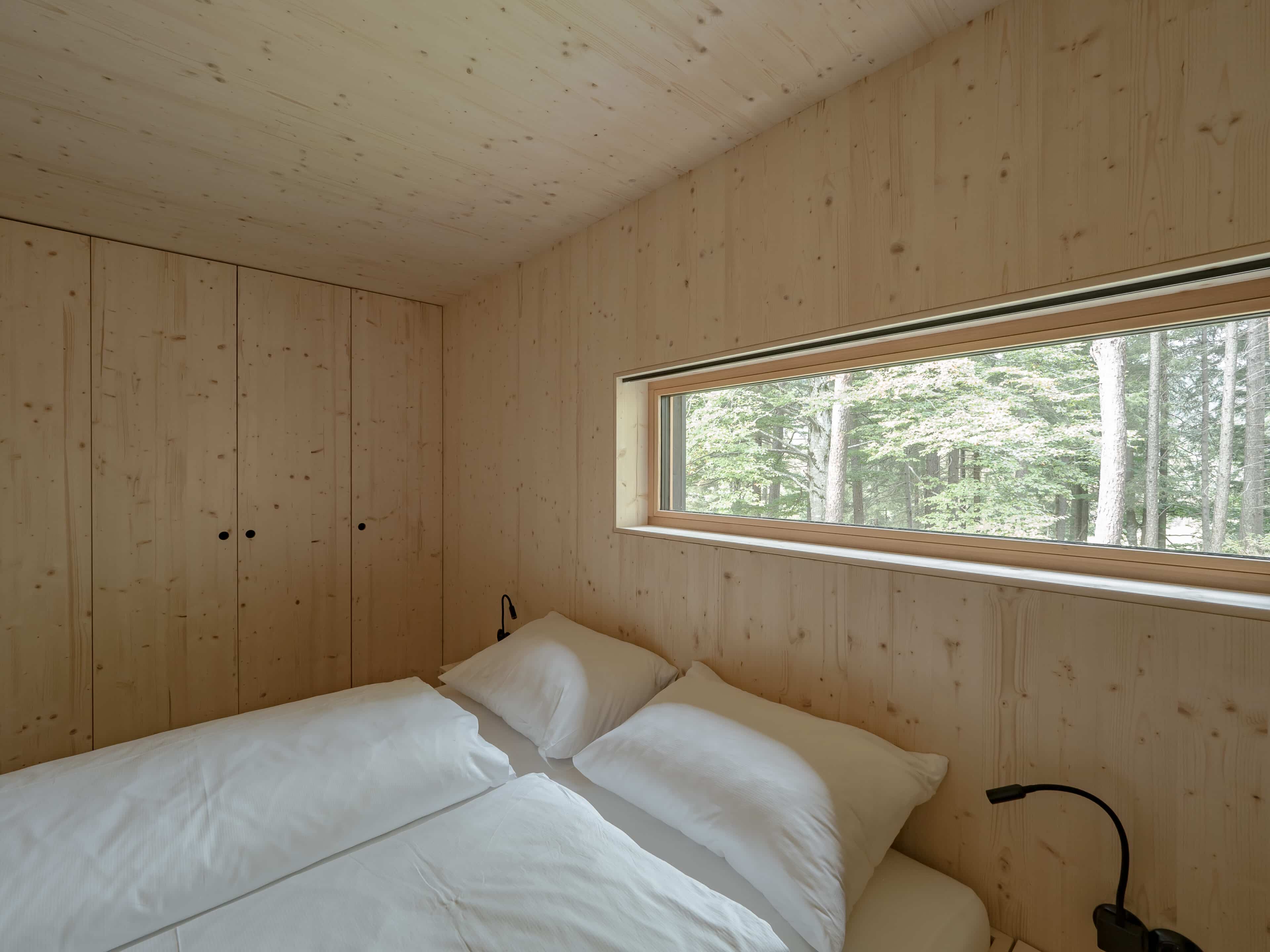 - die fünf Waldchalets bieten jeweils Platz für 2 bis 6 Personen. Im Erdgeschoss befindet sich ein Schlafzimmer mit Doppelbett, zwei weitere sind im Obergeschoss untergebracht