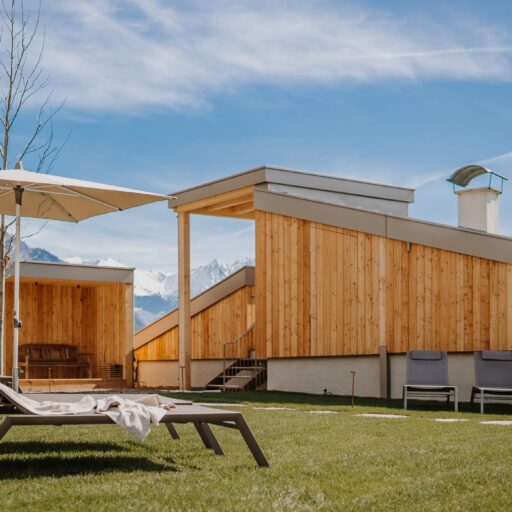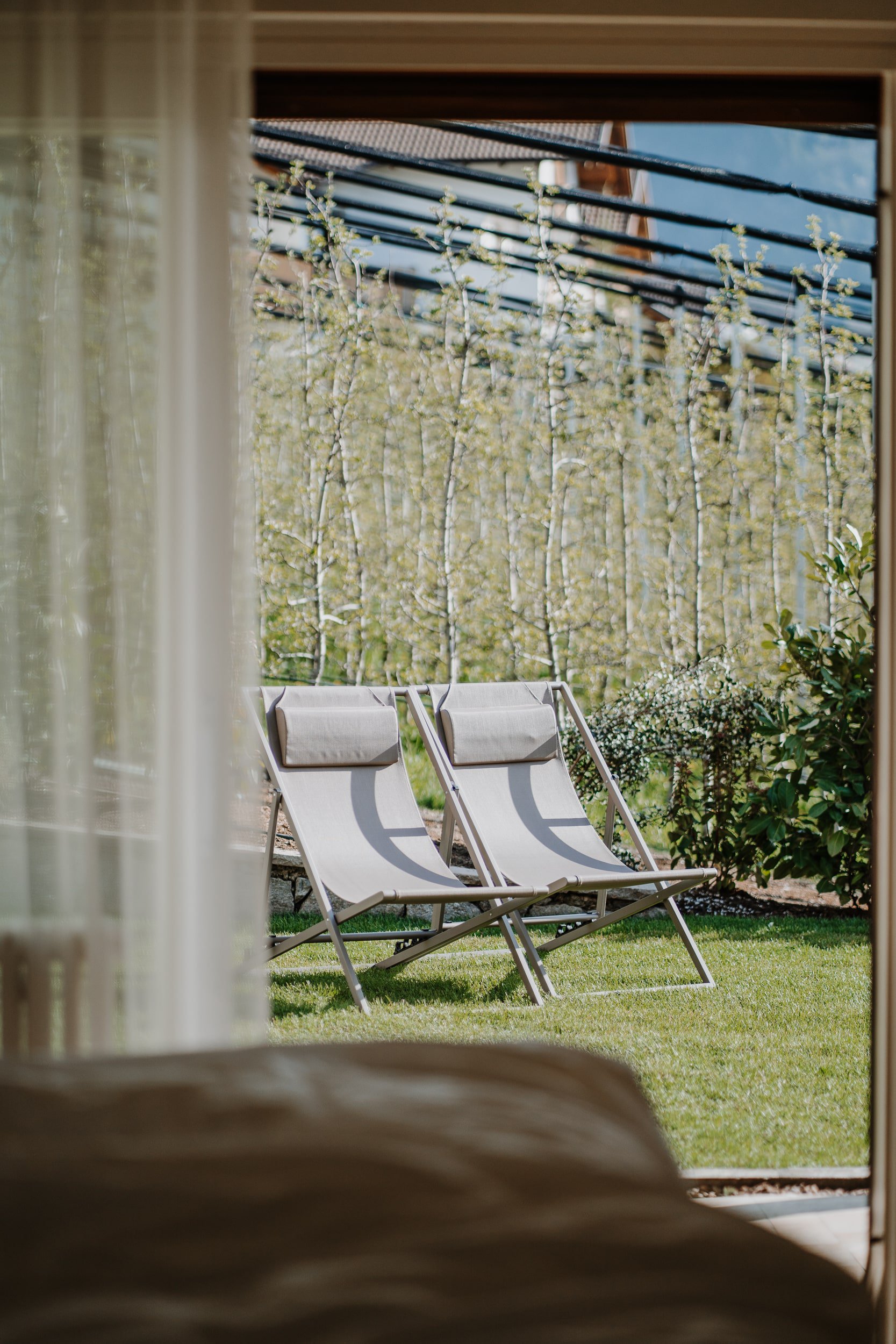 • von den großzügigen Balkonen, Terrassen oder den Sonnenliegen am Pool die faszinierende Kulisse inmitten von Apfelhainen und Bergpanorama zu genießen